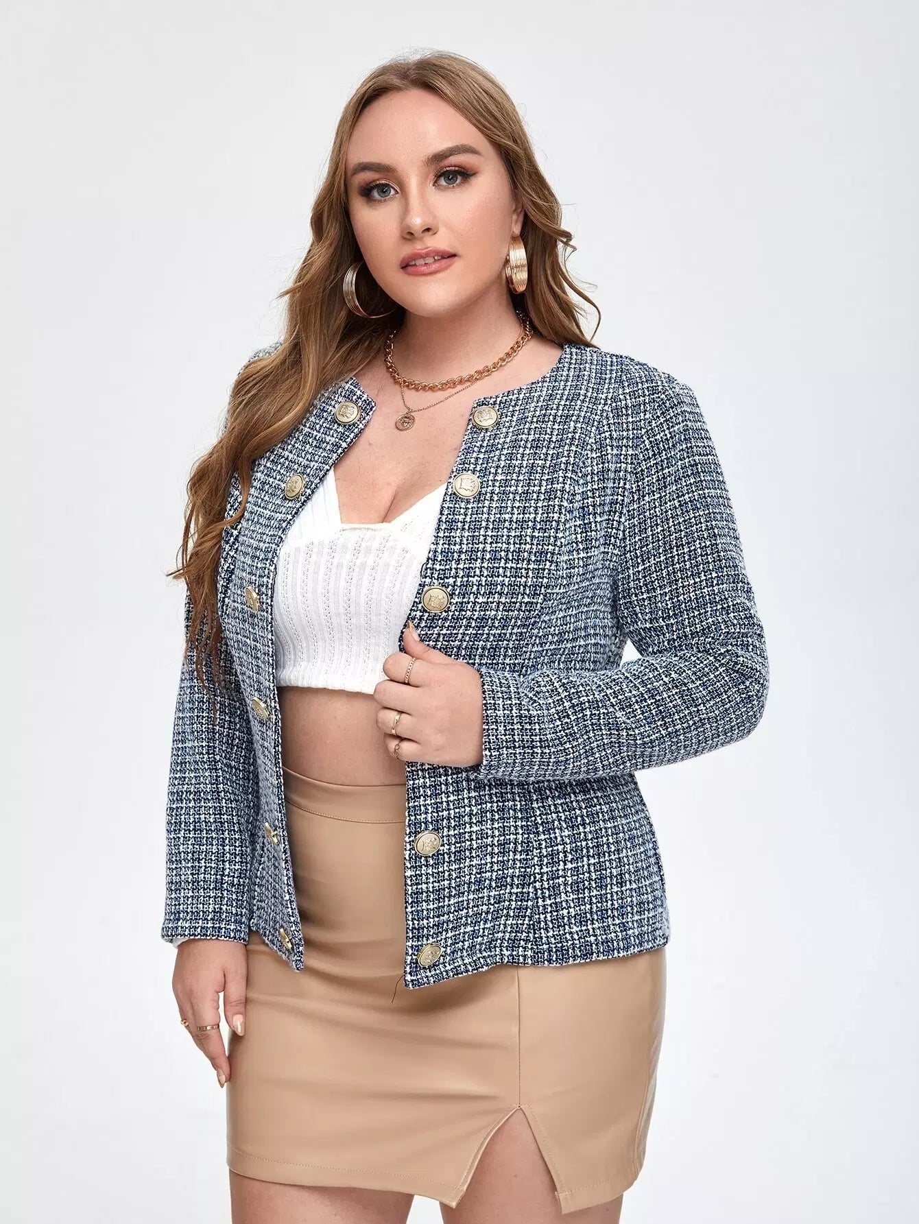 معطف تويد منقوش بأزرار منقوشة بتفاصيل زائد