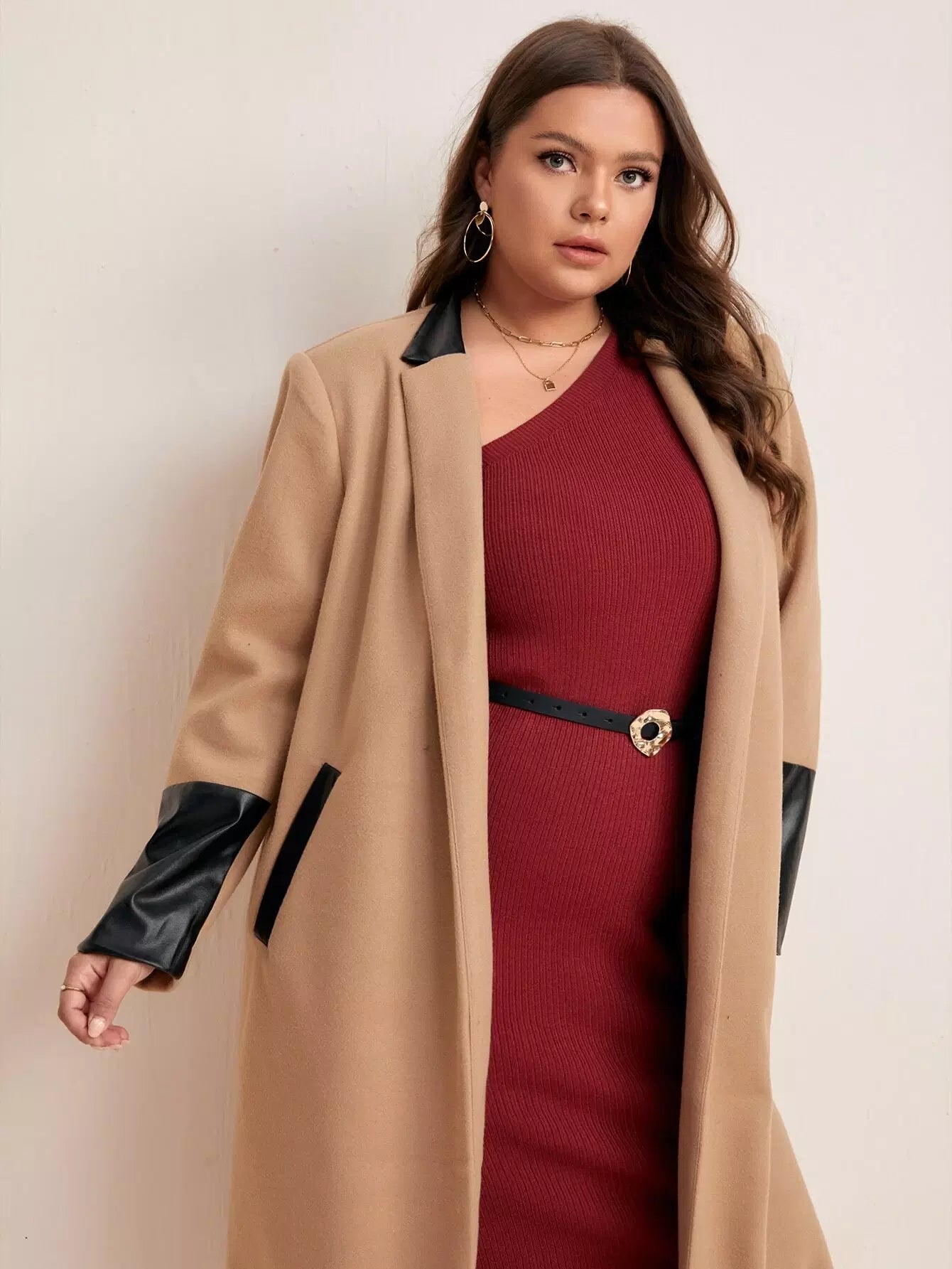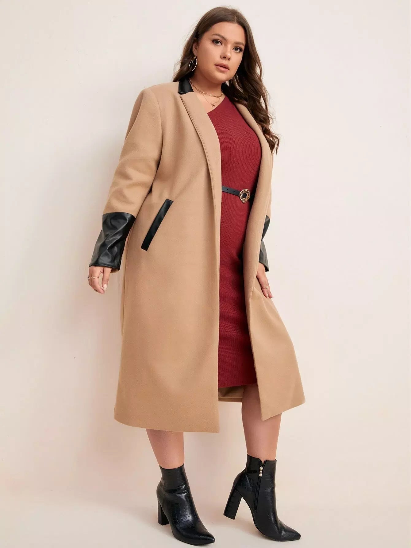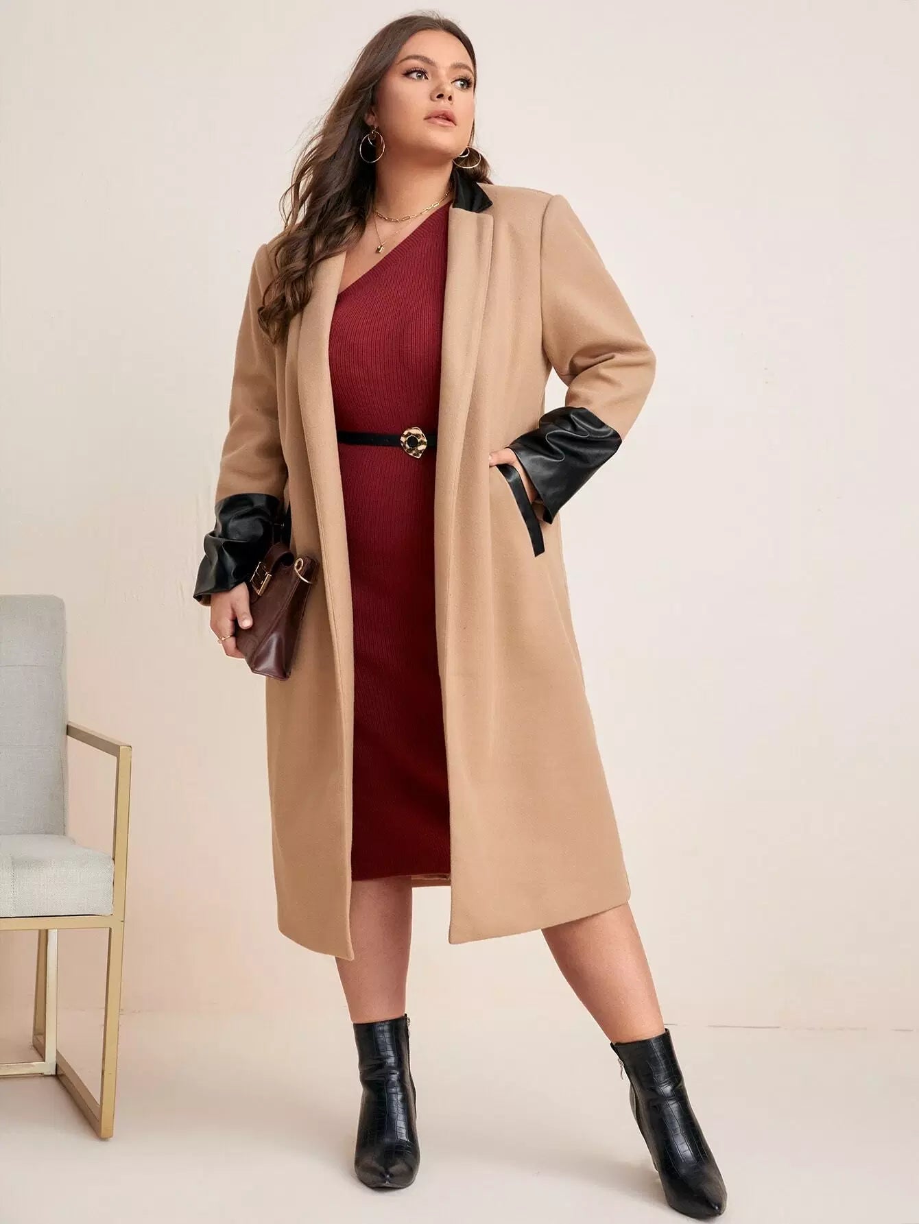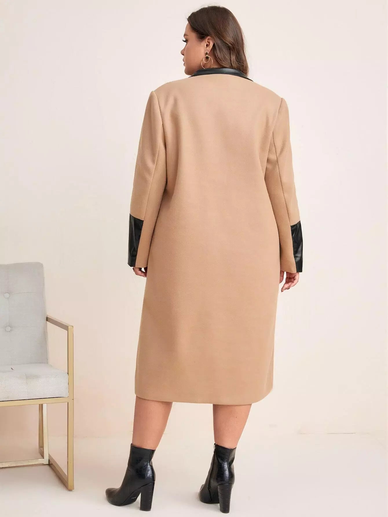 معطف بجيوب مائلة بلون مغاير مفتوح من الأمام