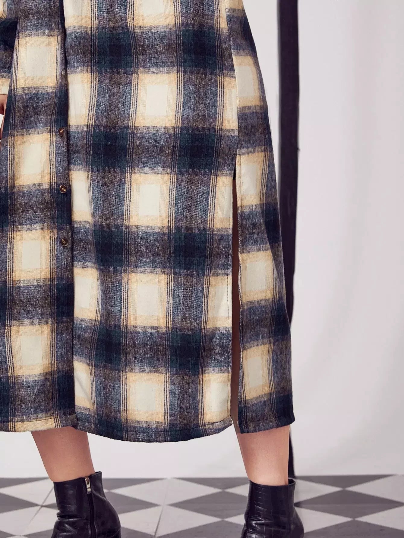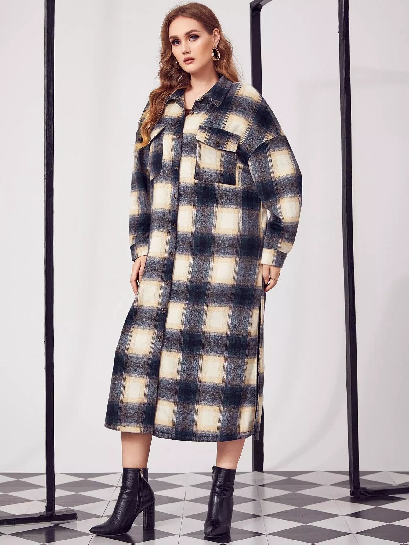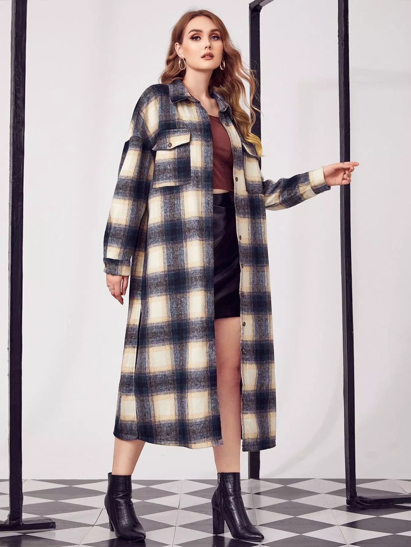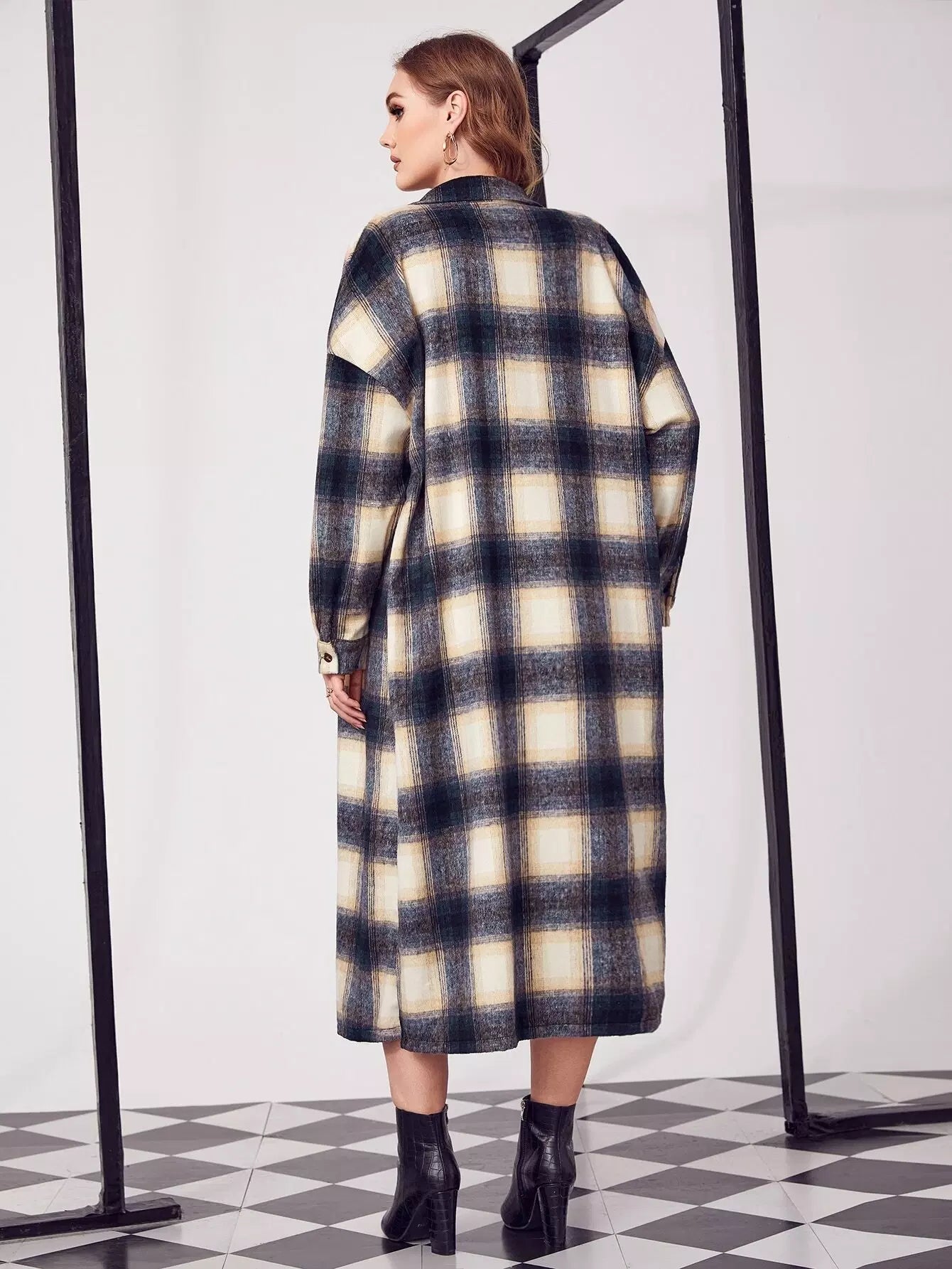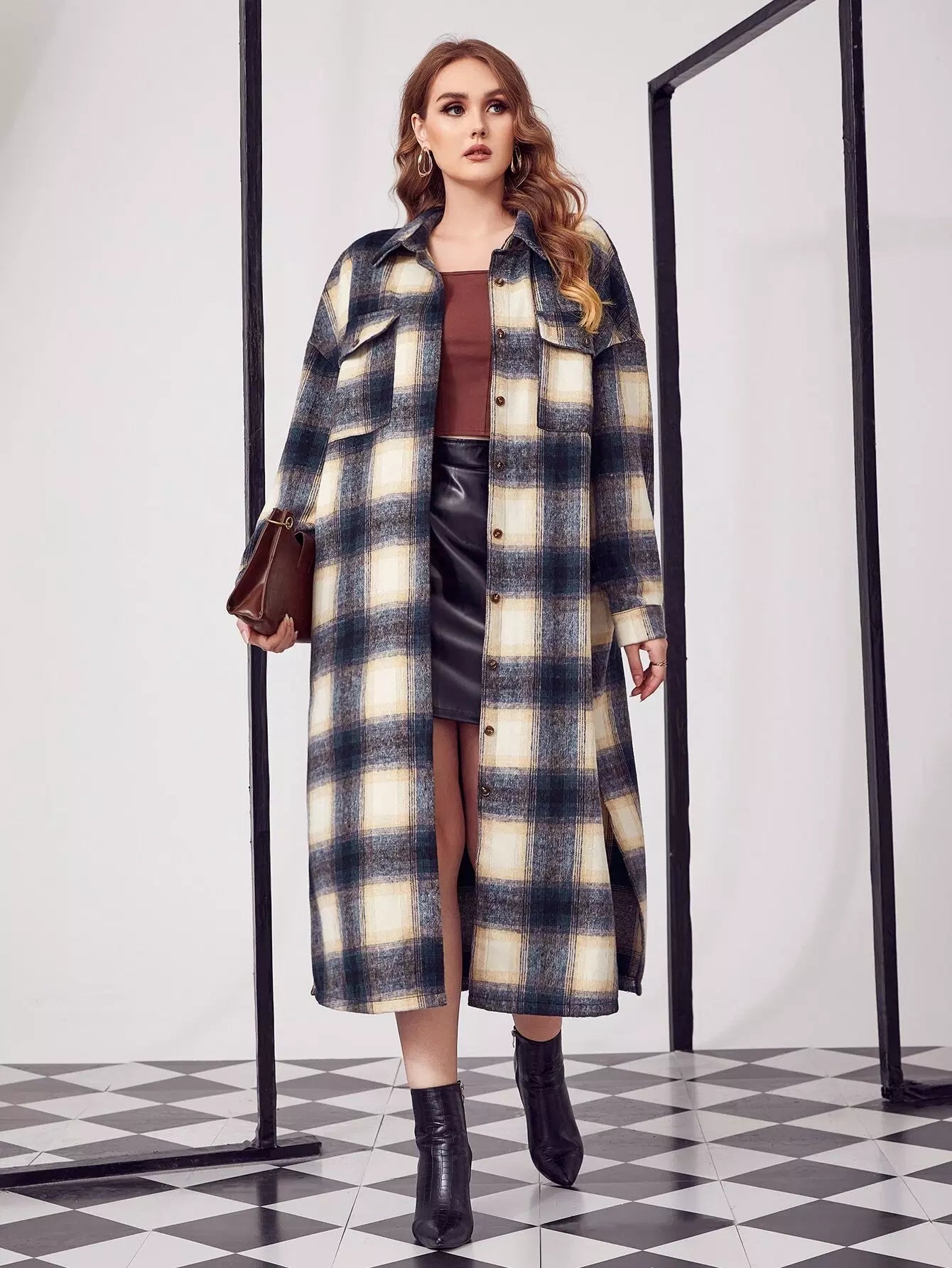 نحيف - مقاس كبير معطف منقوش بجيب مزدوج