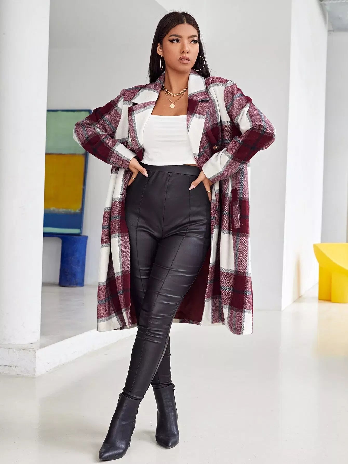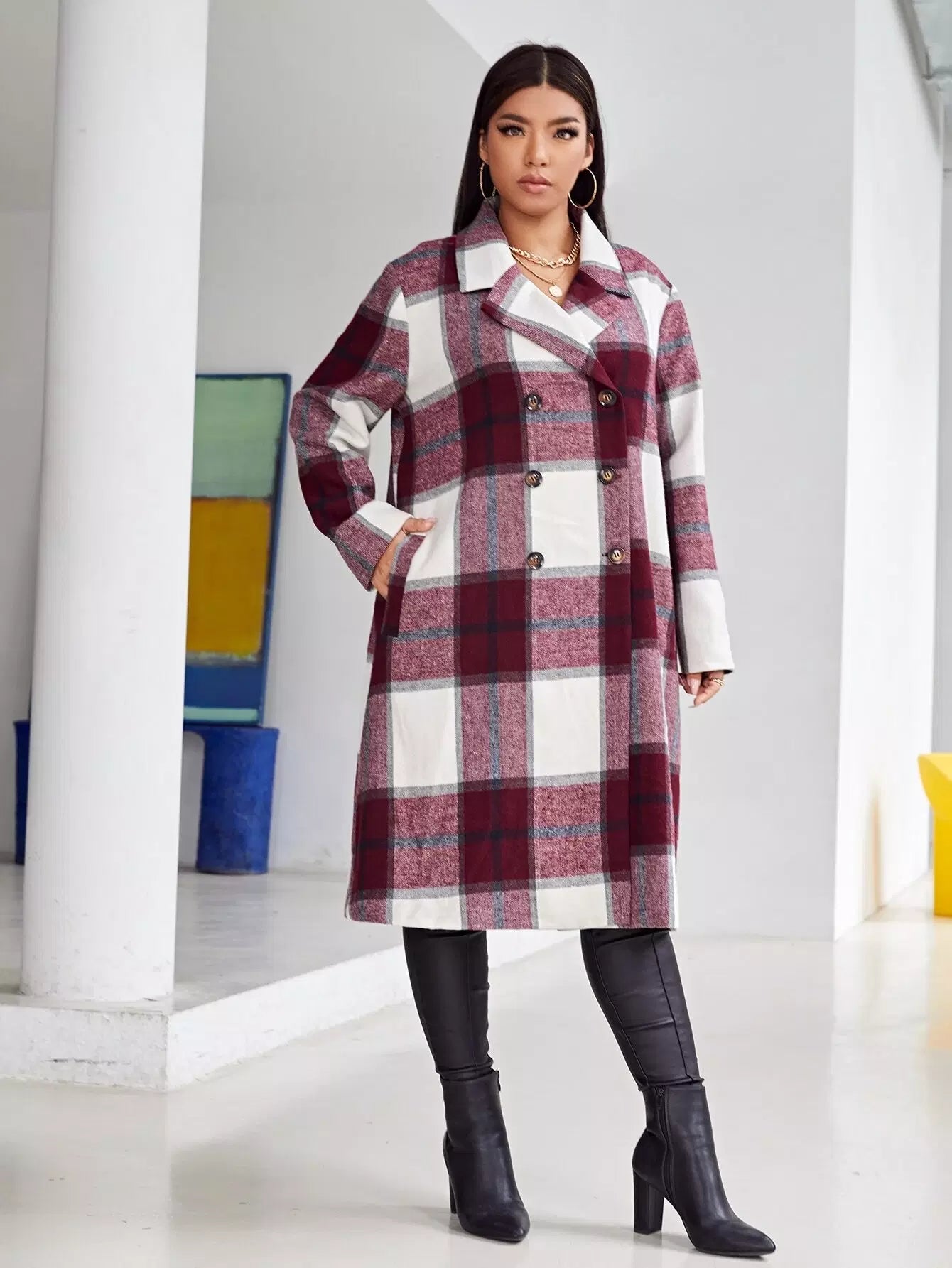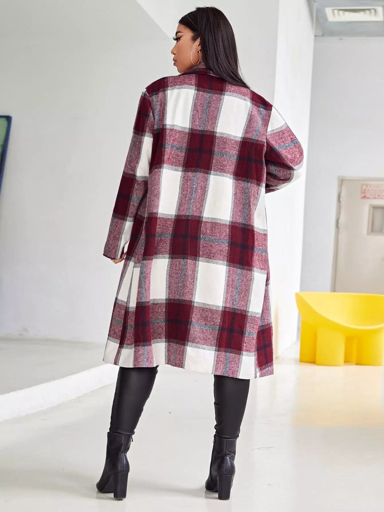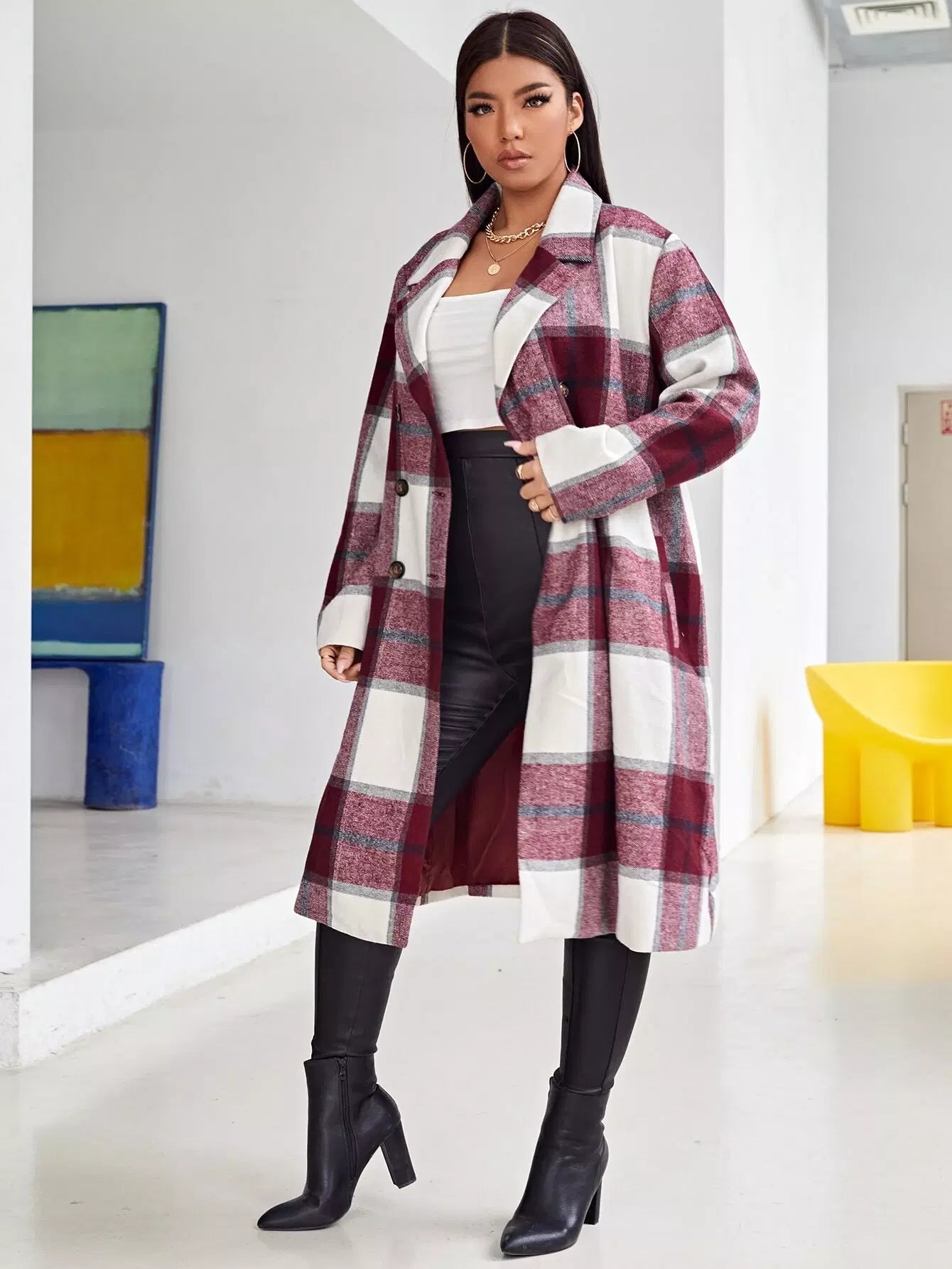 معطف فوقي منقوش بياقة مزدوجة الصدر منقوشة بياقة مزدوجة