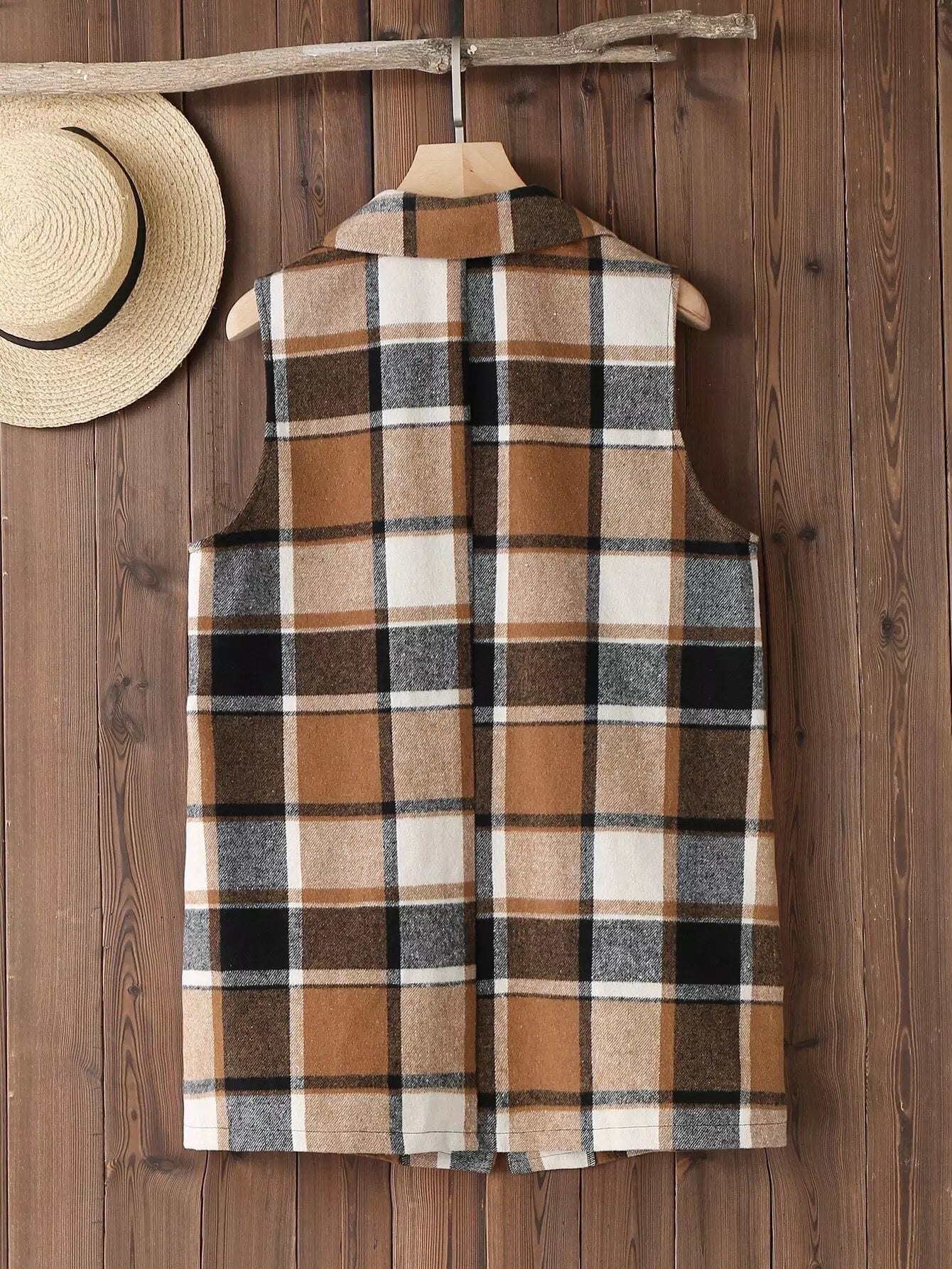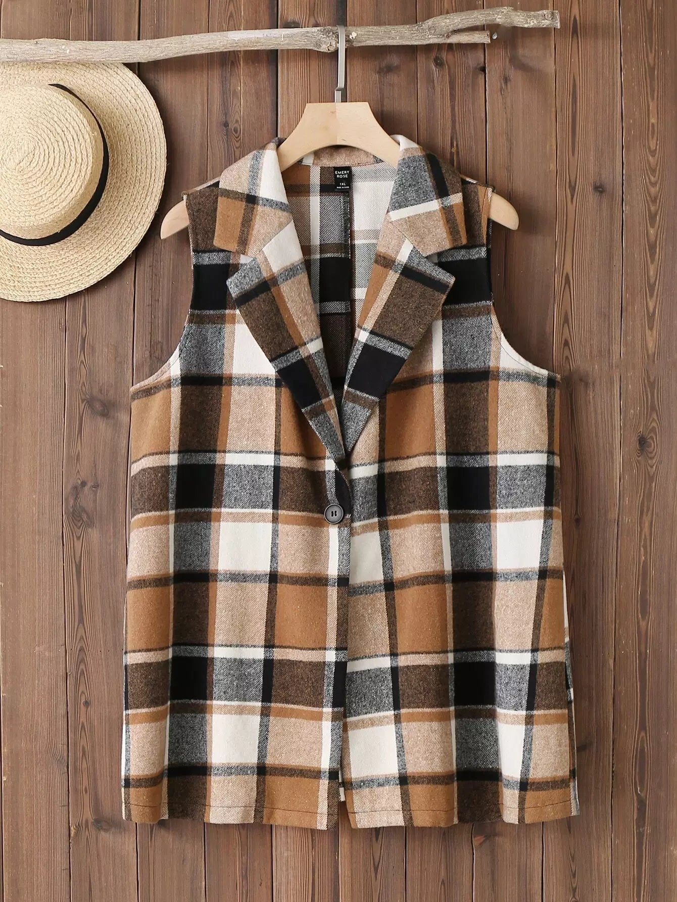 معطف بدون أكمام بياقة منقوشة بلا أكمام بلا أكمام