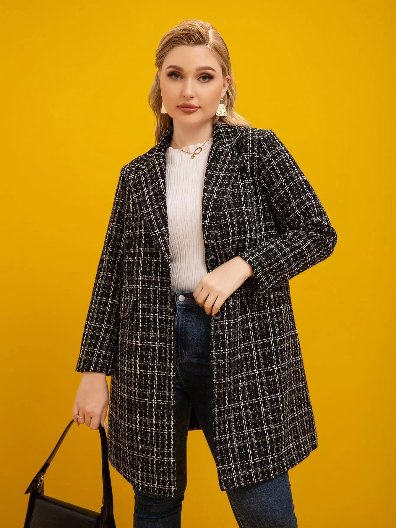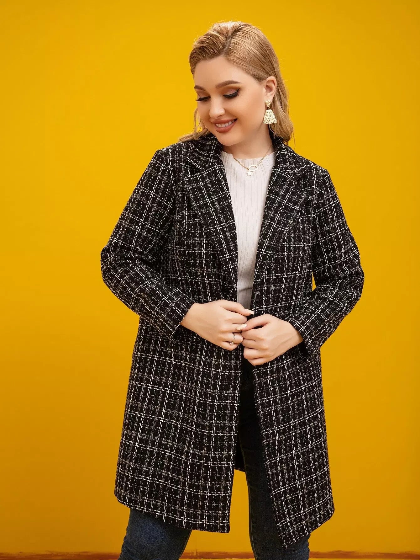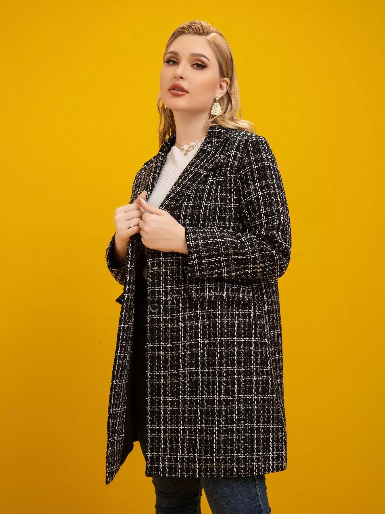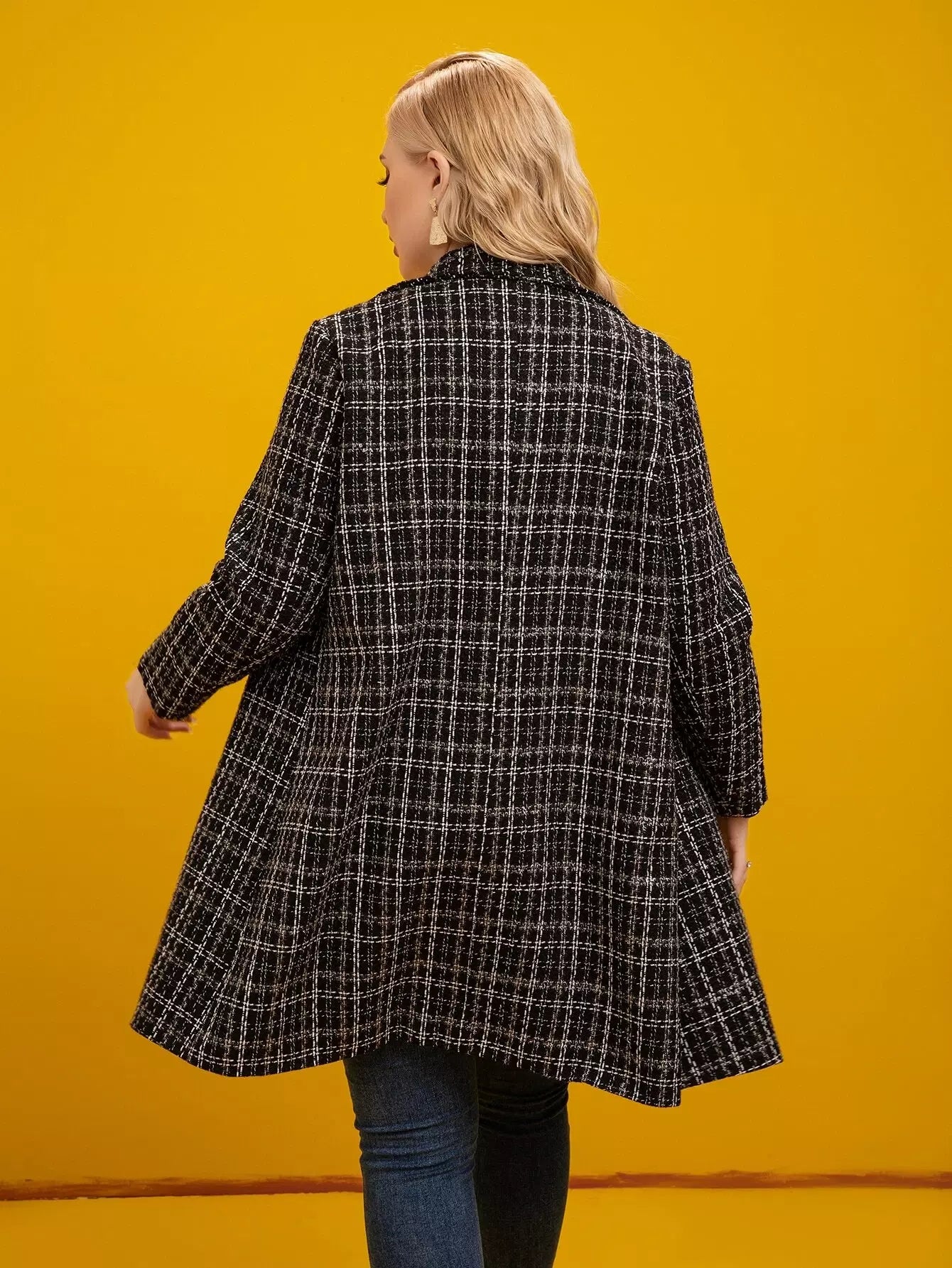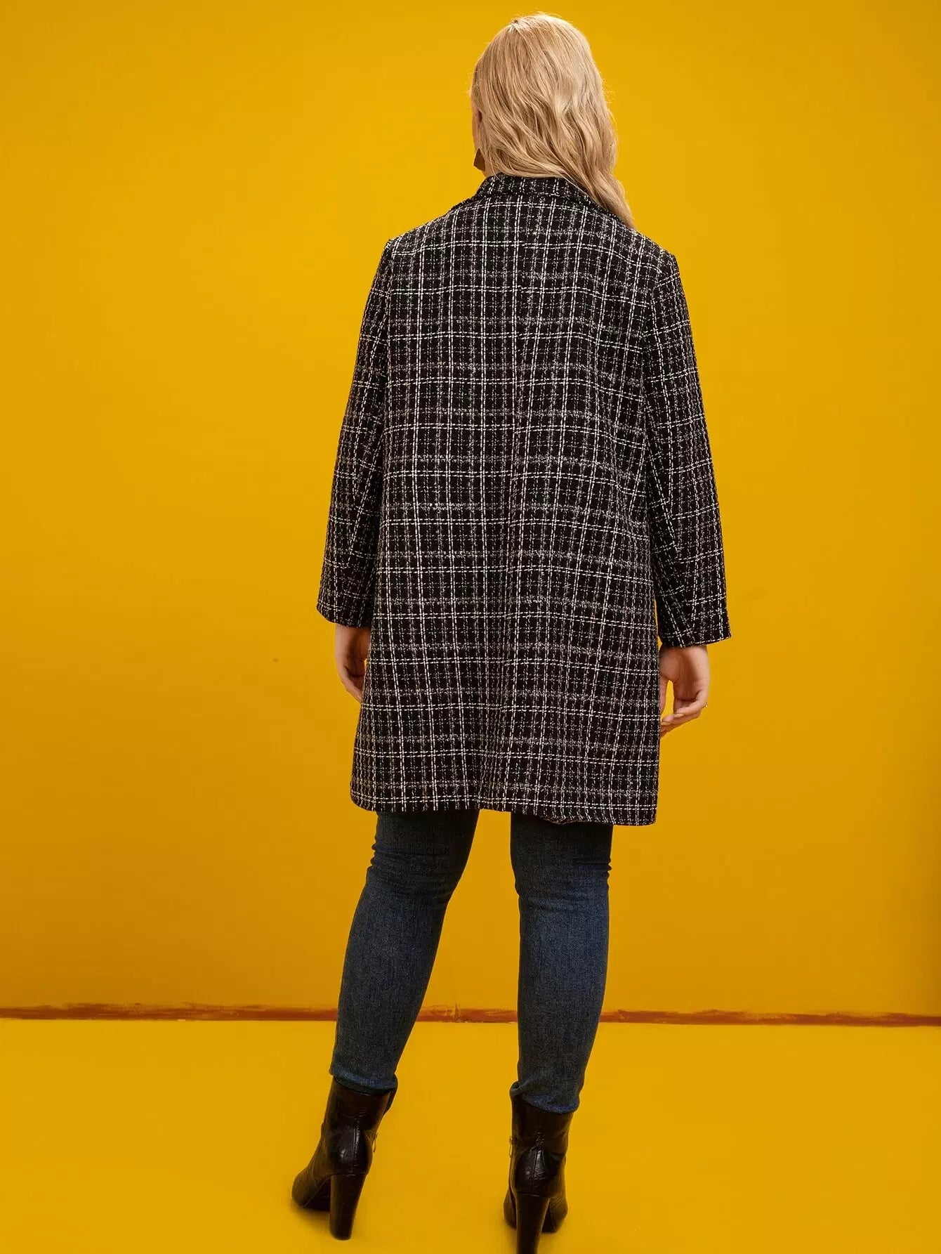 معطف تويد منقوش بنقشة منقوشة على الرقبة من التويد
