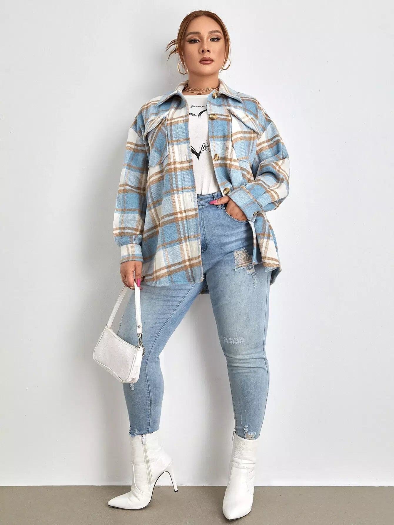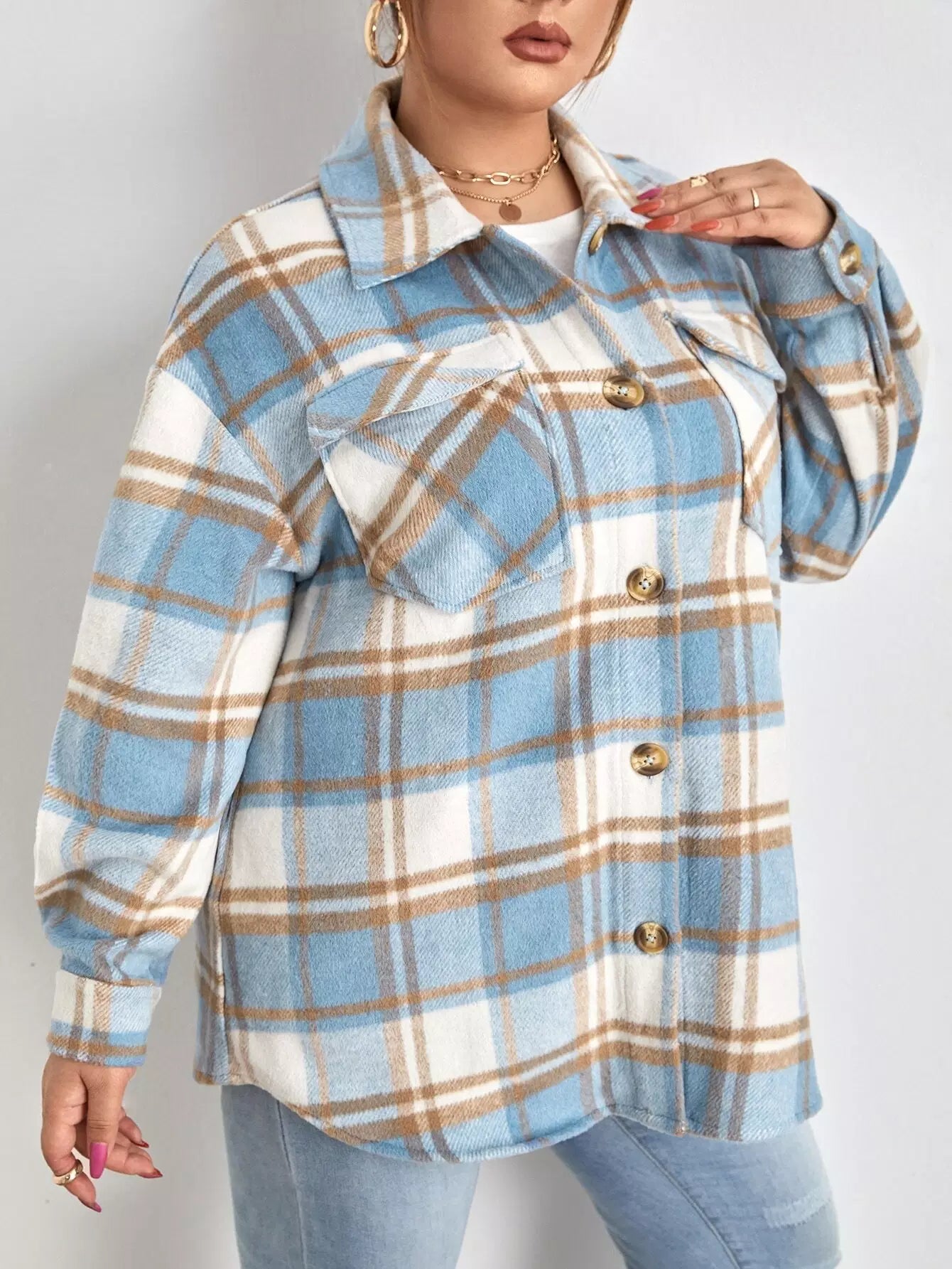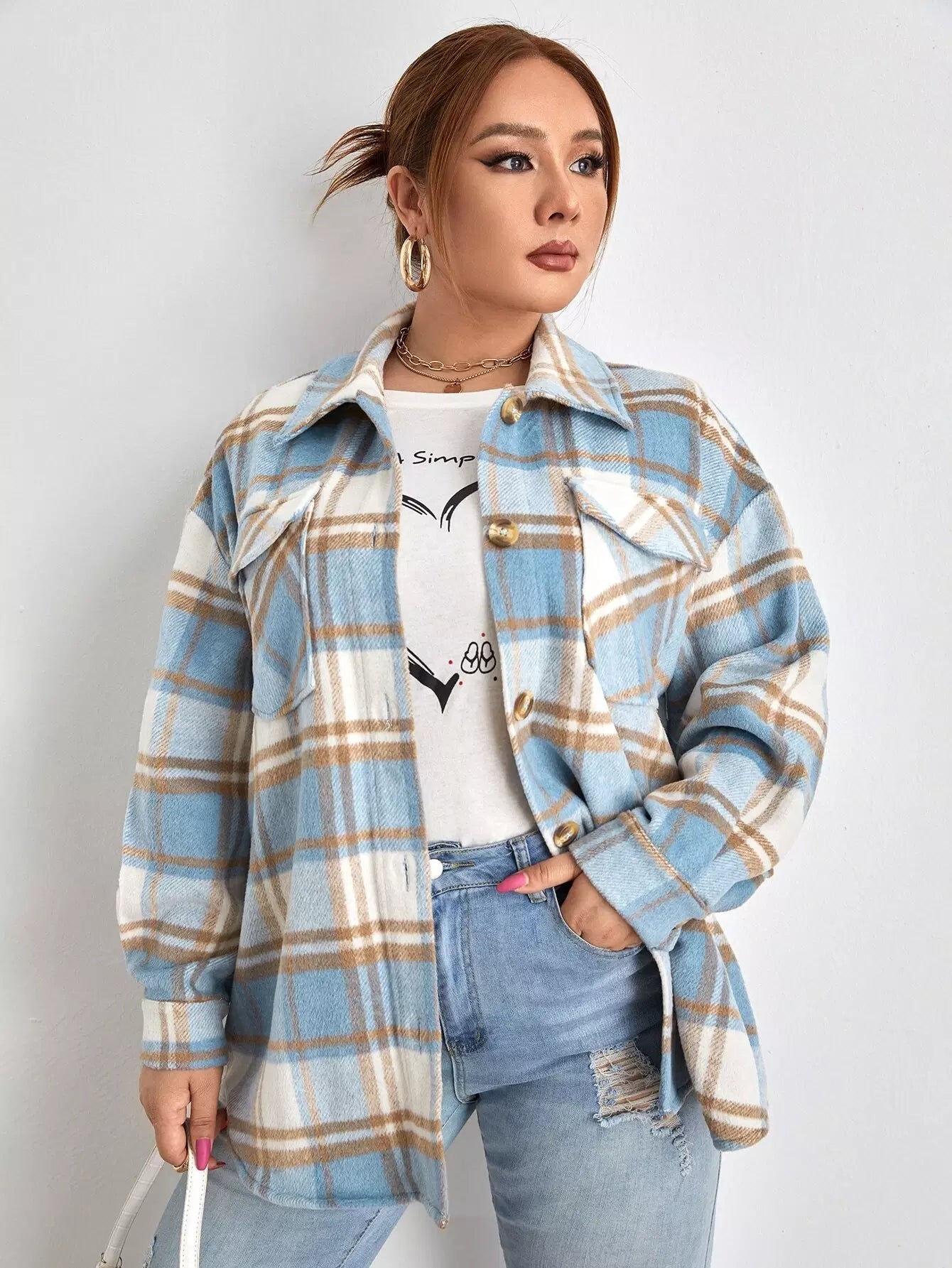 معطف فوق الكتف منسدل بجيب منسدل منقوش بطبعة بلاس بلس