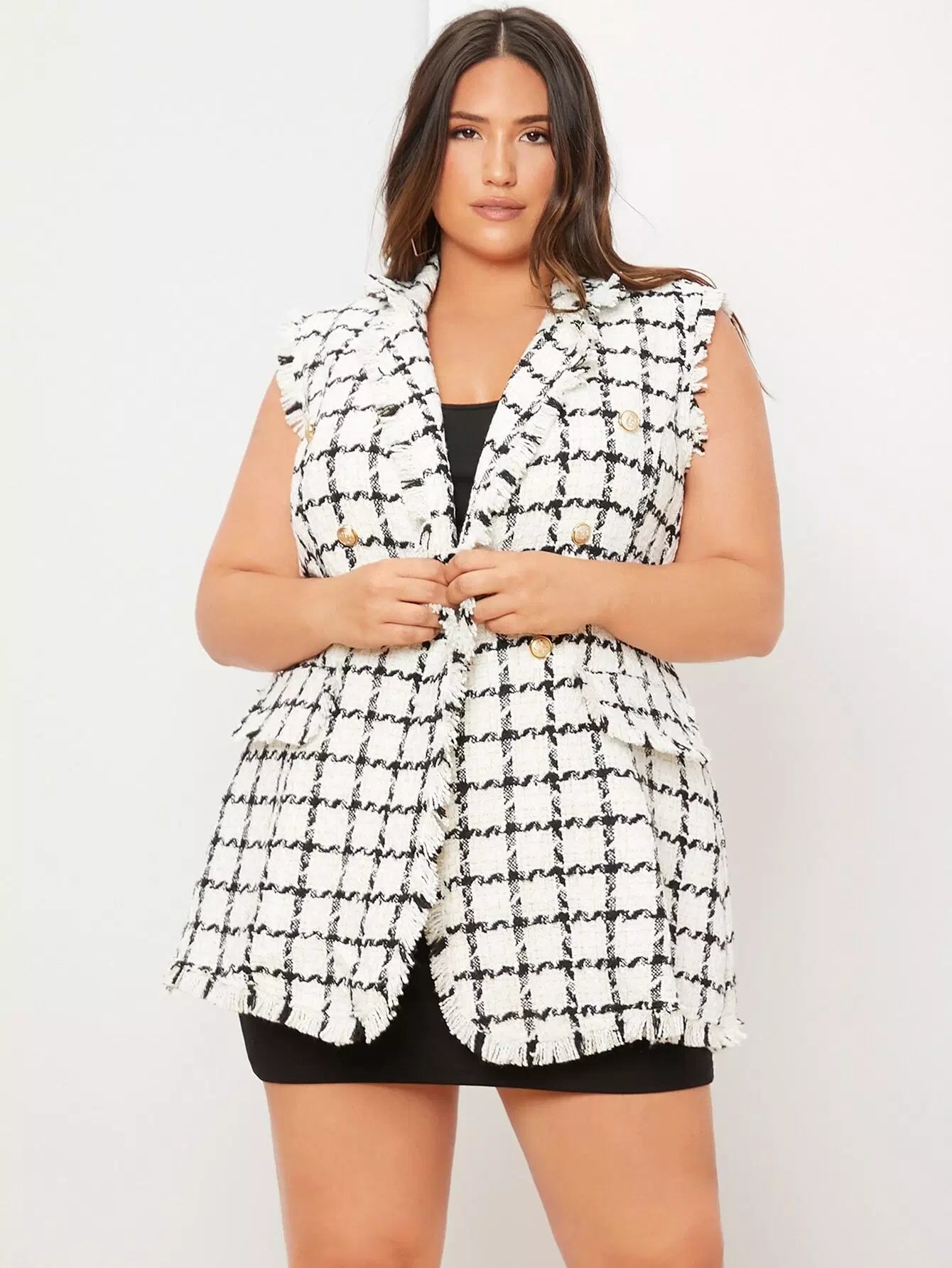 معطف بدون أكمام منقوش بنقوش منقوشة بطبعة خامة