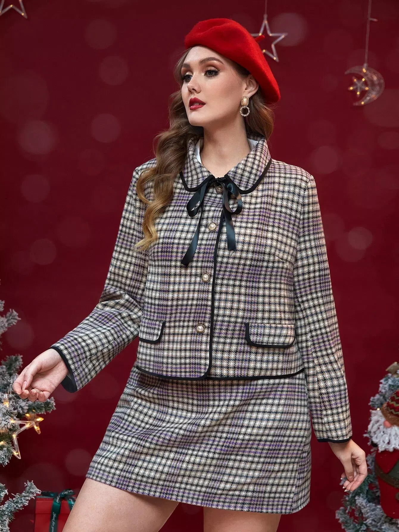 معطف فوقي منقوش بربطة عنق منقوشة بلون مغاير