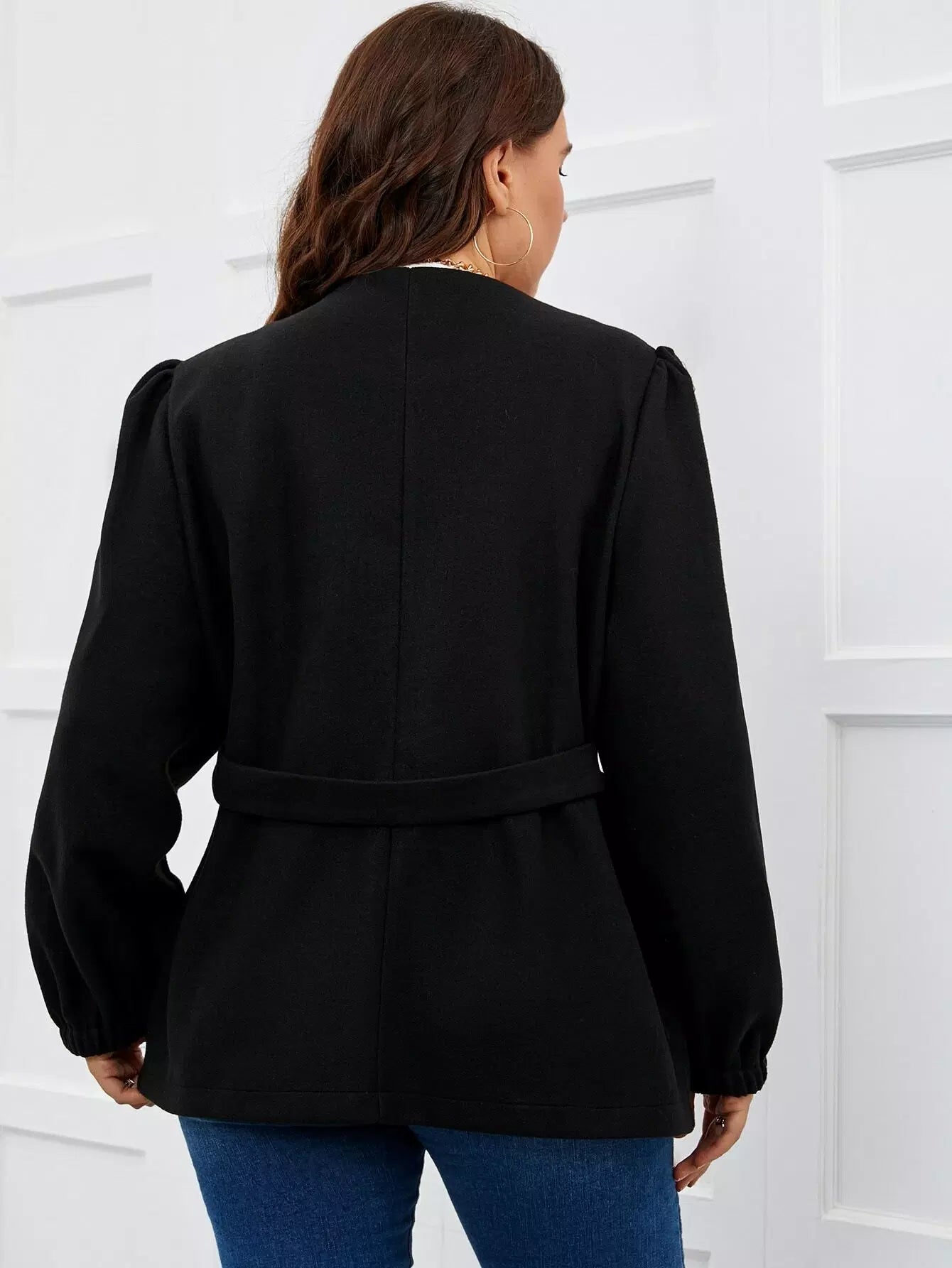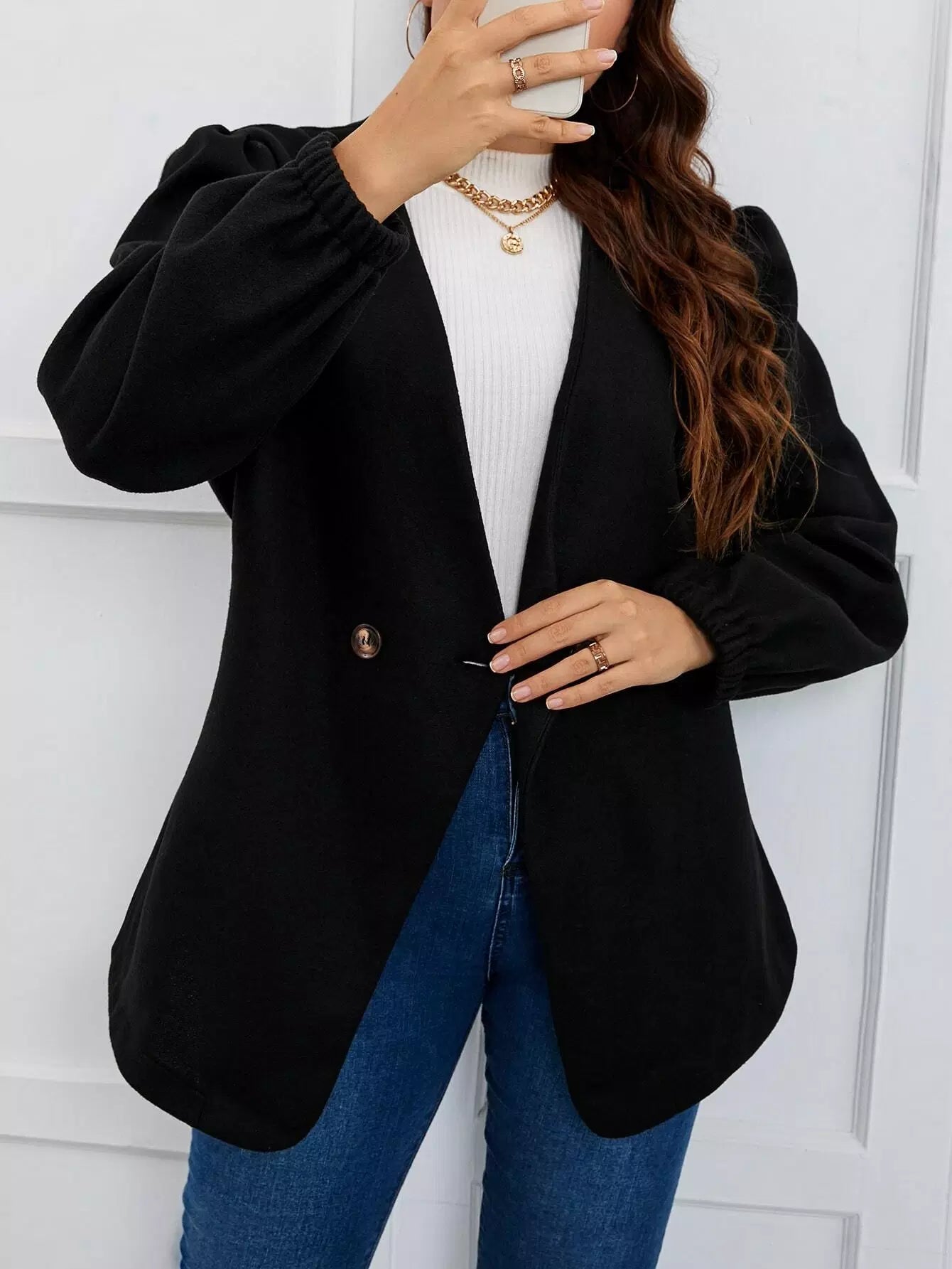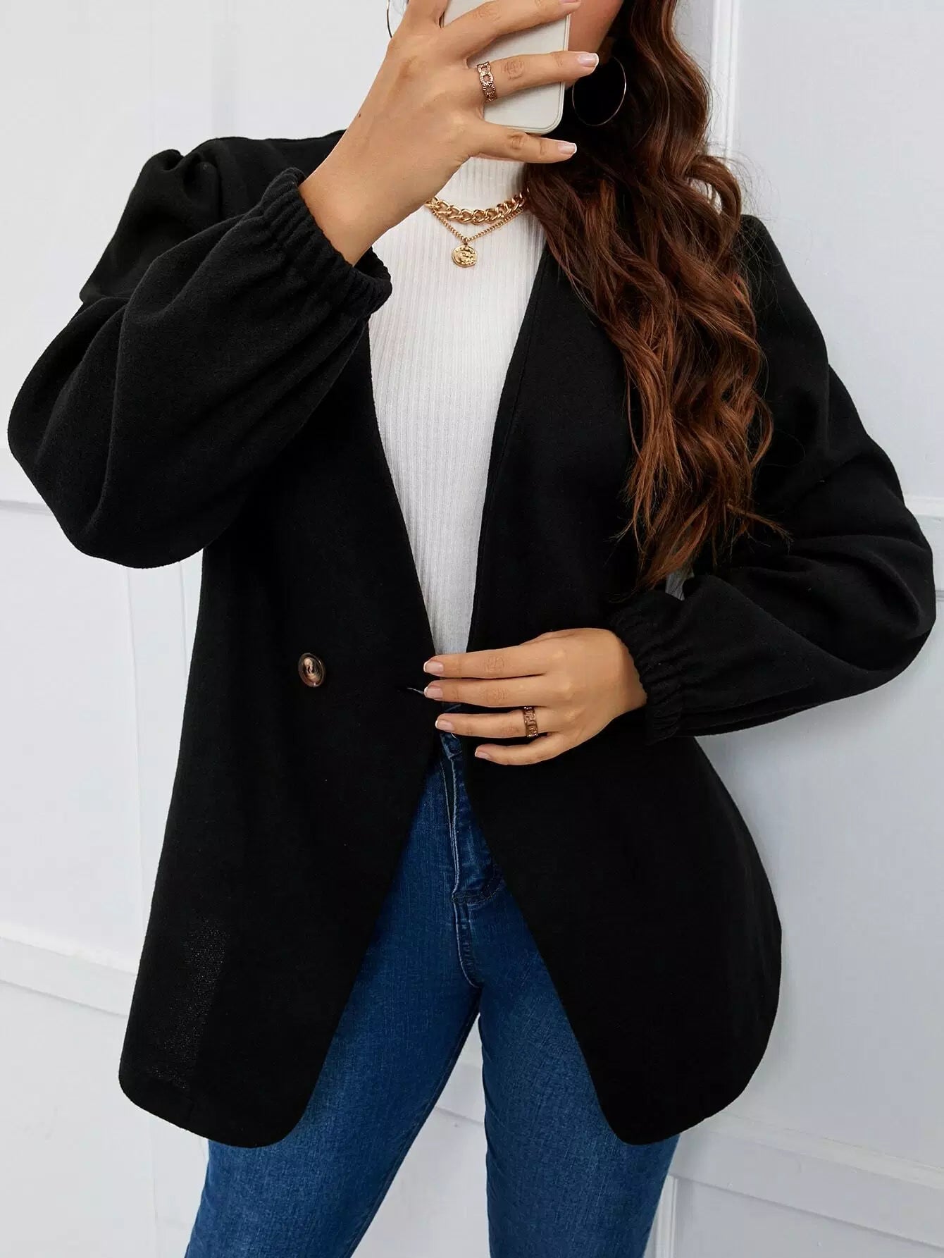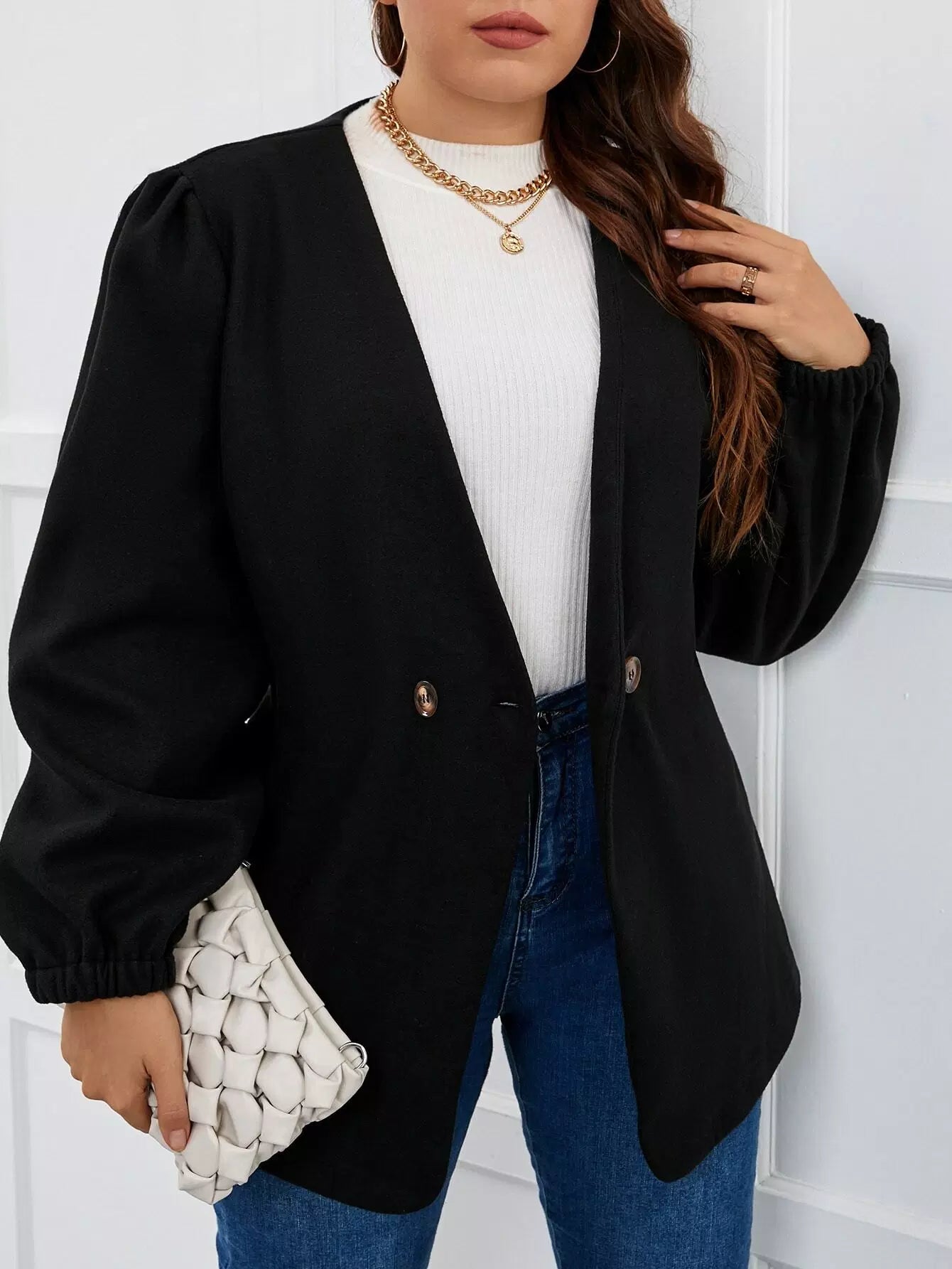 معطف فوقي بأكمام منفوخة بأزرار مزدوجة بلس