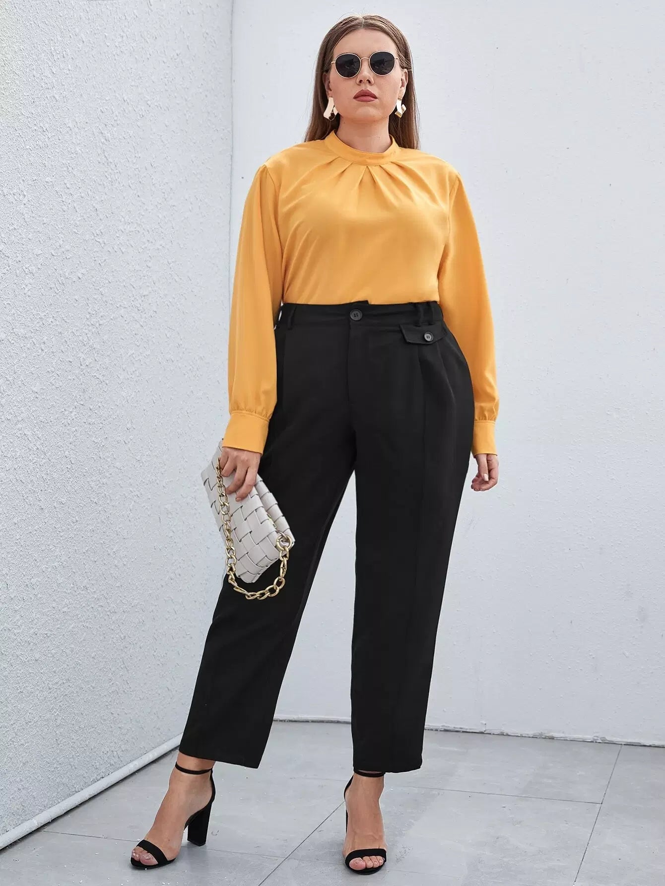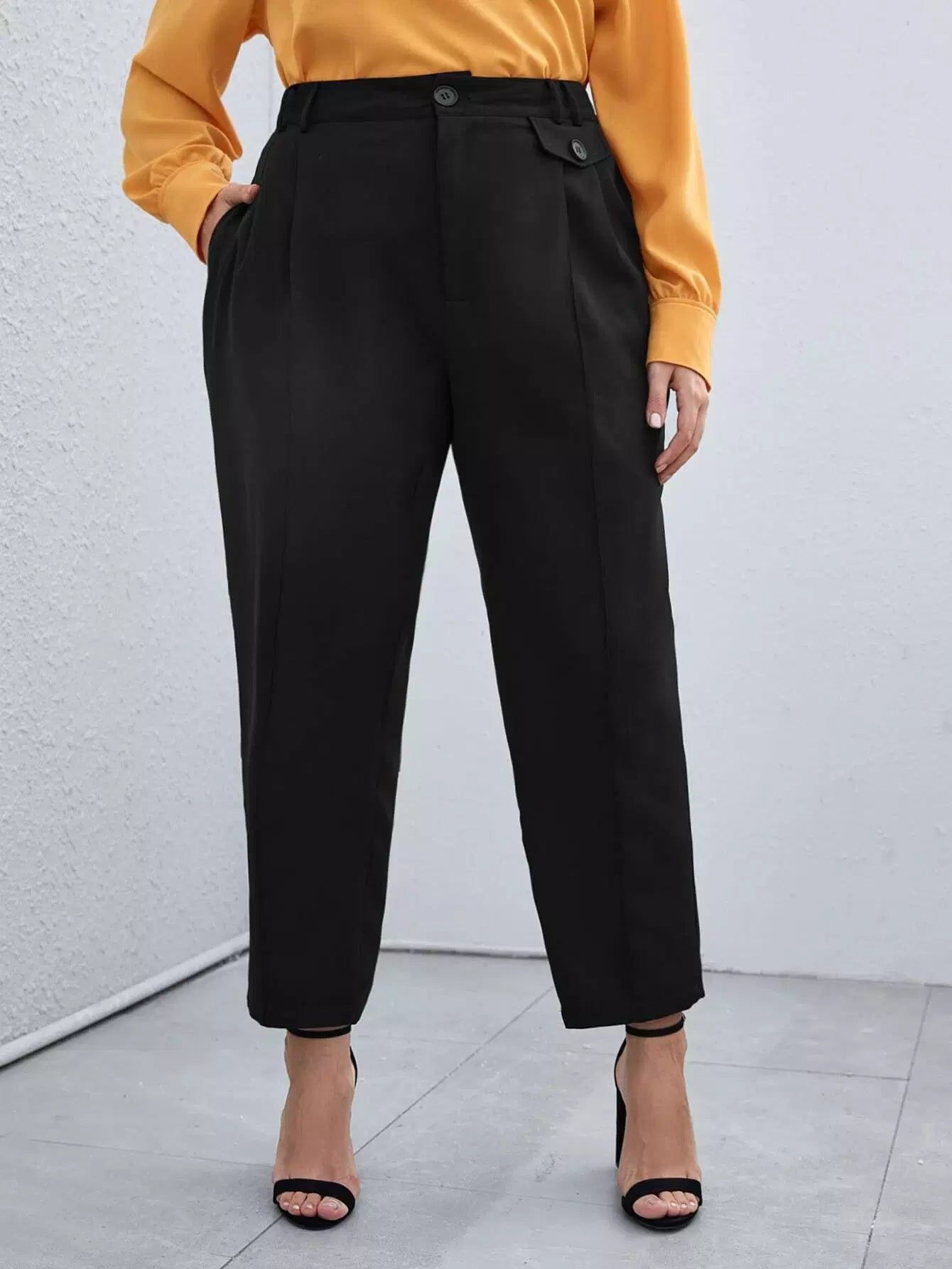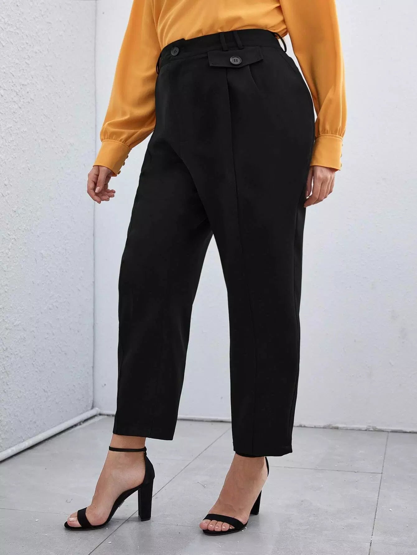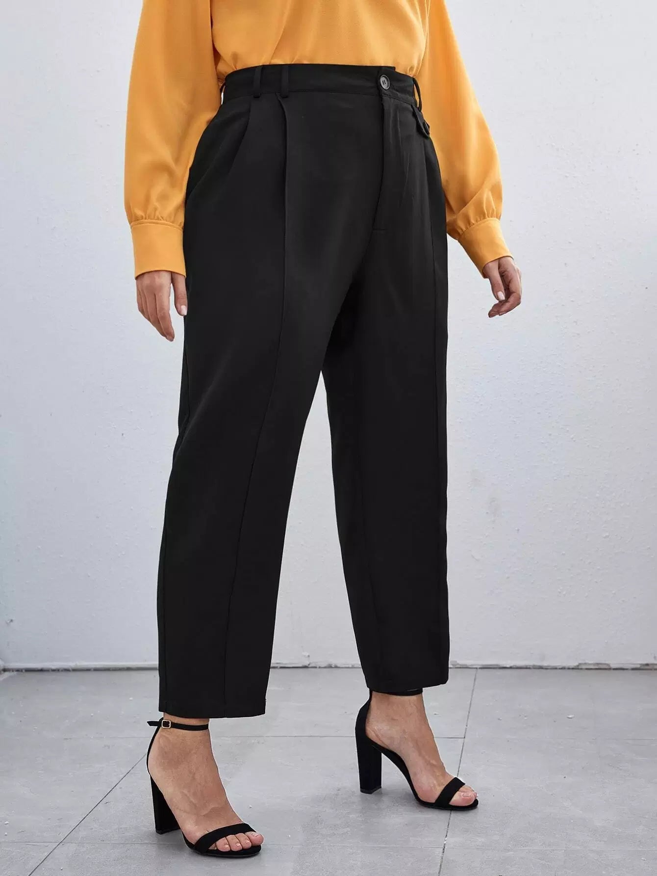بنطلون قصير بخصر زائد بأزرار على الخصر