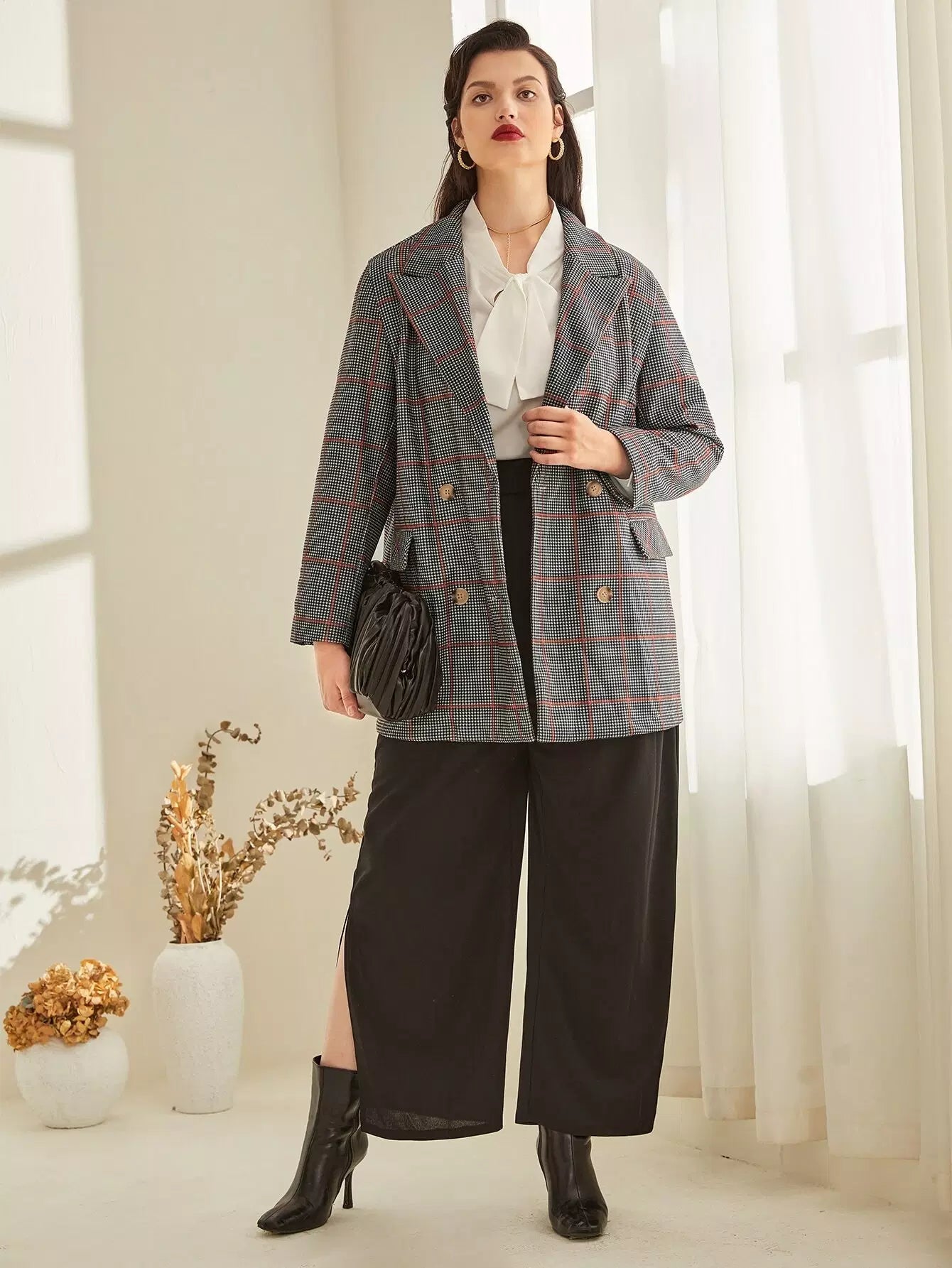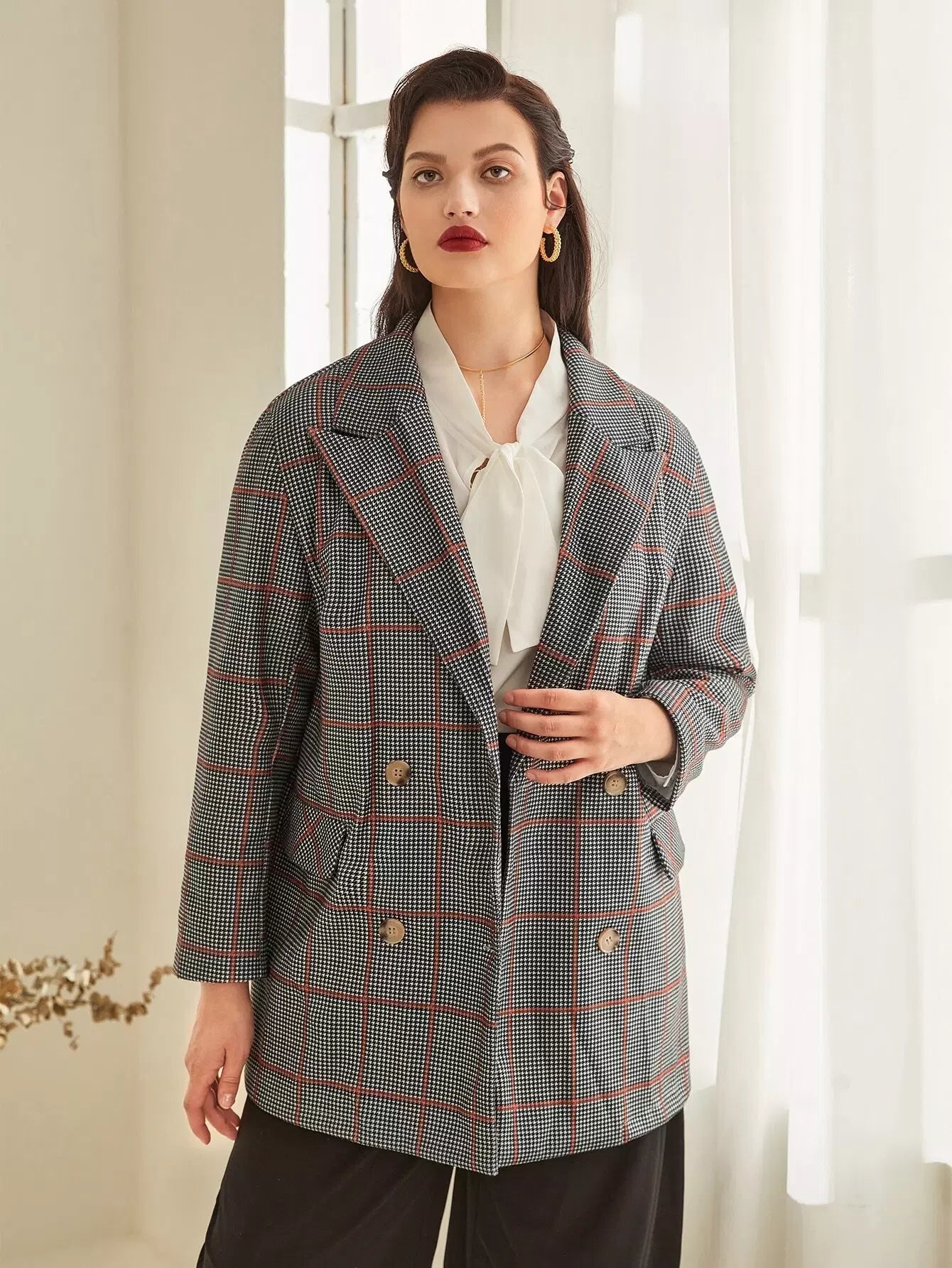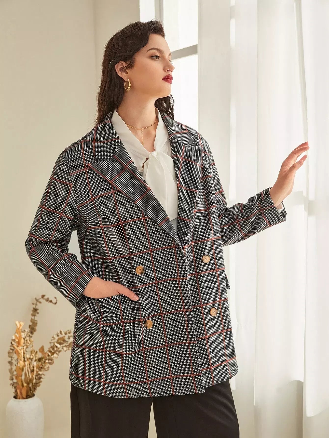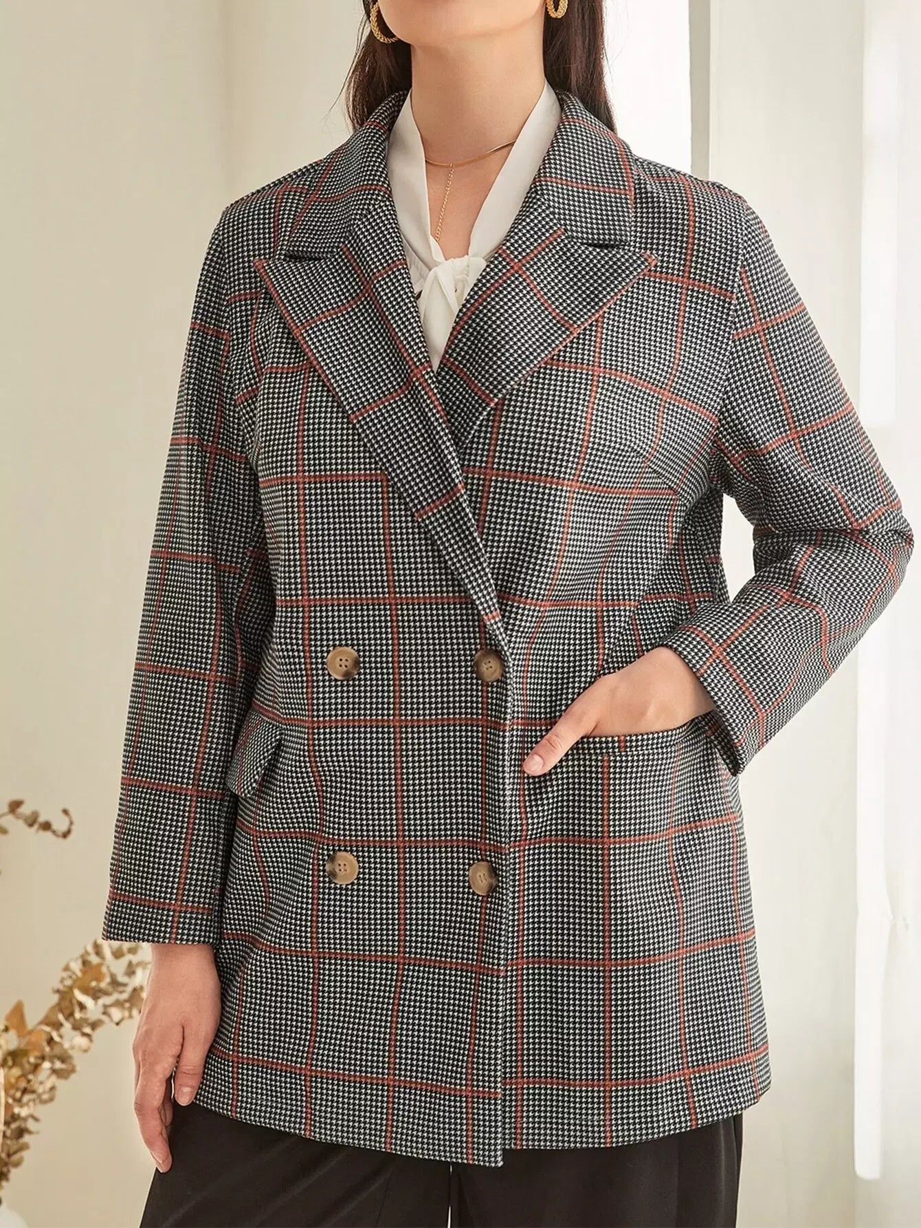 سترة بلايز بأزرار مزدوجة بأزرار مزدوجة