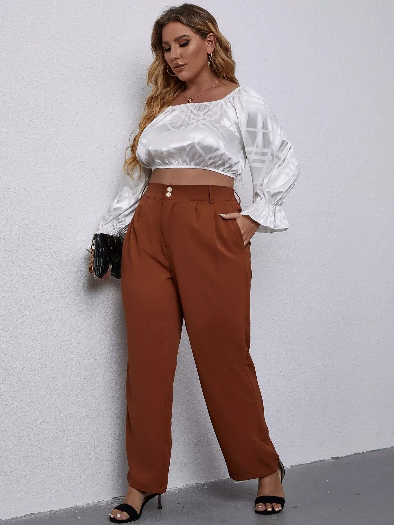 بنطلون بجيب مائل بخصر عالٍ زائد