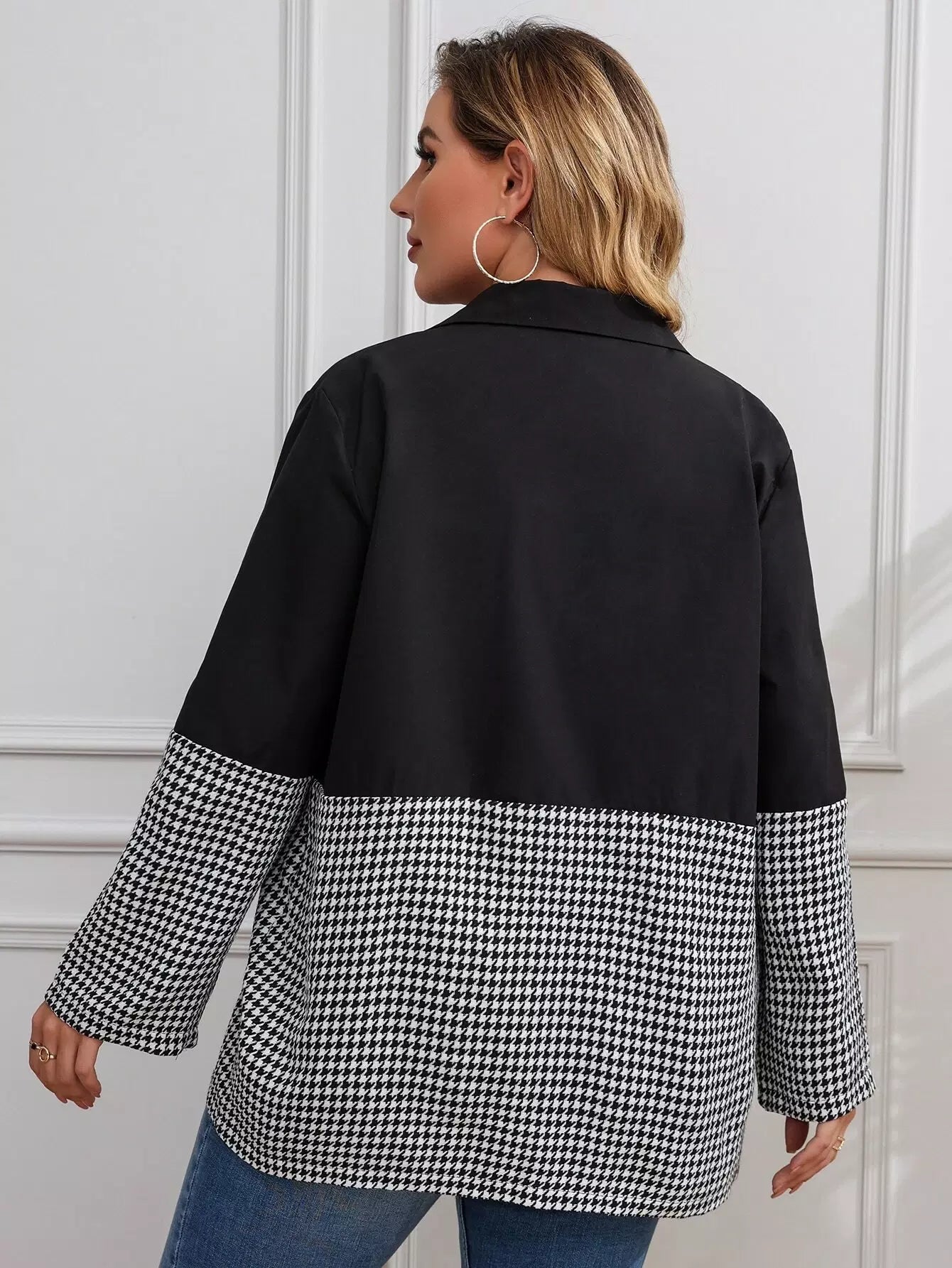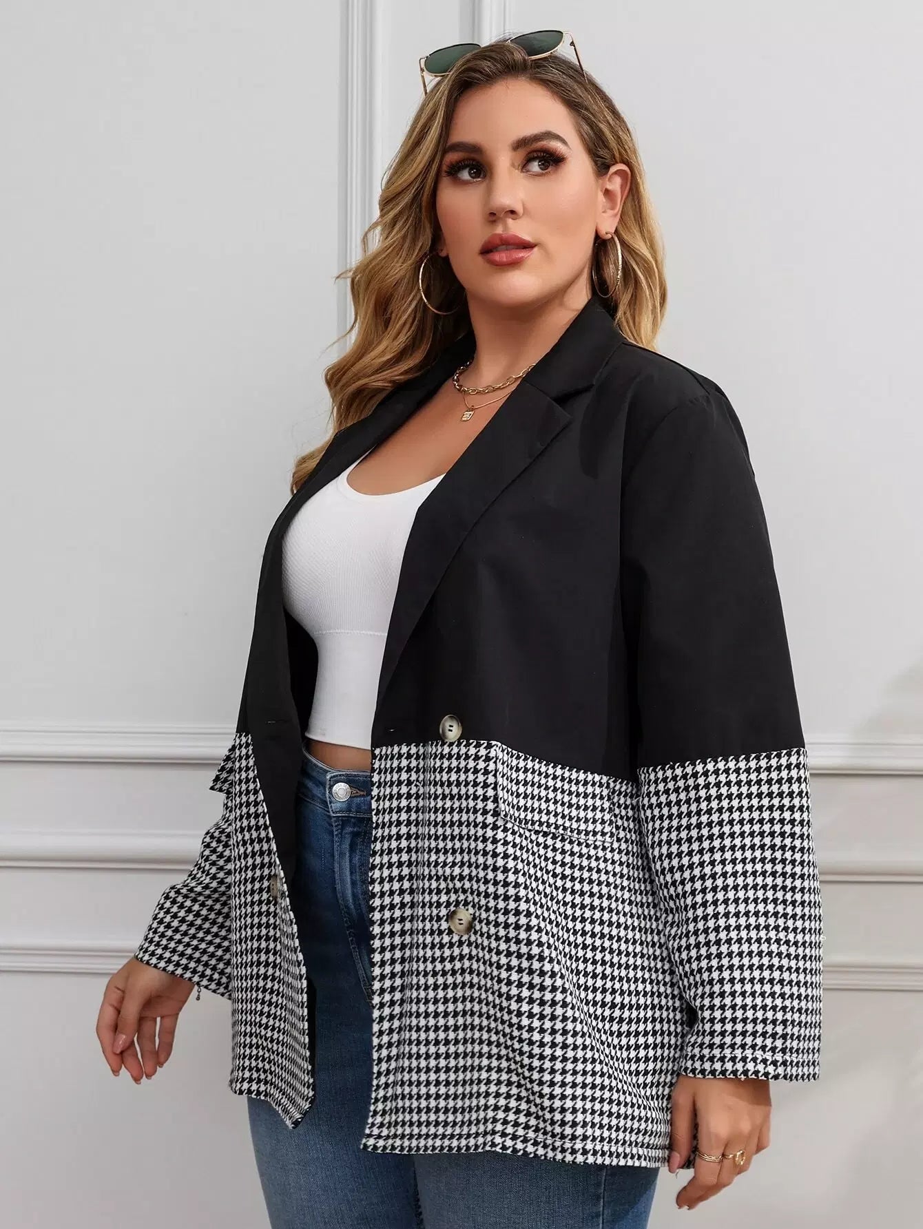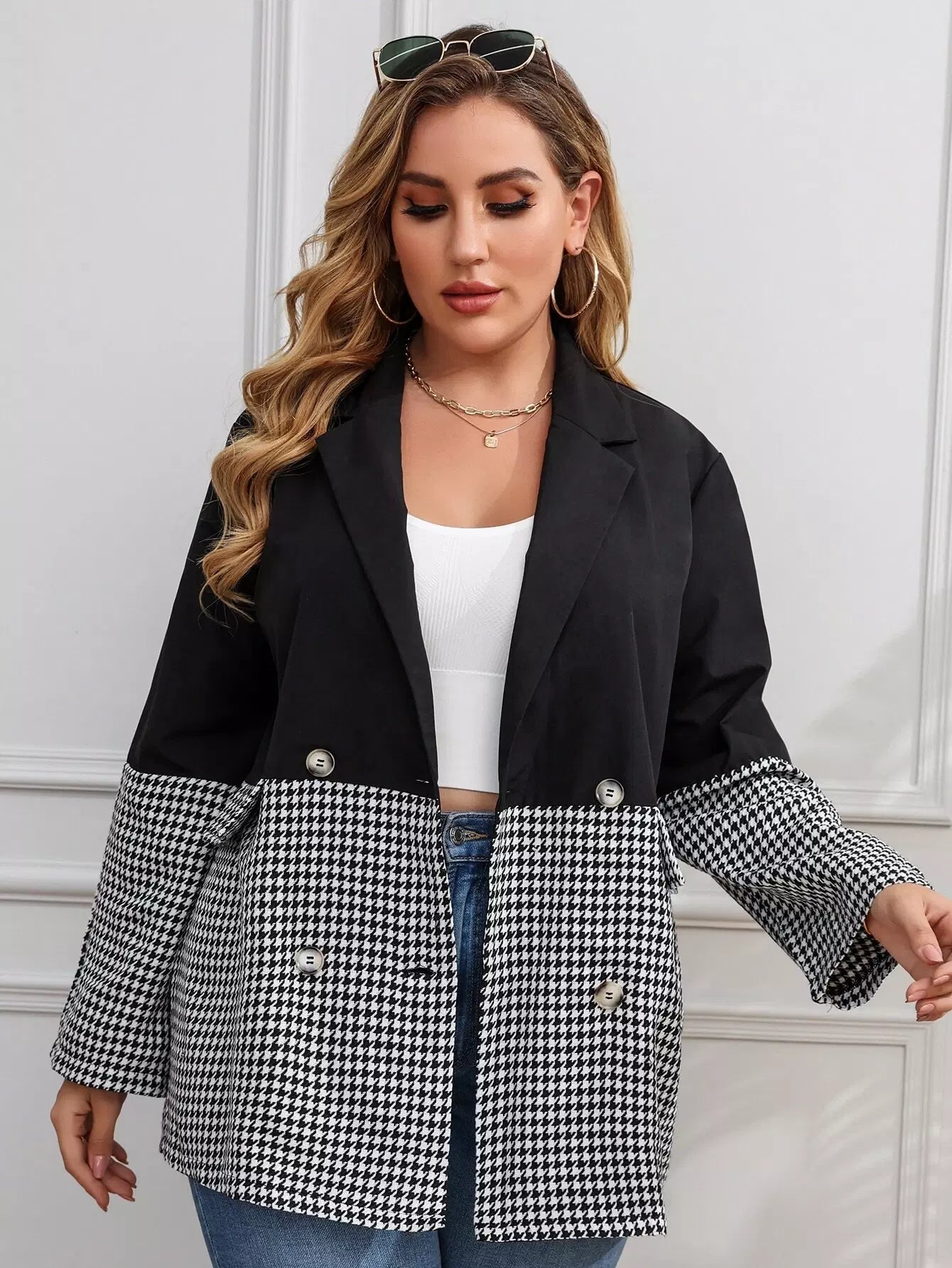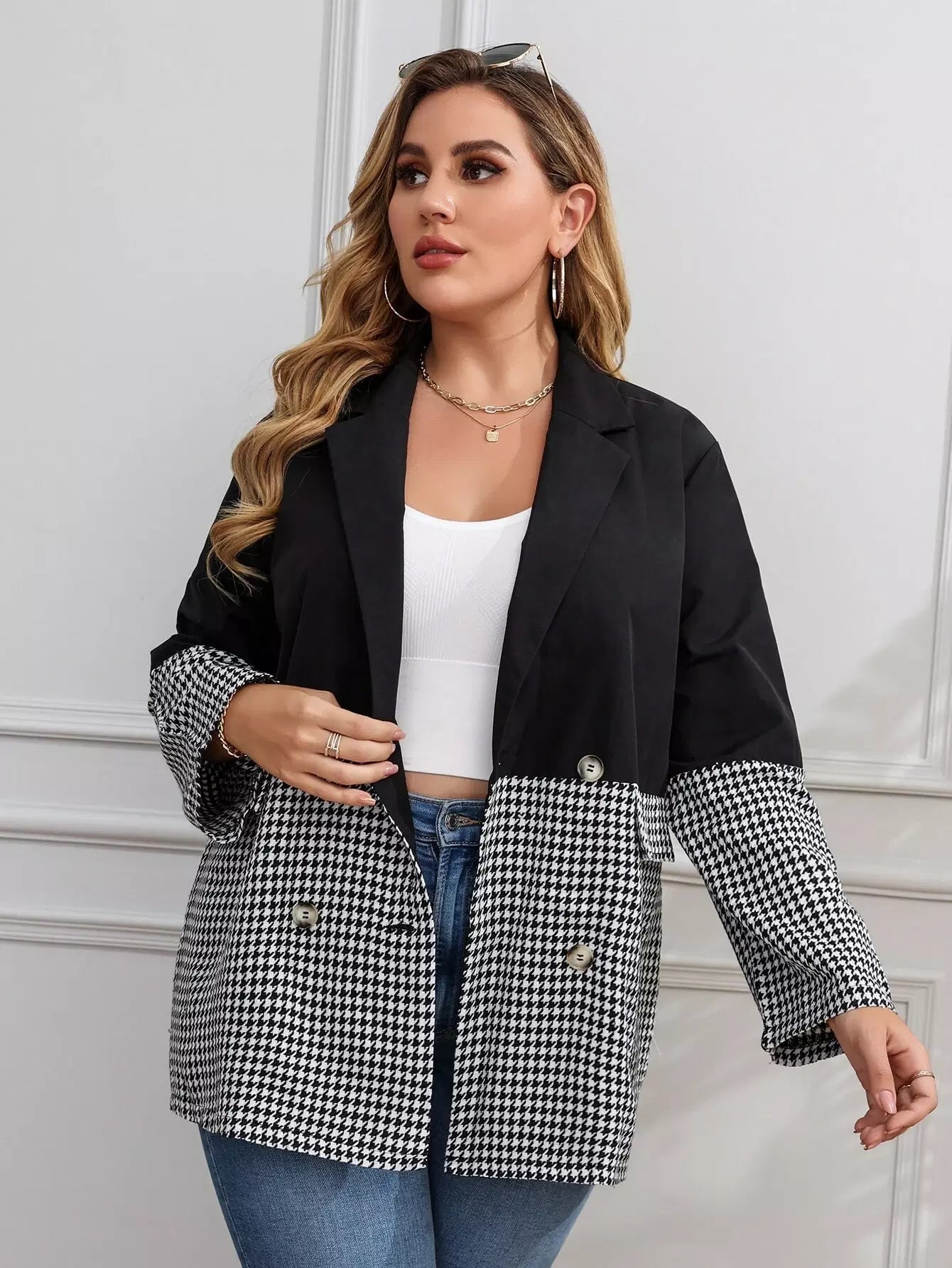 سترة بلايز بقصّة بلس هاوندستوث مزدوجة الصدر