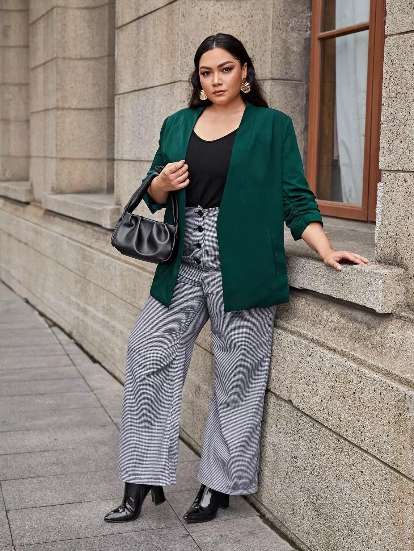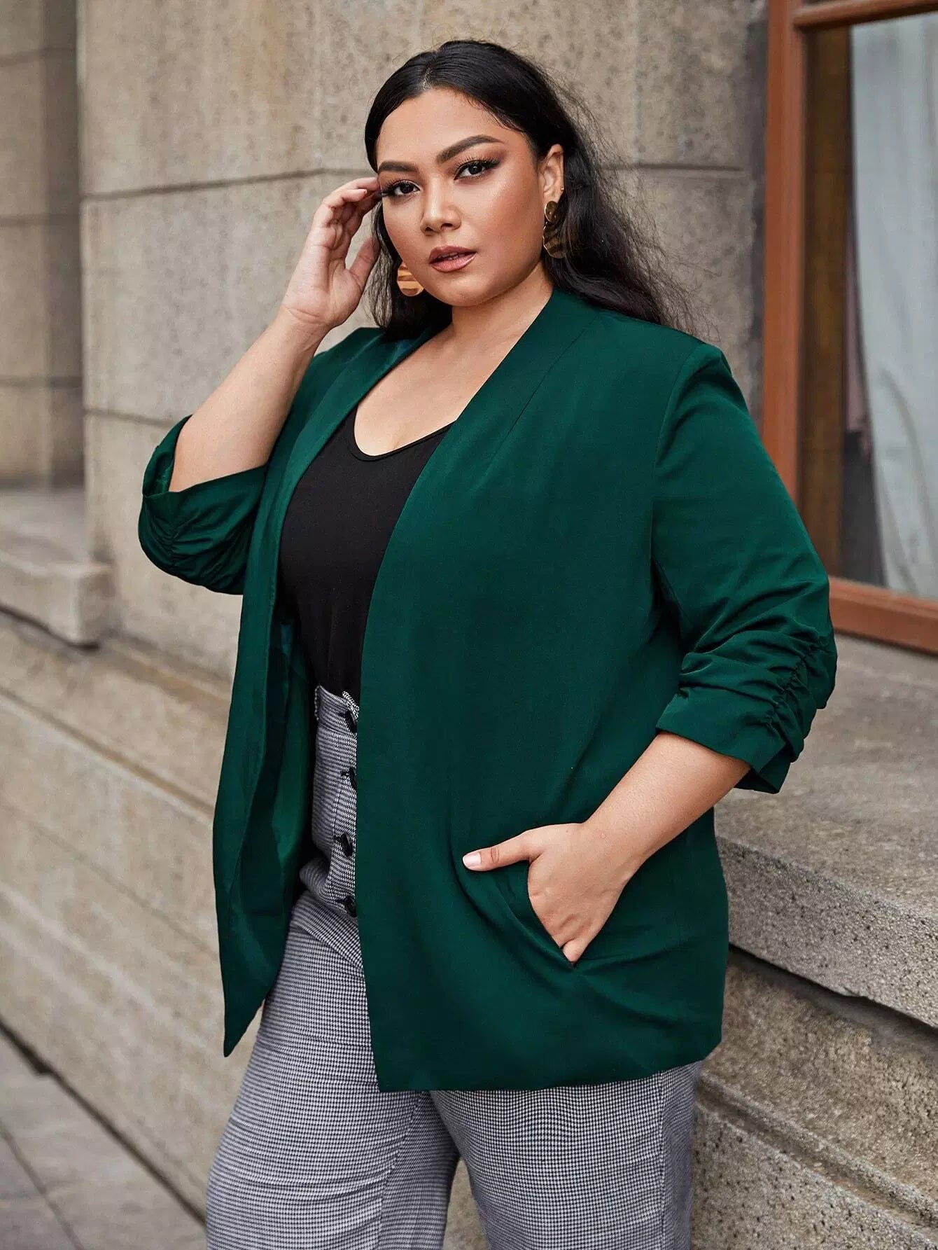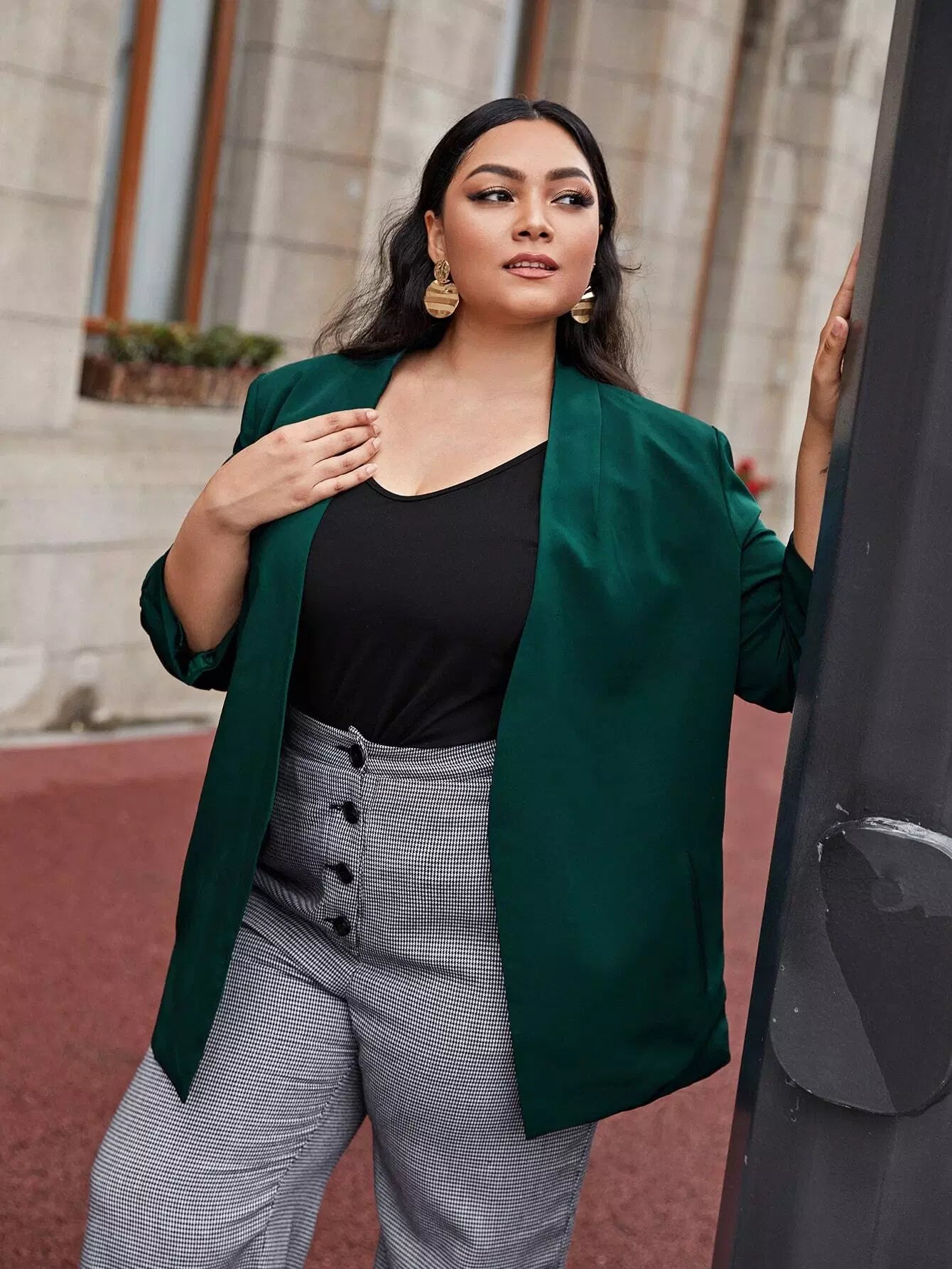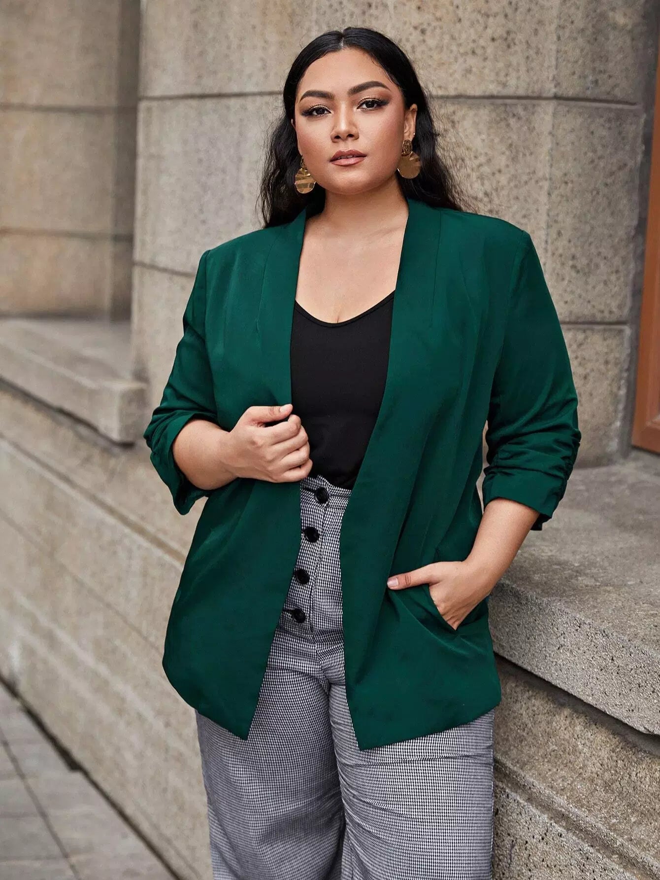سترة بلايز بجيب مائل مفتوح من الأمام مفتوح