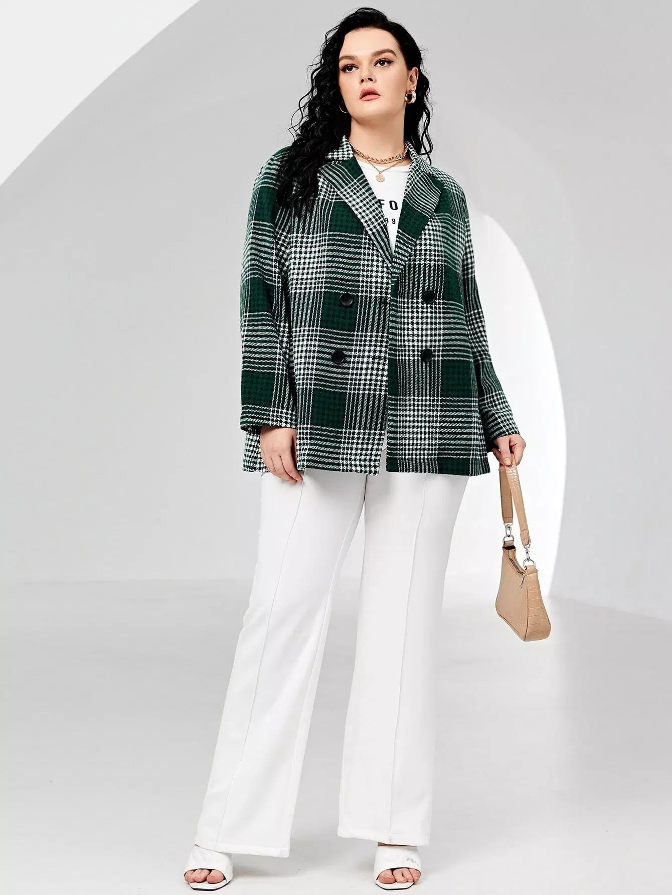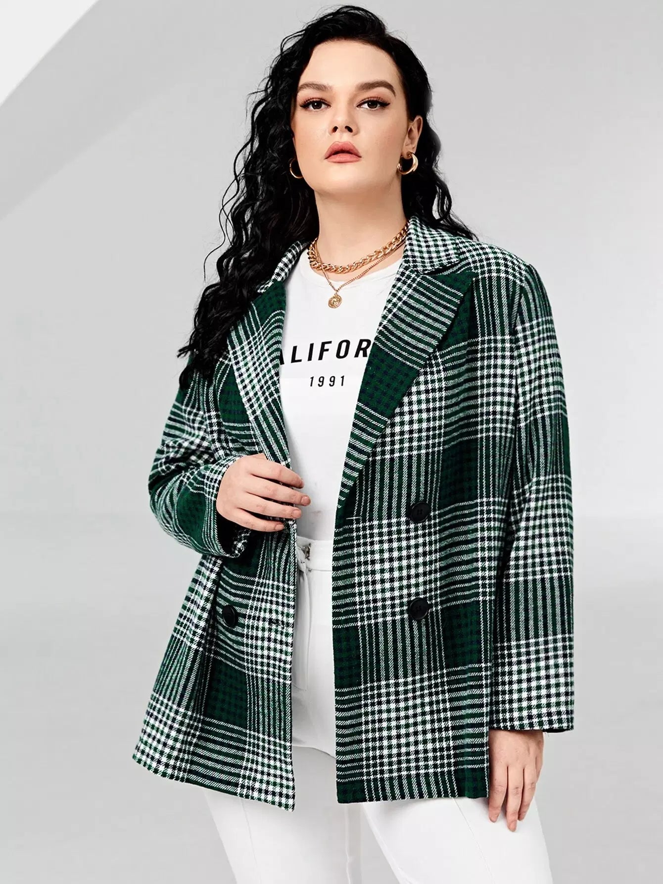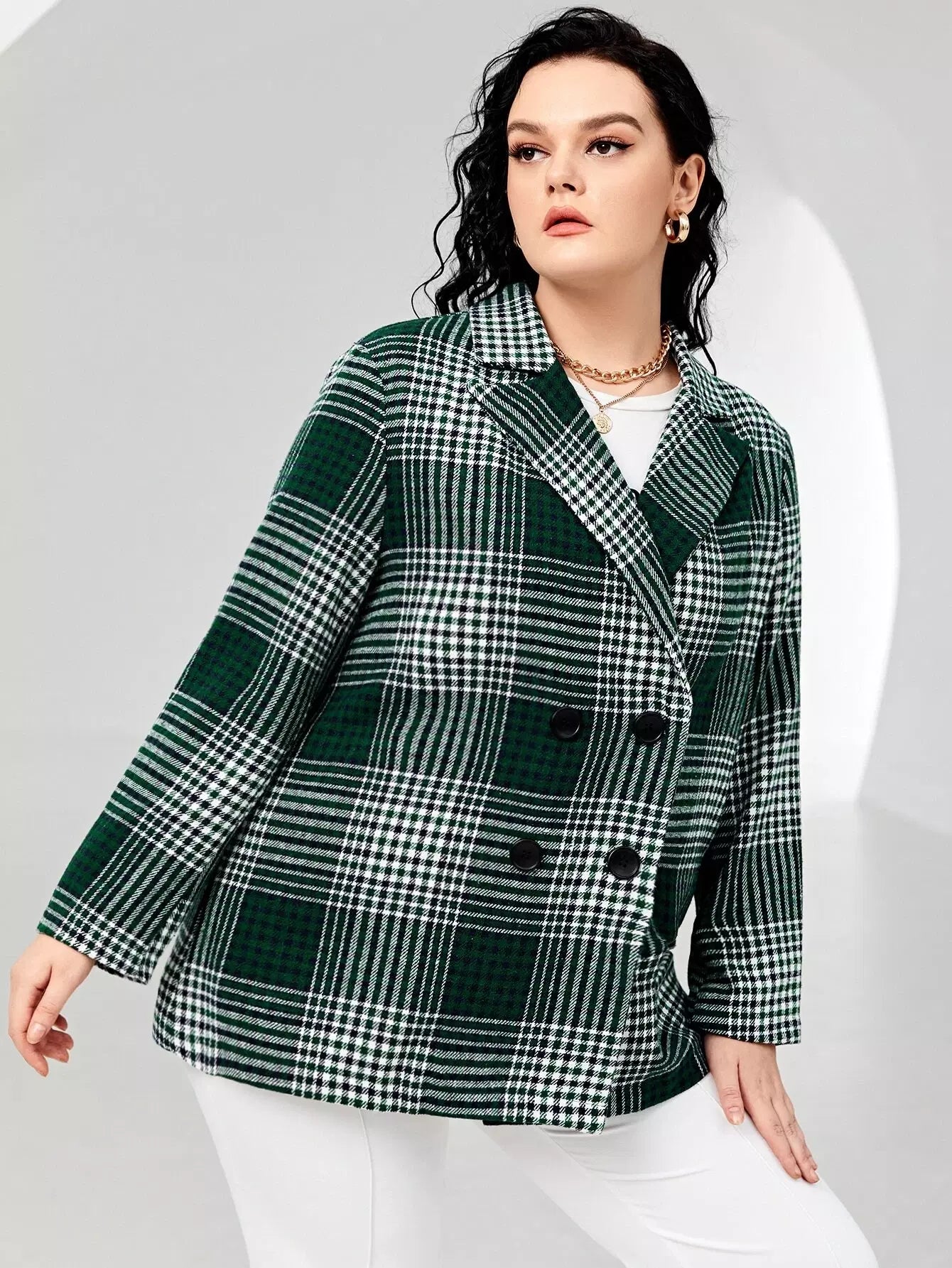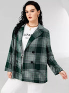 نحيف - مقاس كبير سترة منقوشة ذات طية صدر السترة مزدوجة الصدر