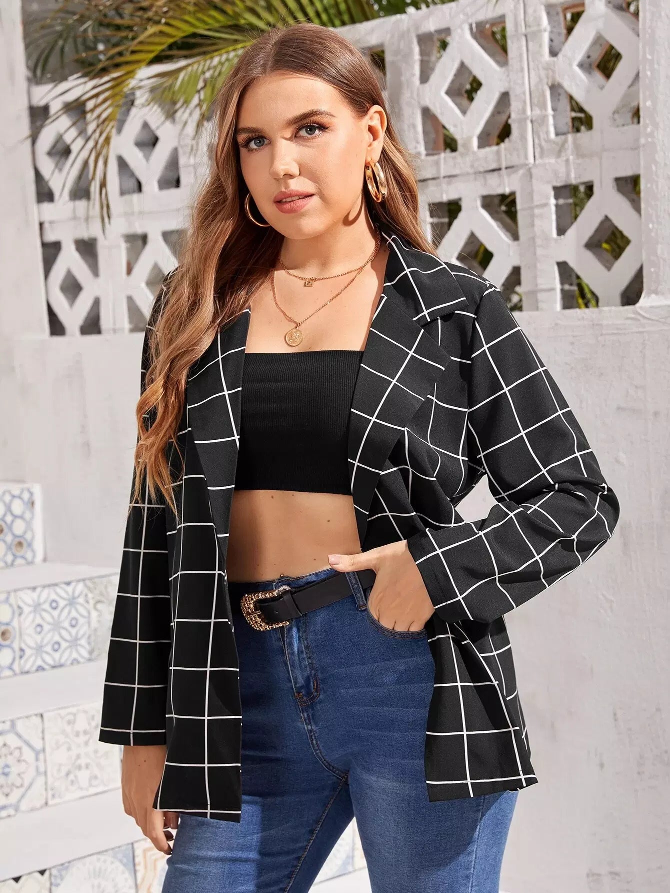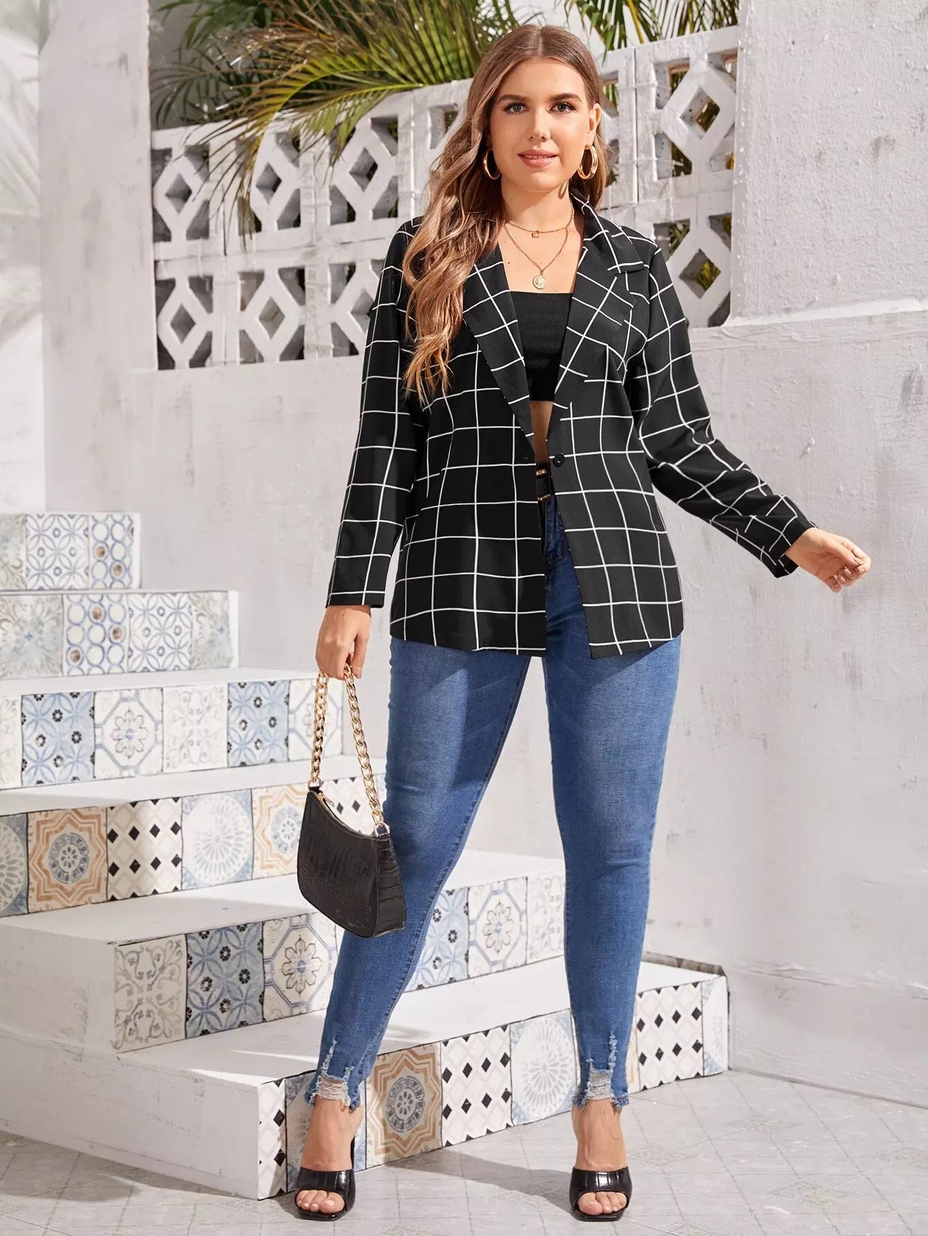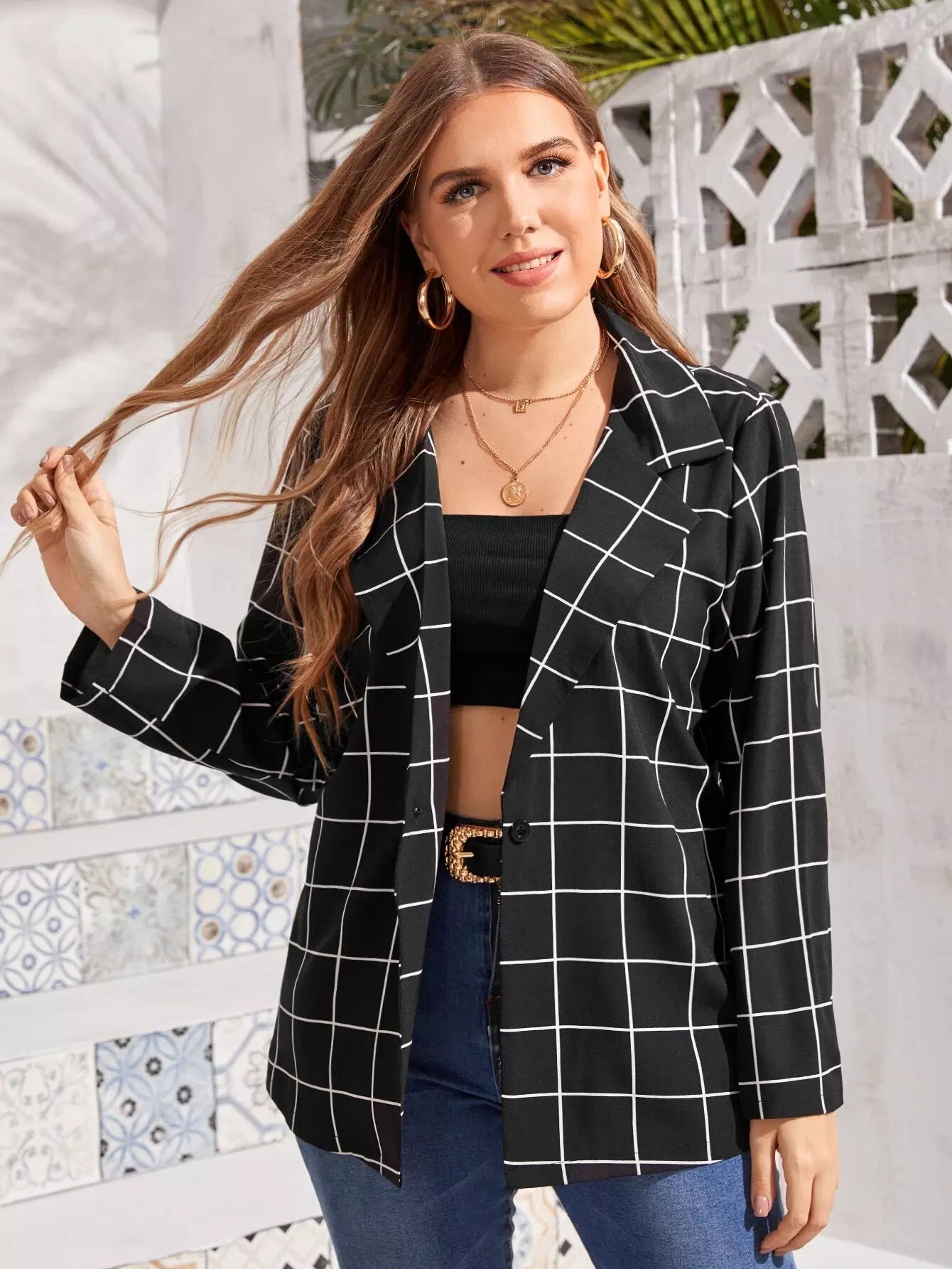 سترة بلايزر منقوشة بأزرار واحدة زائد