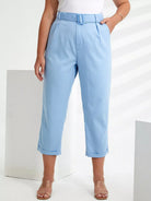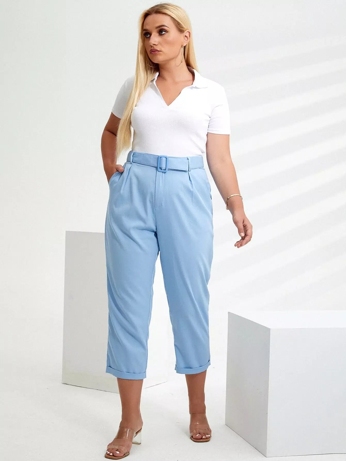 بالإضافة إلى بنطال كابريس بجيب مائل بدون حزام
