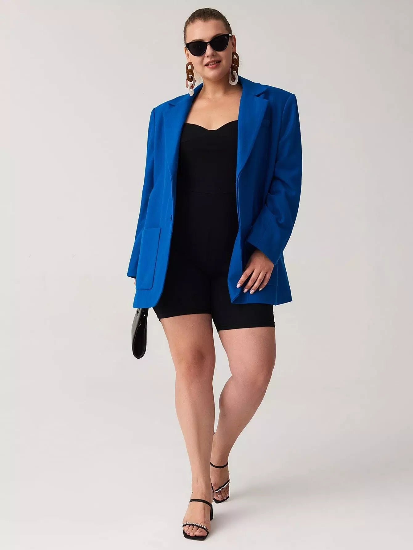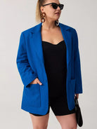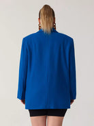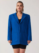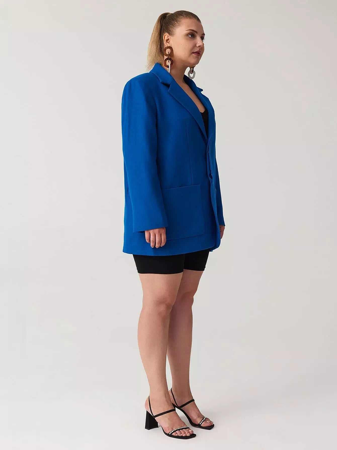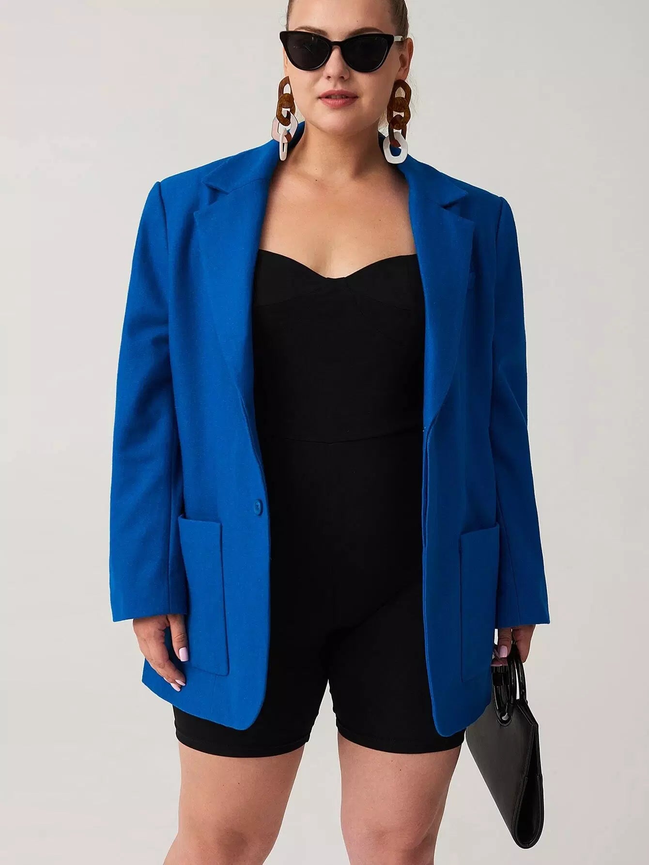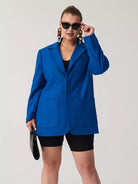 سترة بلايز بجيوب مرقعة برقعة صوف ممزوجة زائد