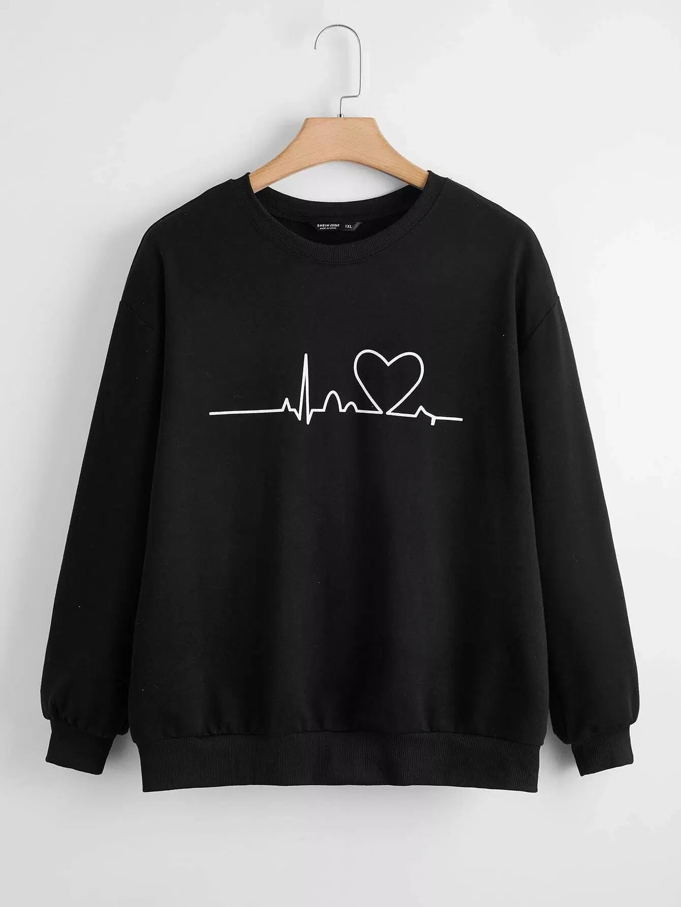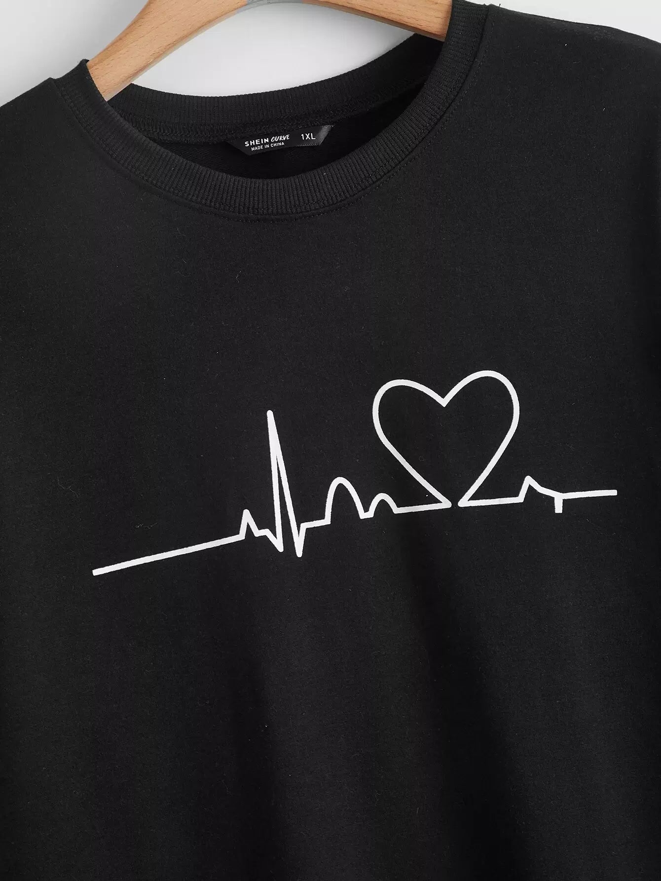 كنزة صوفية مطبوع عليها قلب منسدل الكتفين