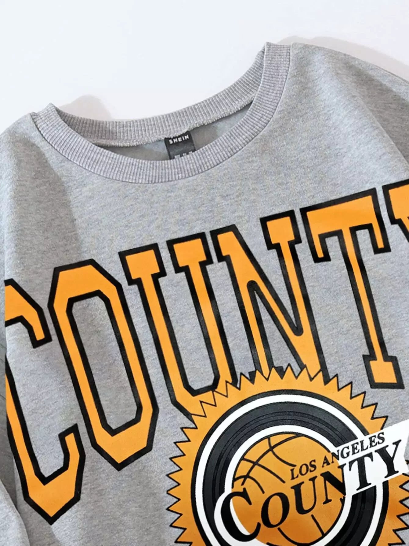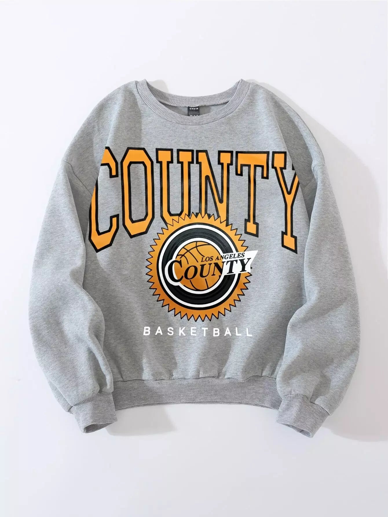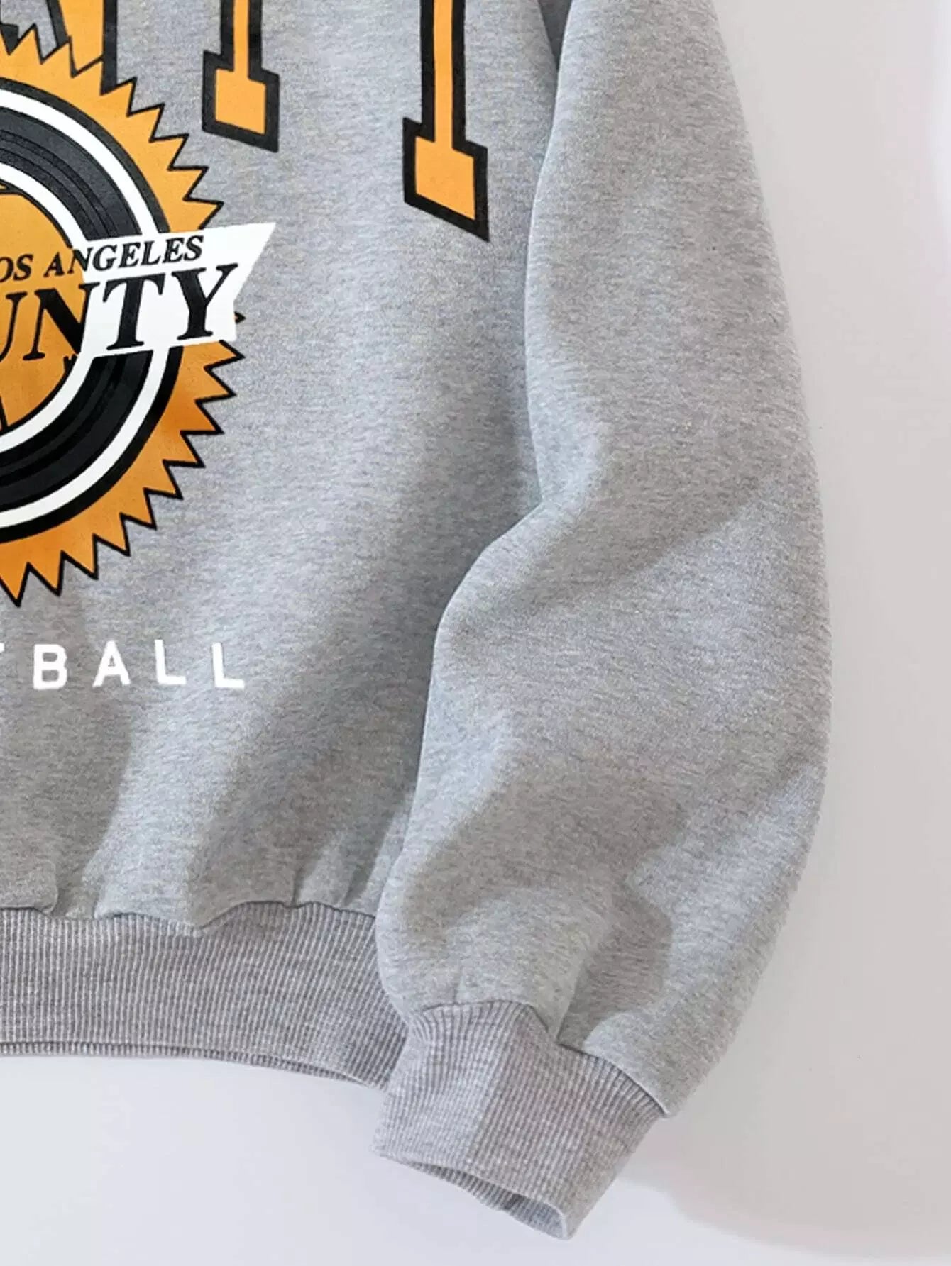 كنزة صوفية برسومات كرة السلة وحروف زائد