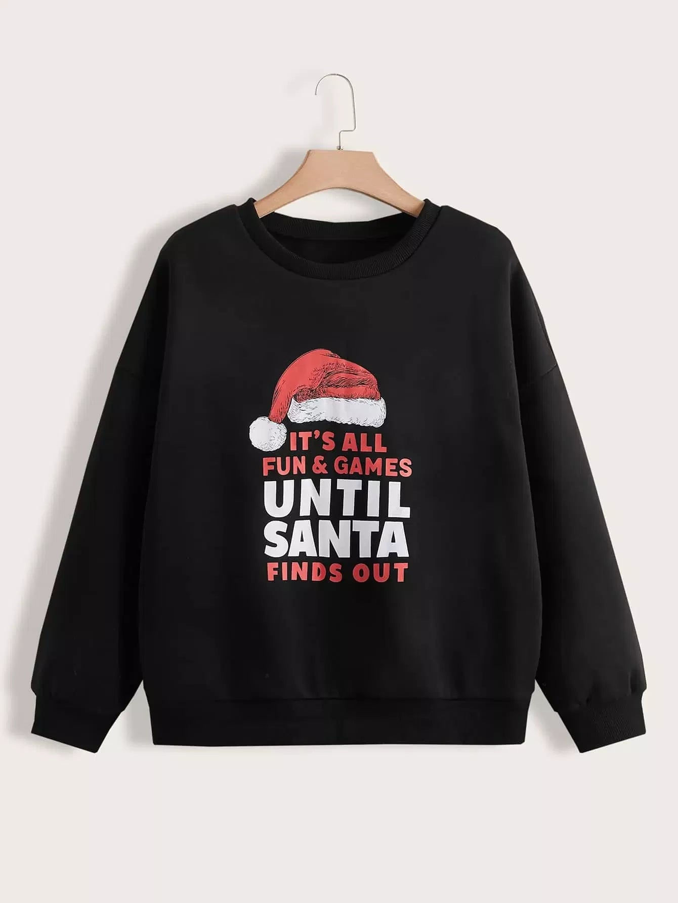 نحيف - مقاس كبير سويت شيرت بكتف منسدل مع شعار عيد الميلاد
