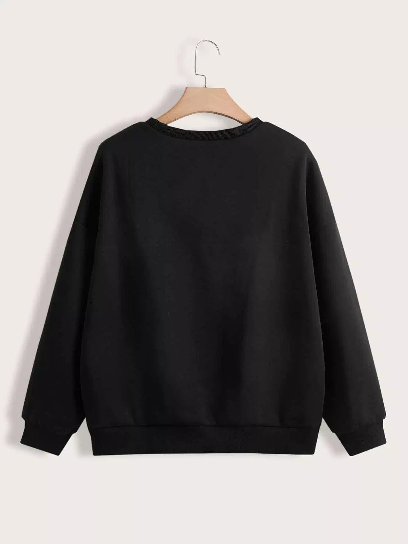سويت شيرت سويت شبيه بشعار الكريسماس منسدل الكتف برسومات زائد
