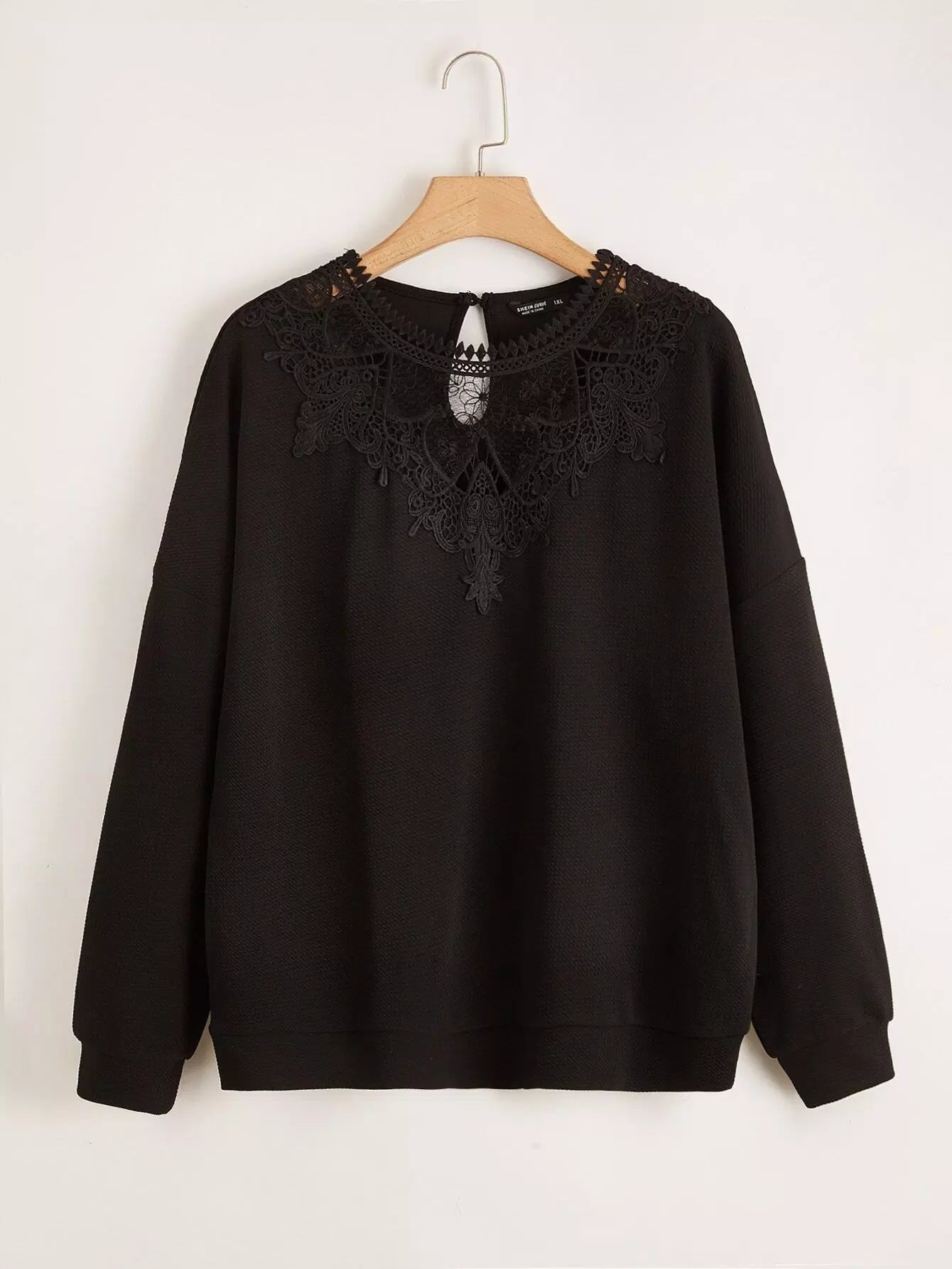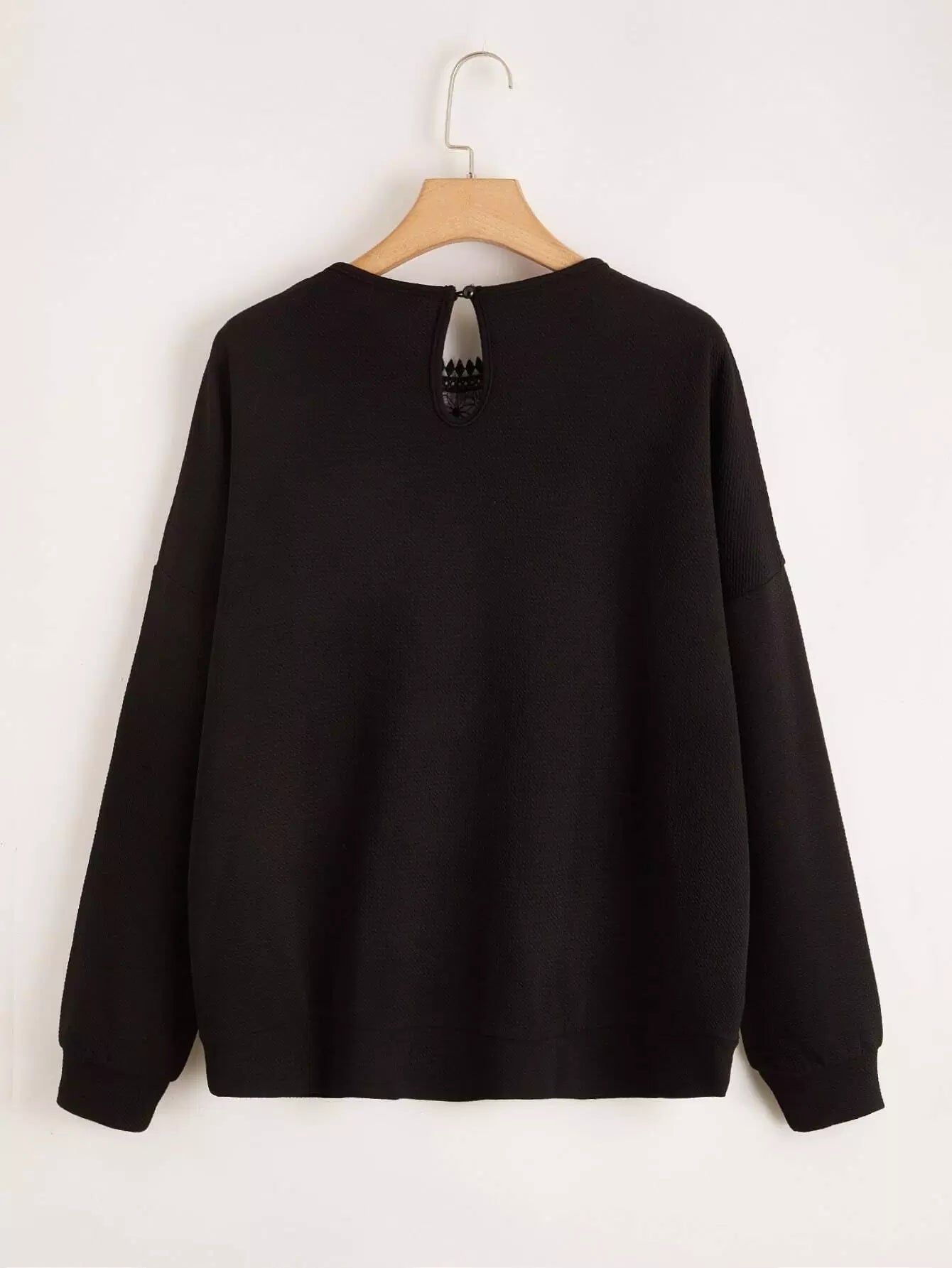 نحيف - مقاس كبير سويت شيرت بأكتاف منسدلة ودانتيل متباين