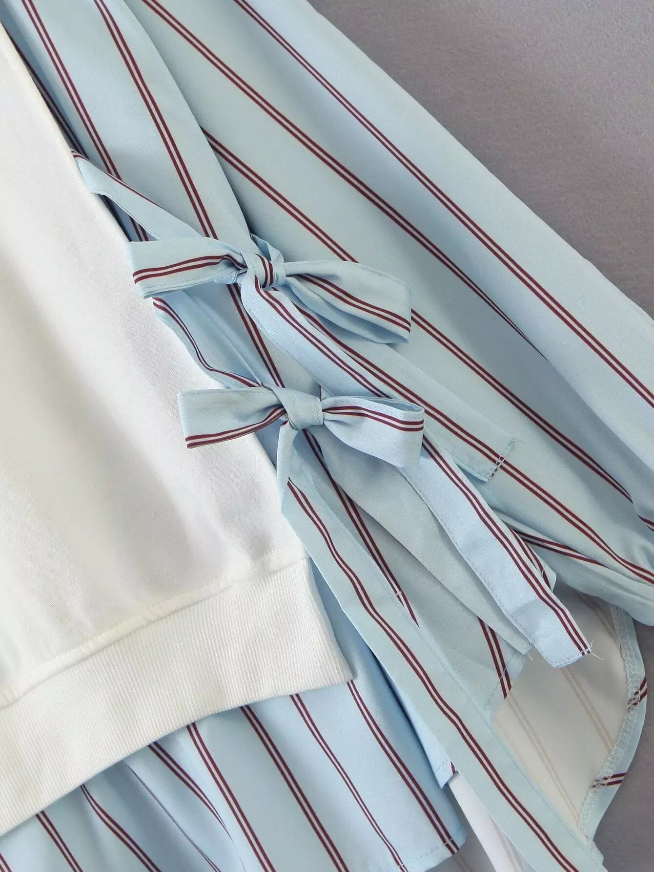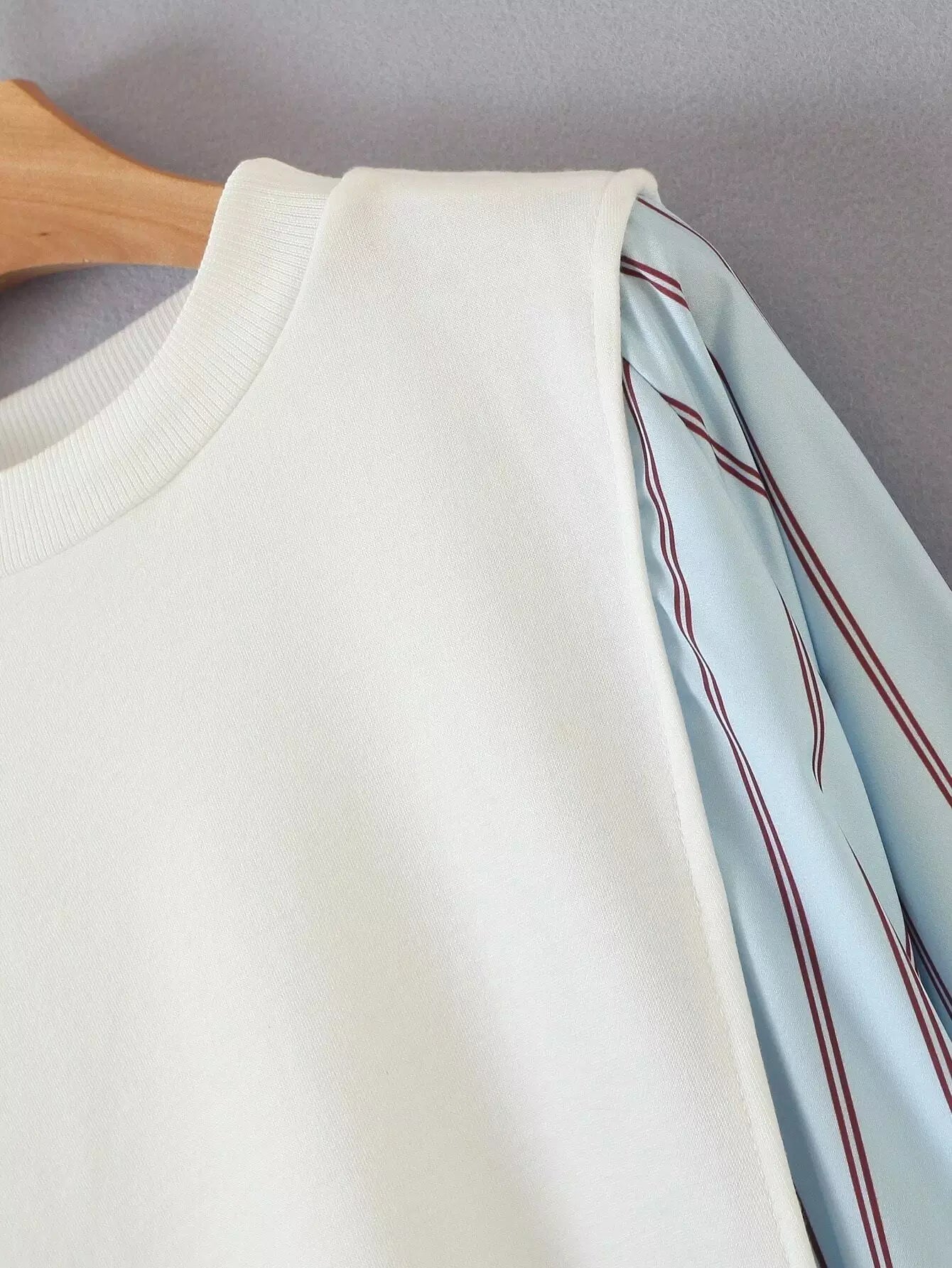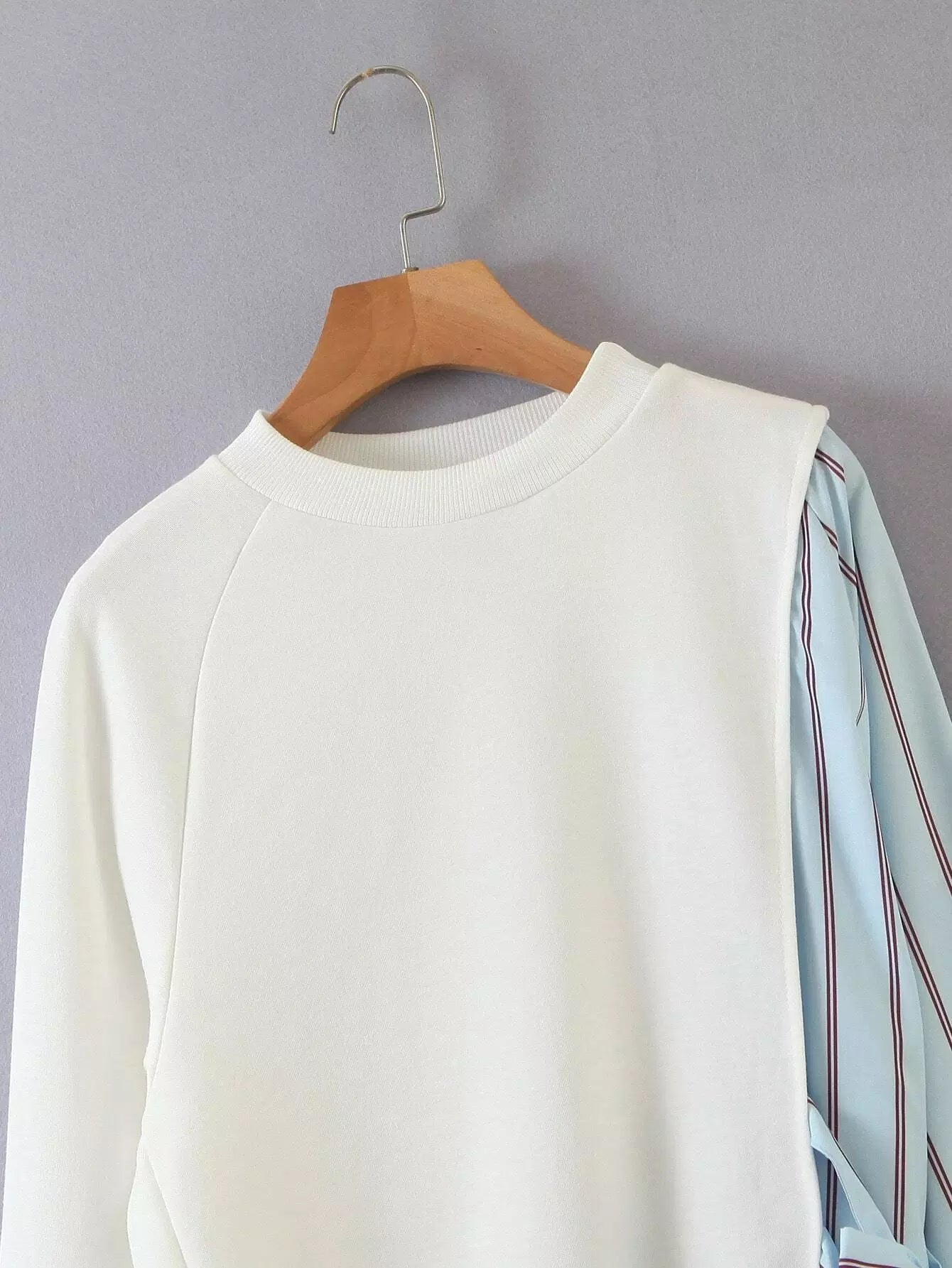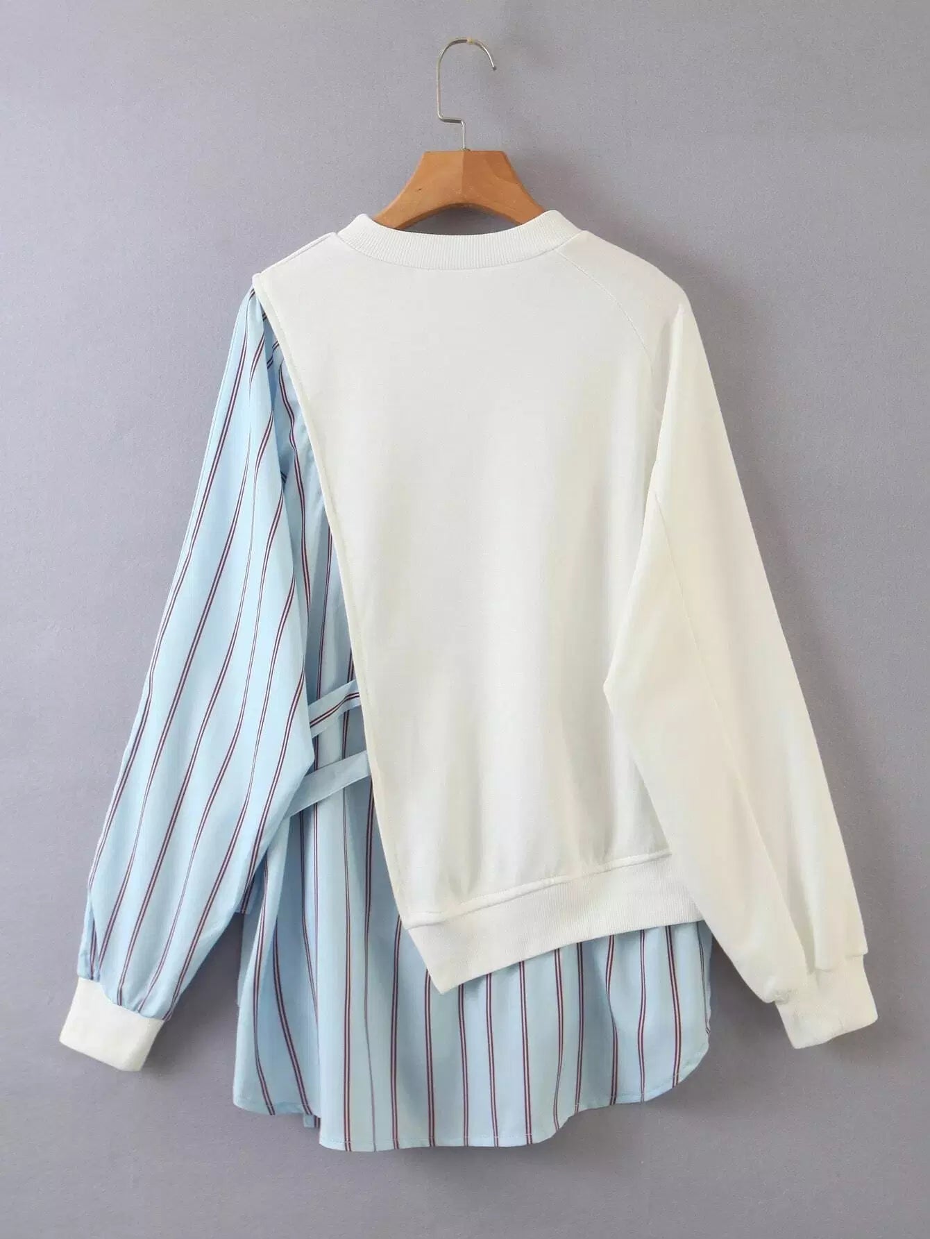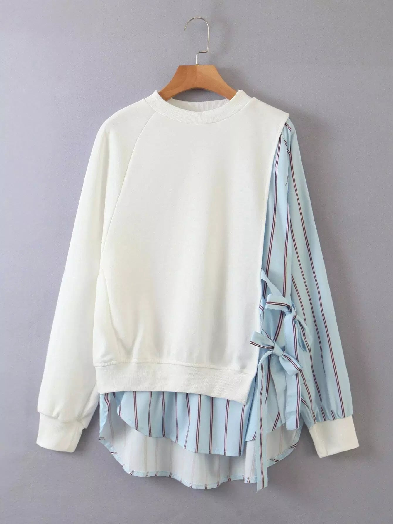 قميص سويت شيرت مخطط بلون بلون مغاير ذو عقدة جانبية مقلّمة من الجانب