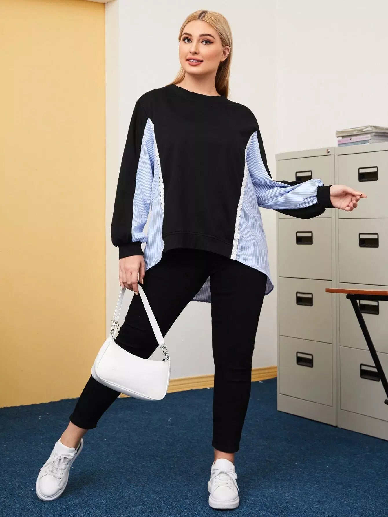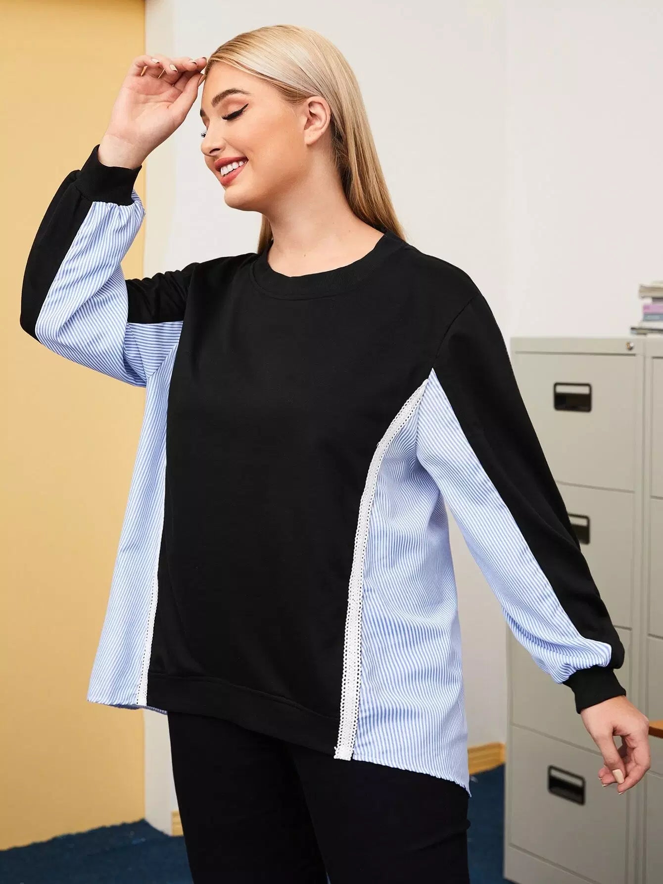 سويت شيرت مخطط بلون زائد بلون مغاير