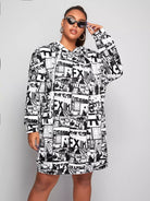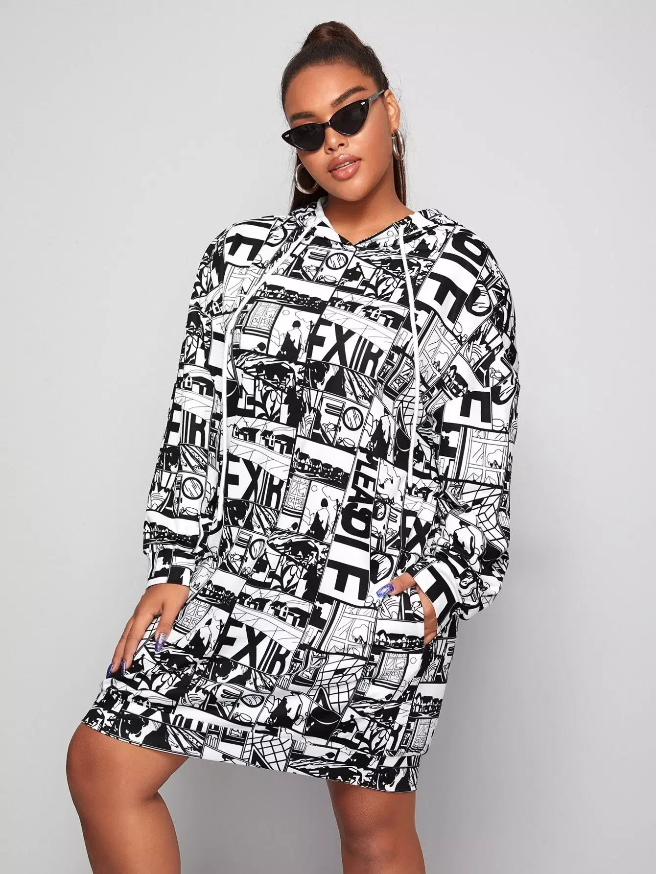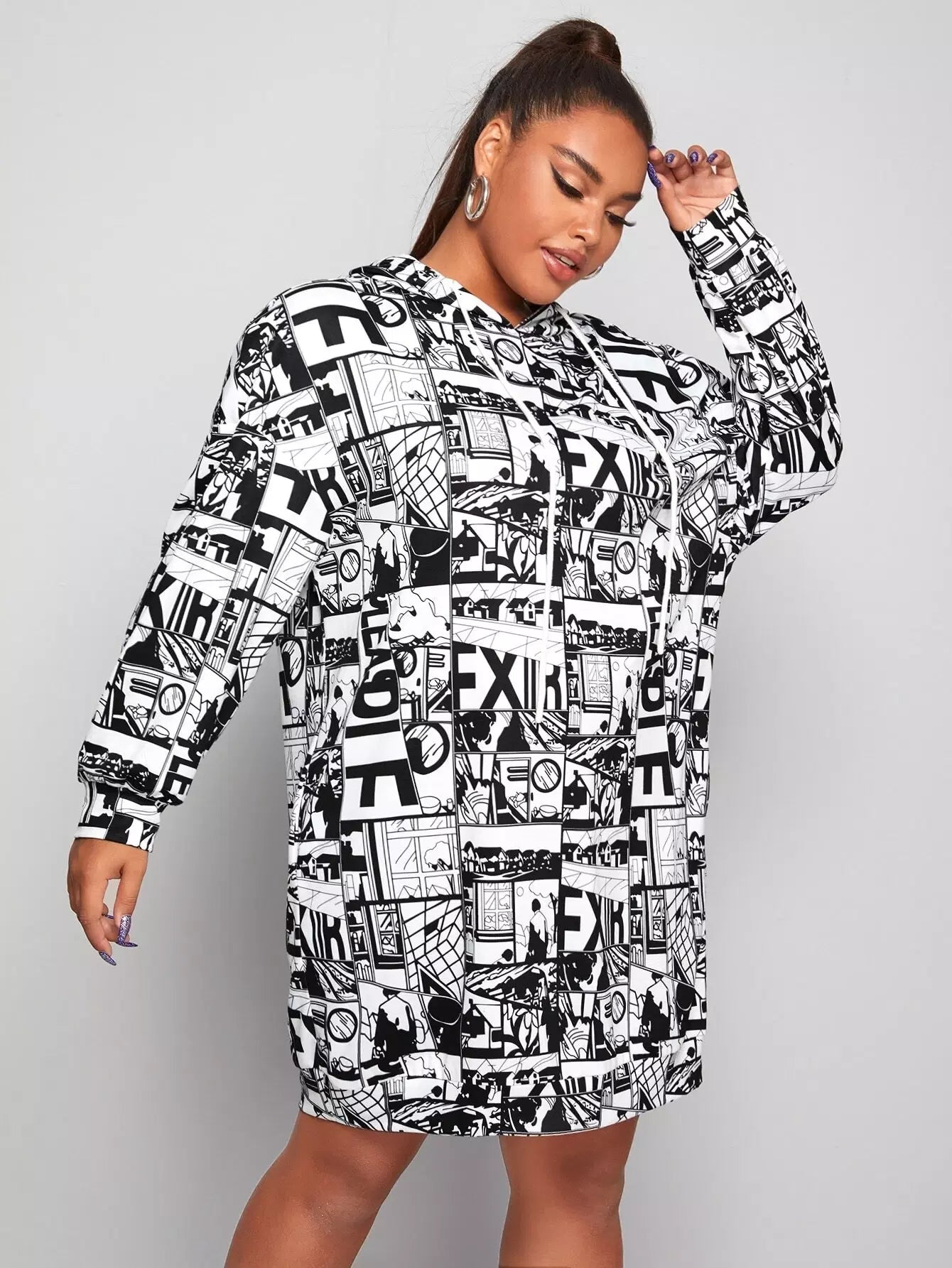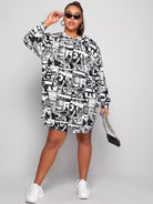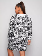 فستان سويت شيرت بطبعة فن البوب آرت بتصميم رباط زائد