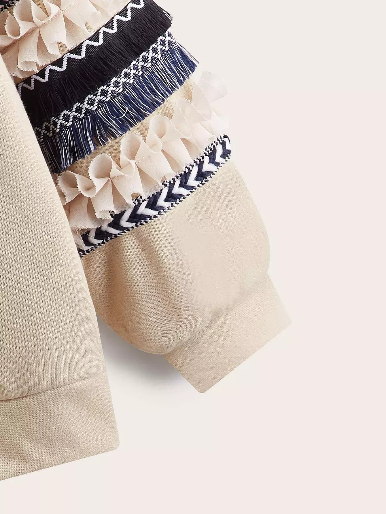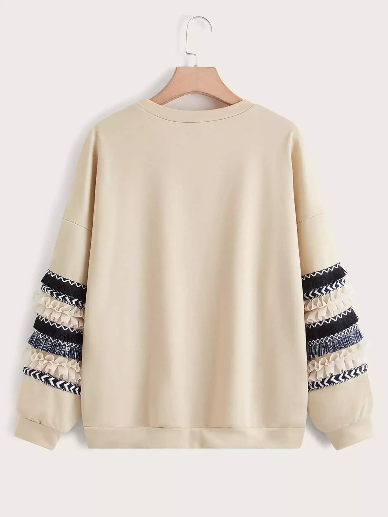 سويت شيرت بدون أكتاف منسدل الكتفين مزين بشريط جيو شراشيب