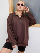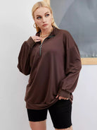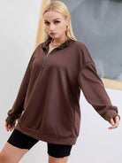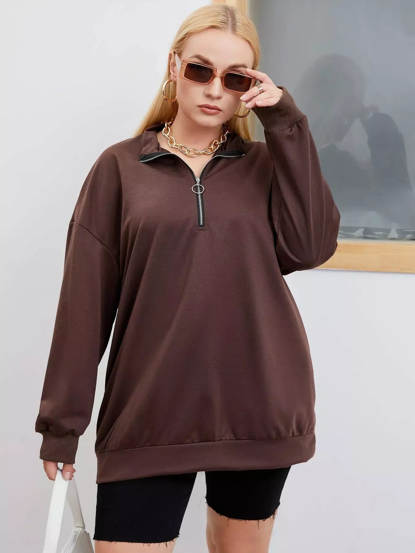 سويت شيرت بدون أكتاف منسدل الأكتاف بنصف سحّاب