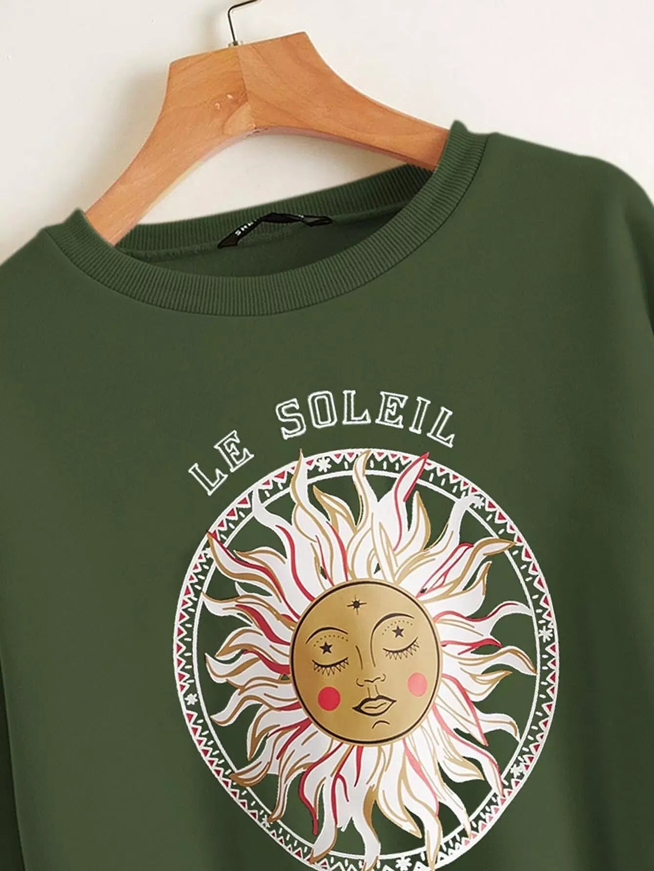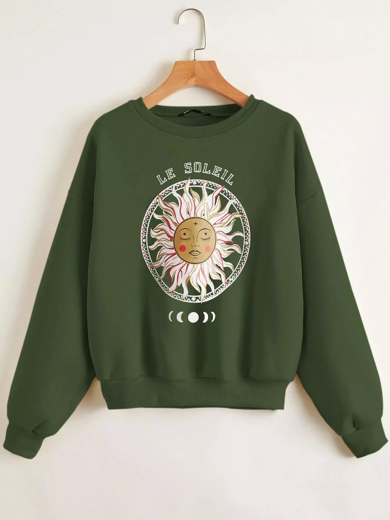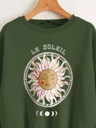 كنزة صوفية حرارية ذات أكتاف منسدلة بحروف ورسومات شمس زائد