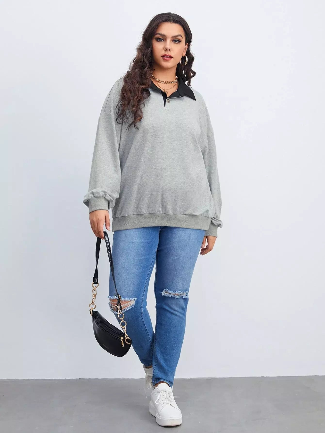 سويت شيرت بولو برقبة منسدلة الكتفين زائد