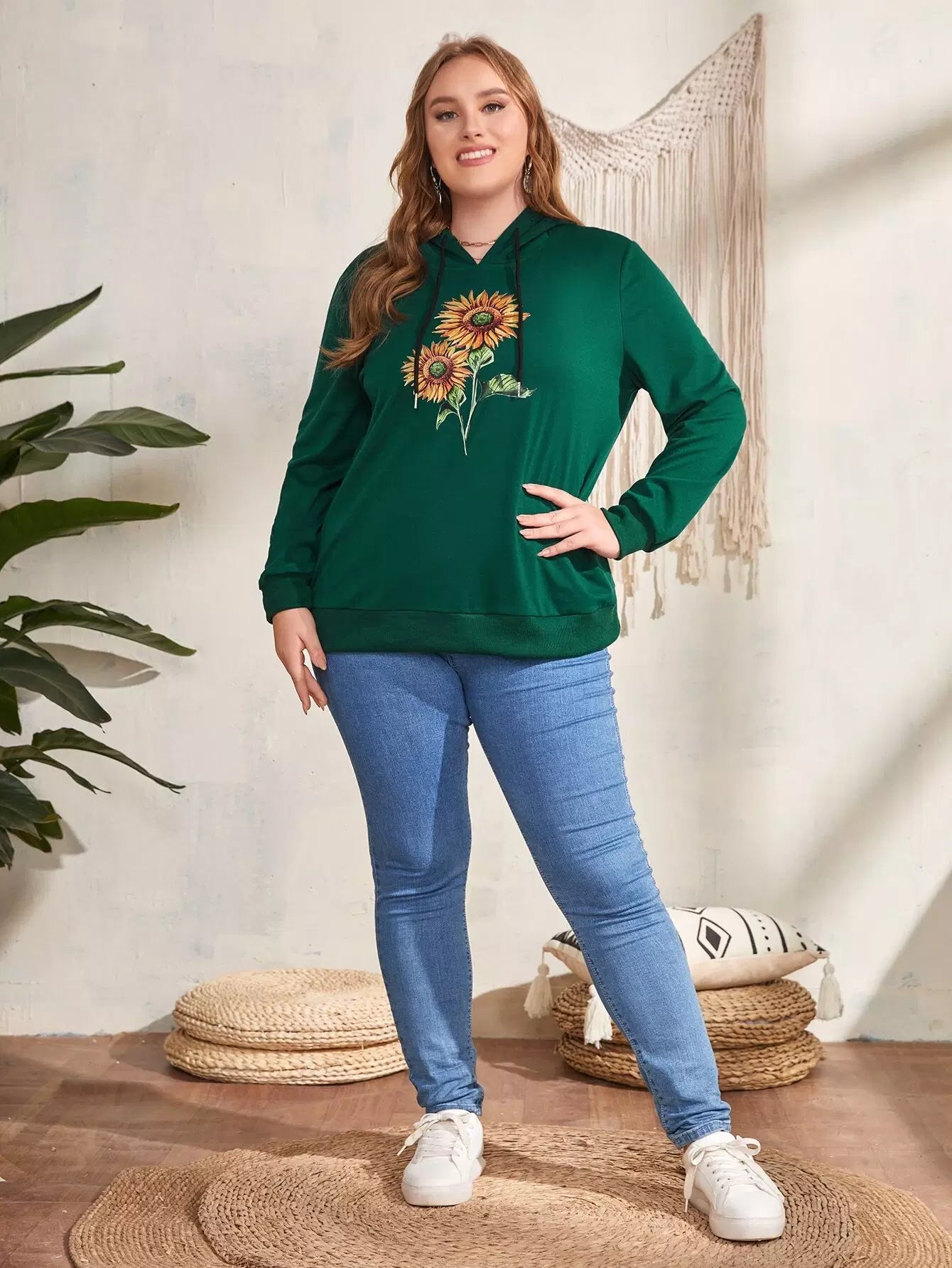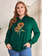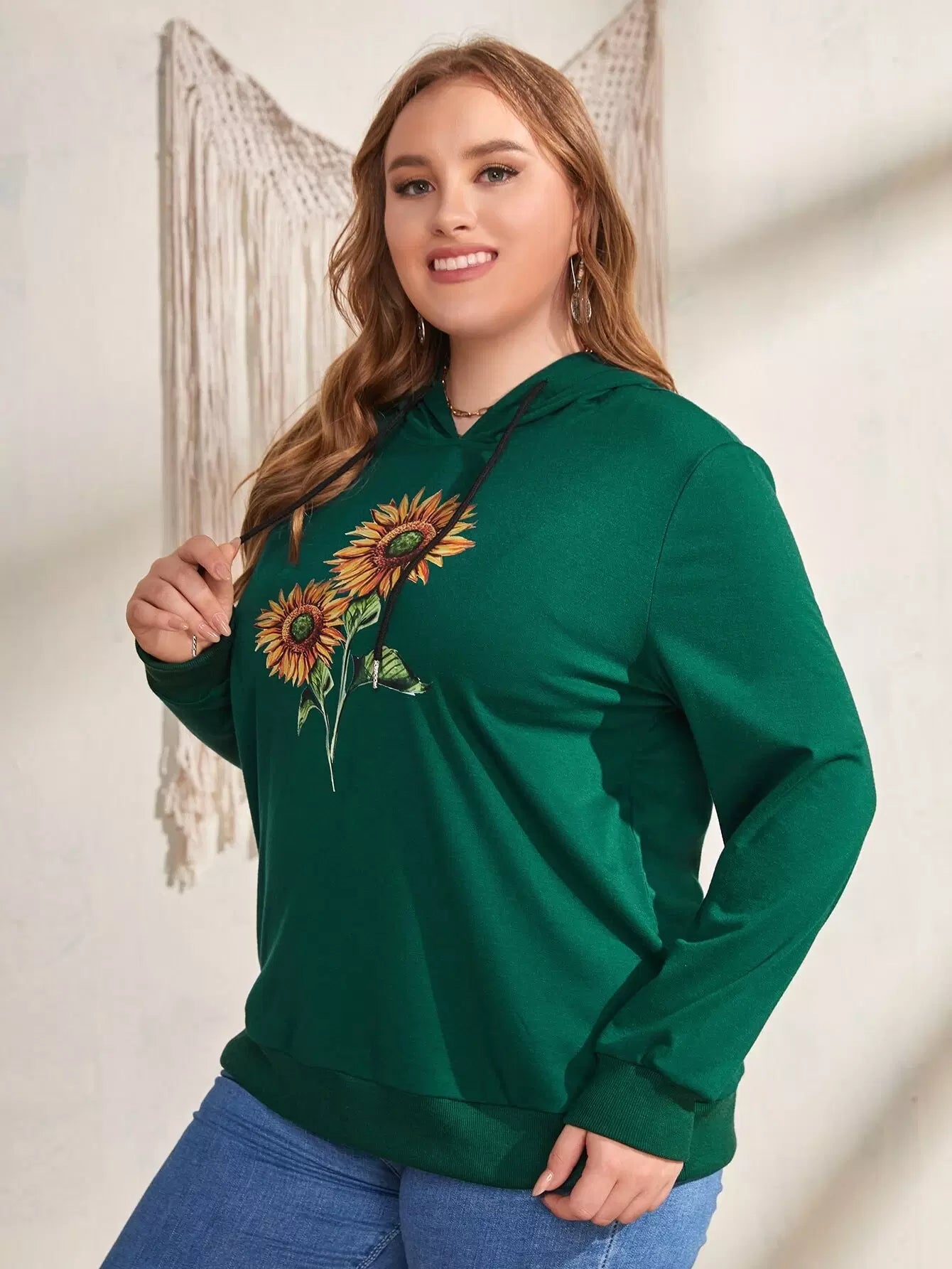 هودي بطبعة زهور مطبوع عليها رباط بغطاء للرأس زائد
