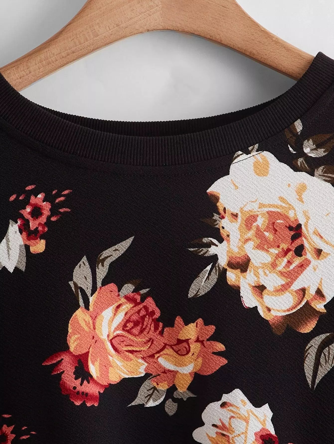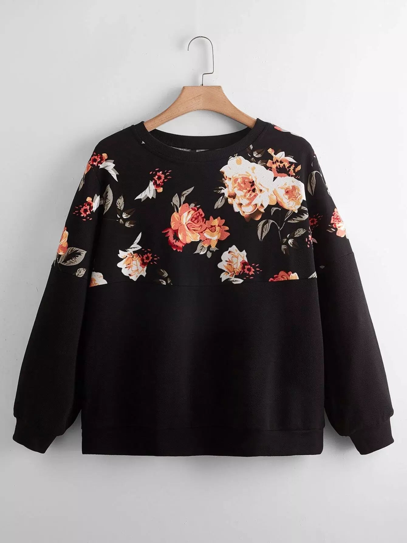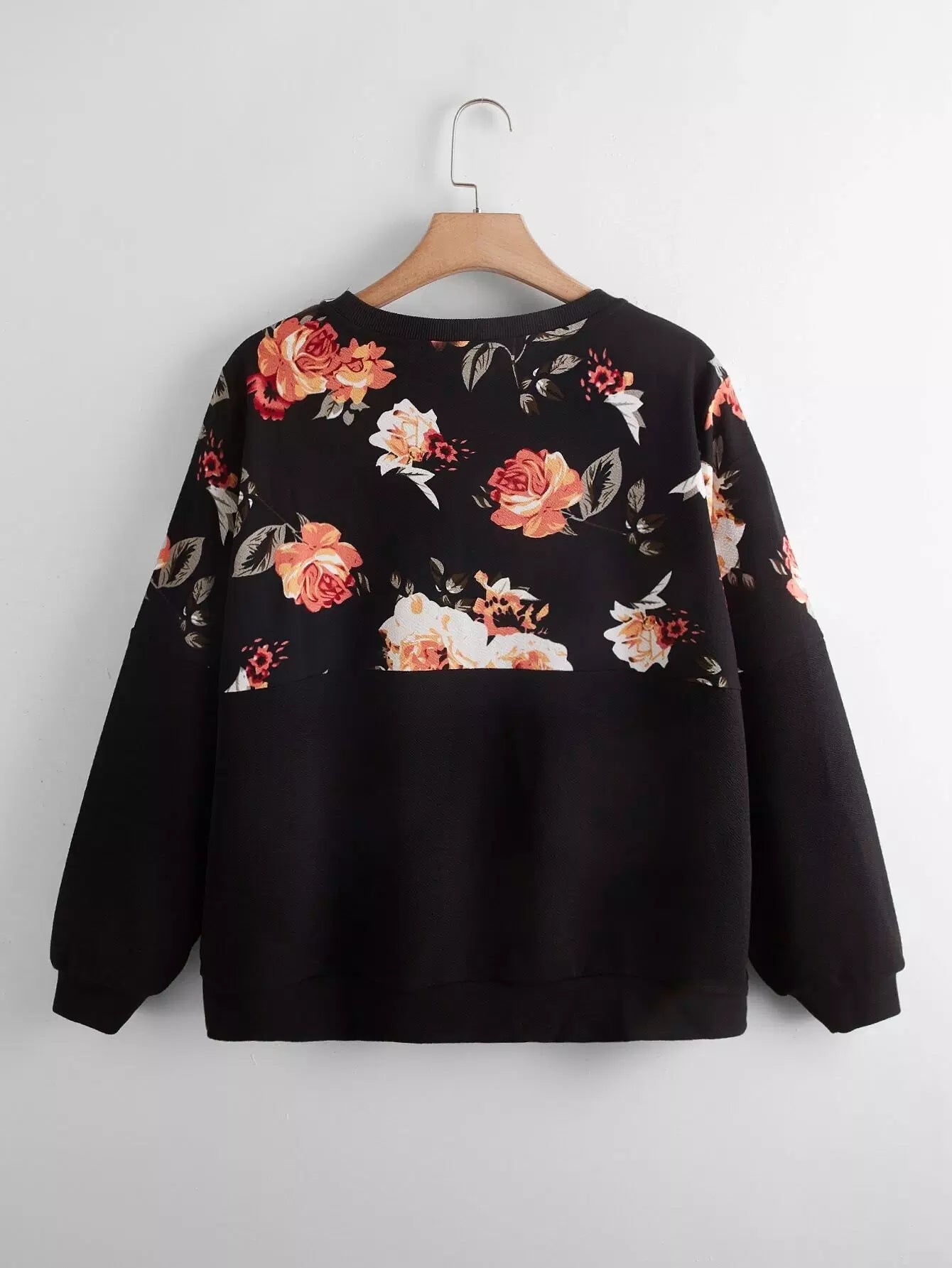 بلس سويت شيرت منسدل الكتف مطبوع عليه زهور بطبعة زائد