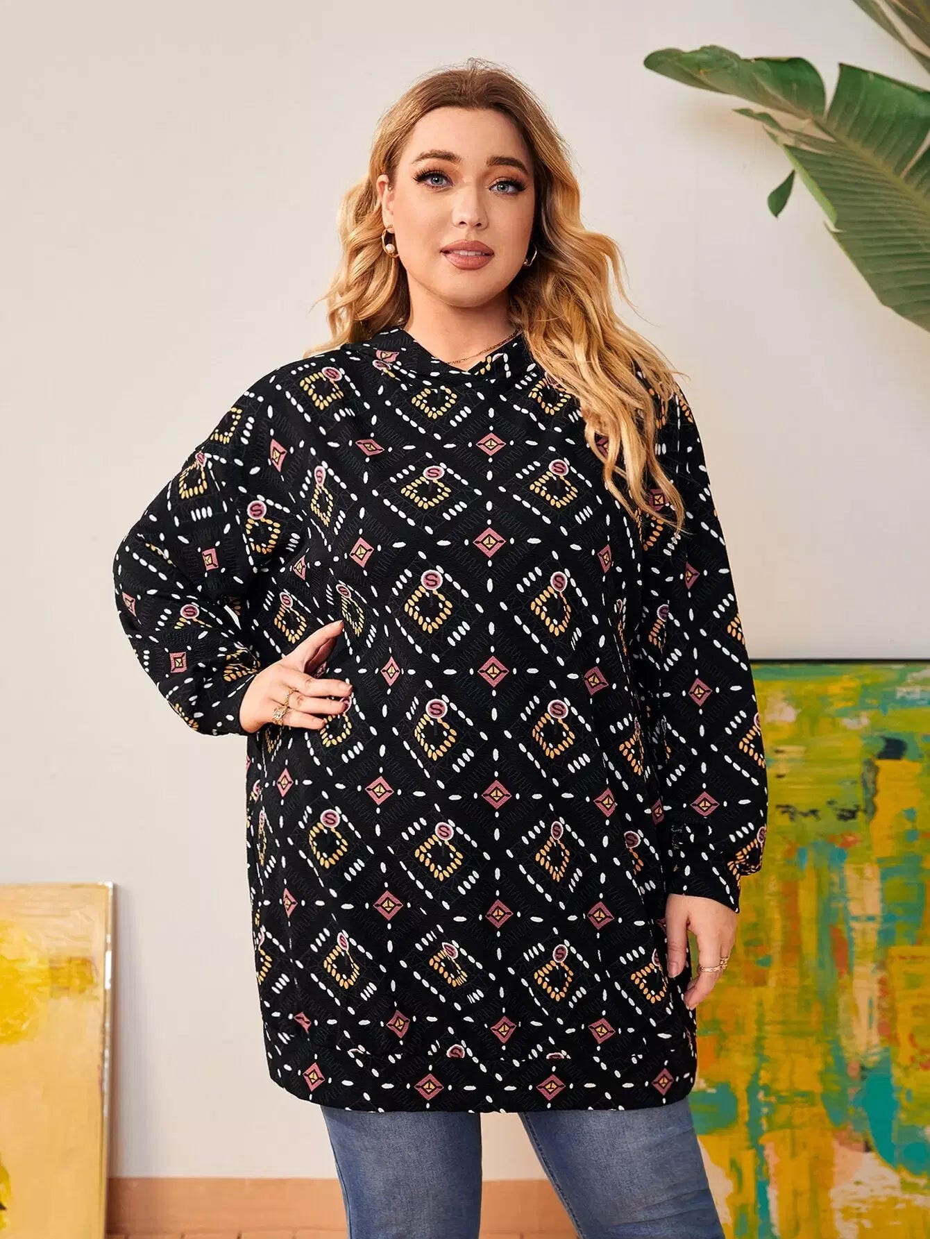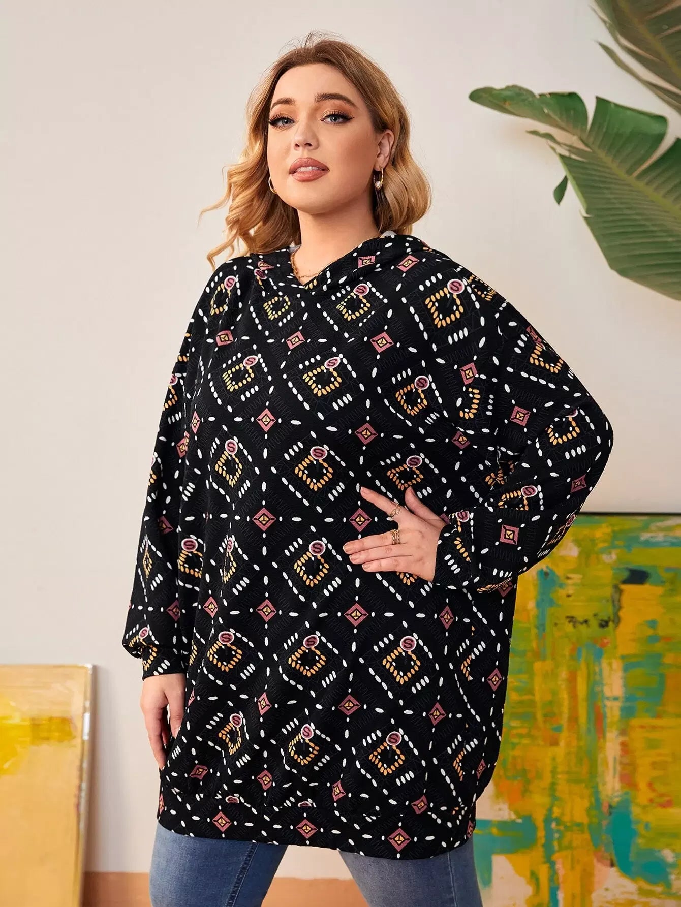 هودي بأكمام جيو ورسومات جرافيك بأكمام باتوينغ بلس