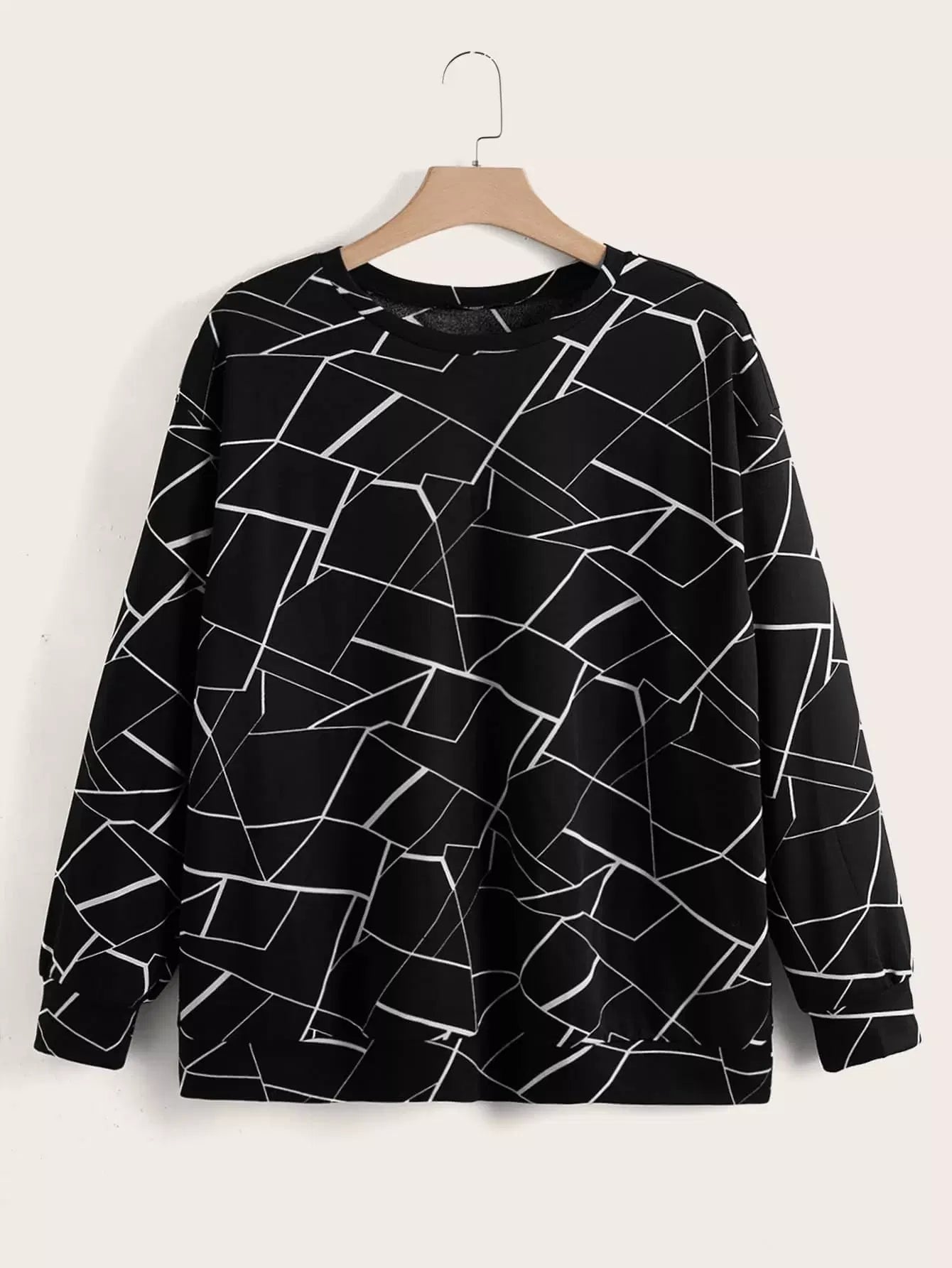 بلس سويت شيرت منسدل الكتف بطبعة جيو
