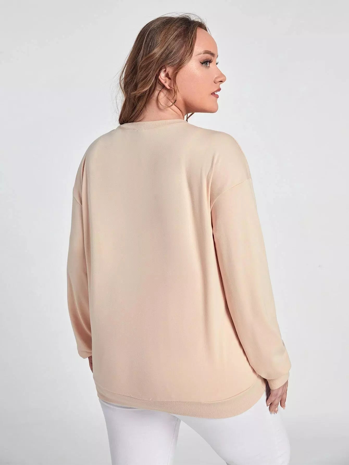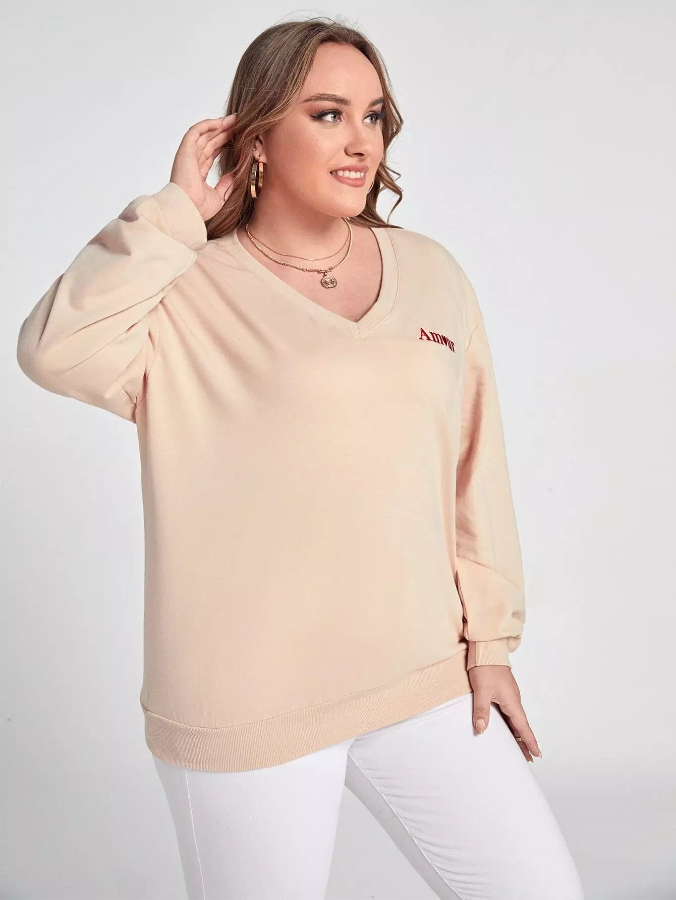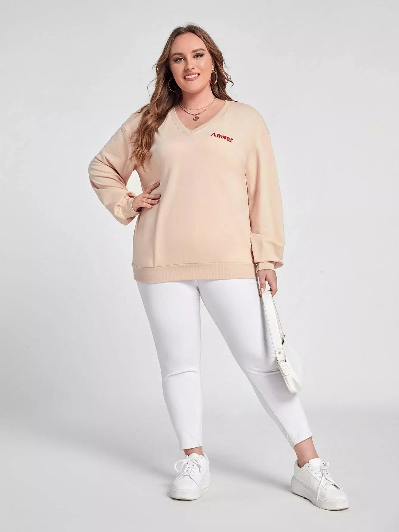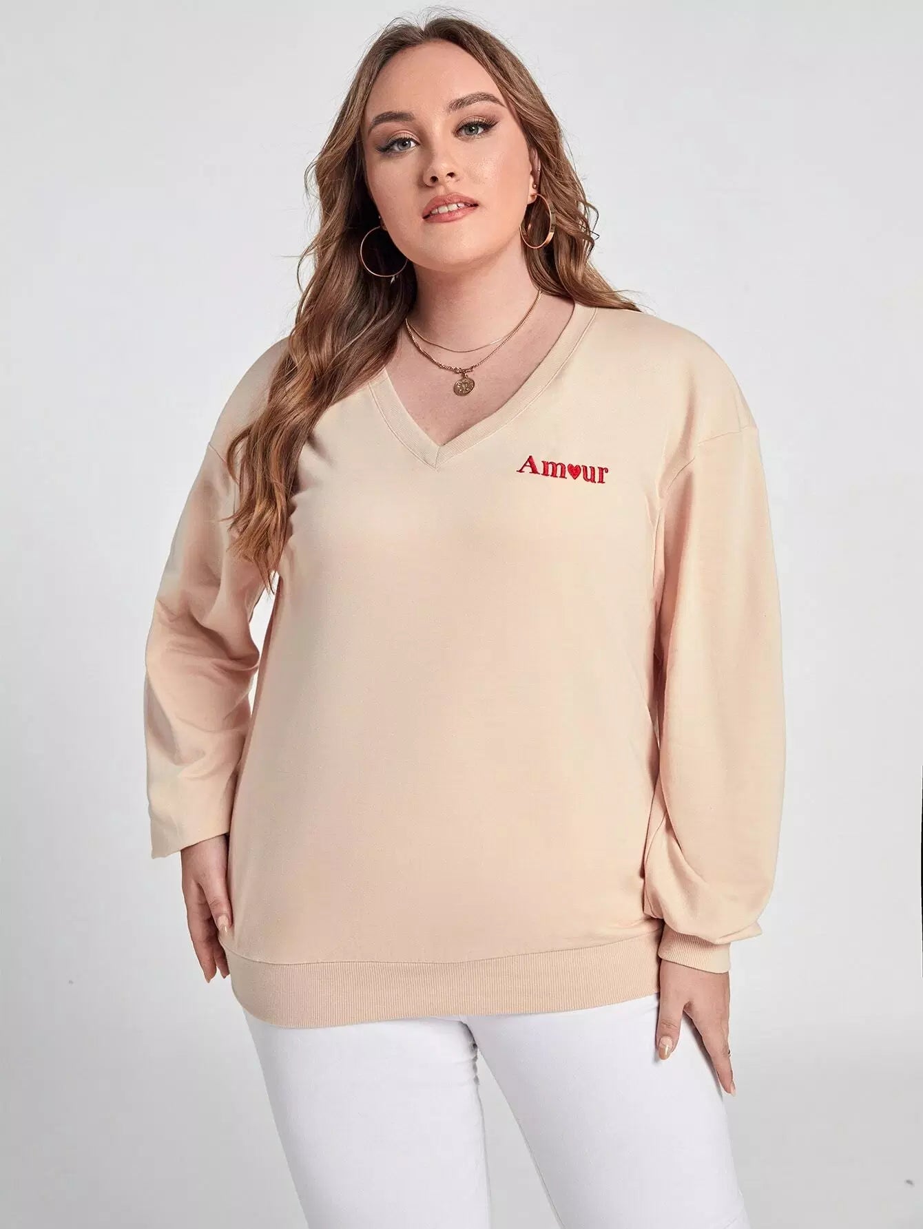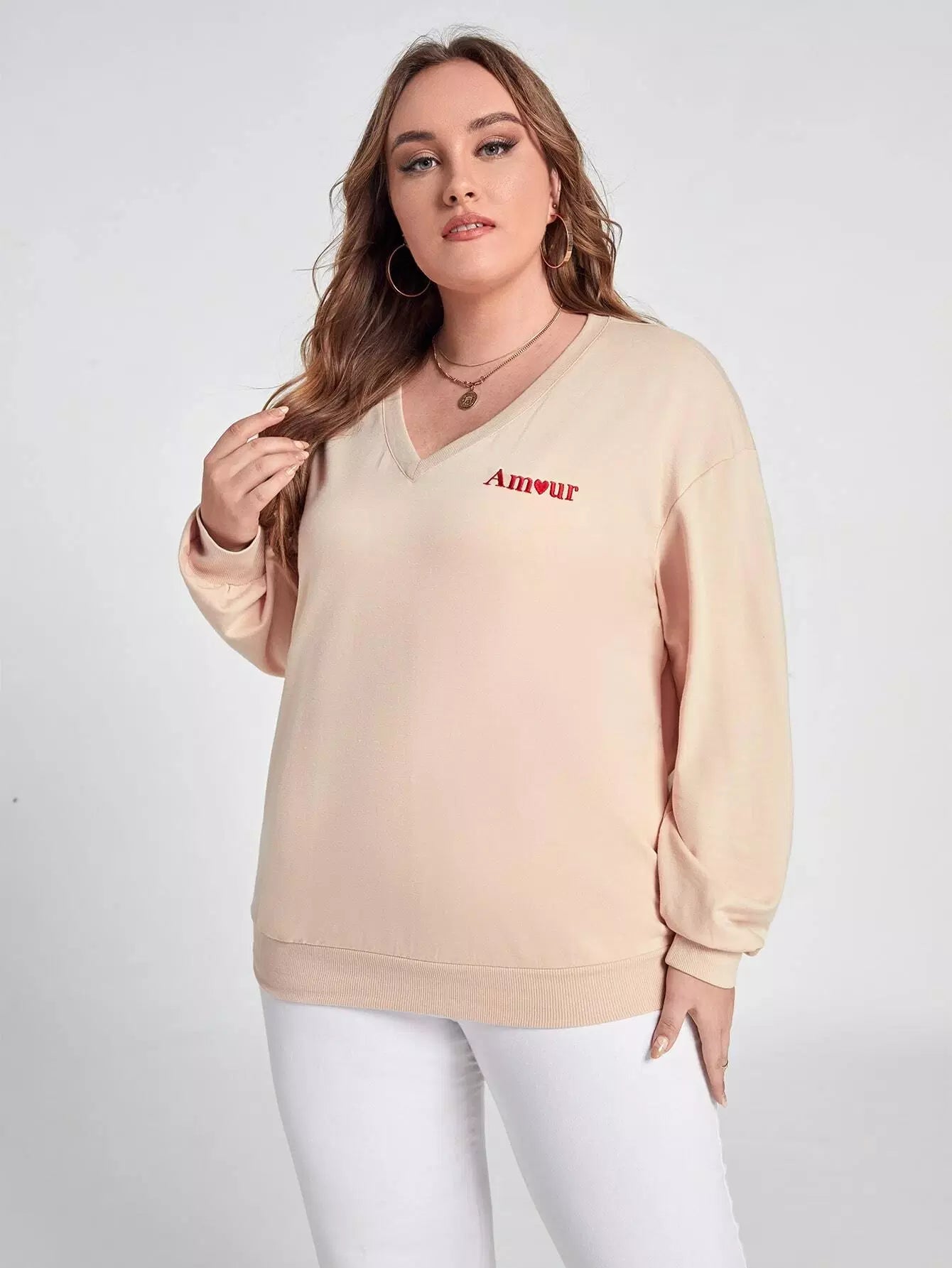 كنزة صوفية منسدلة على الكتف مطرزة بتطريز قلب وحروف