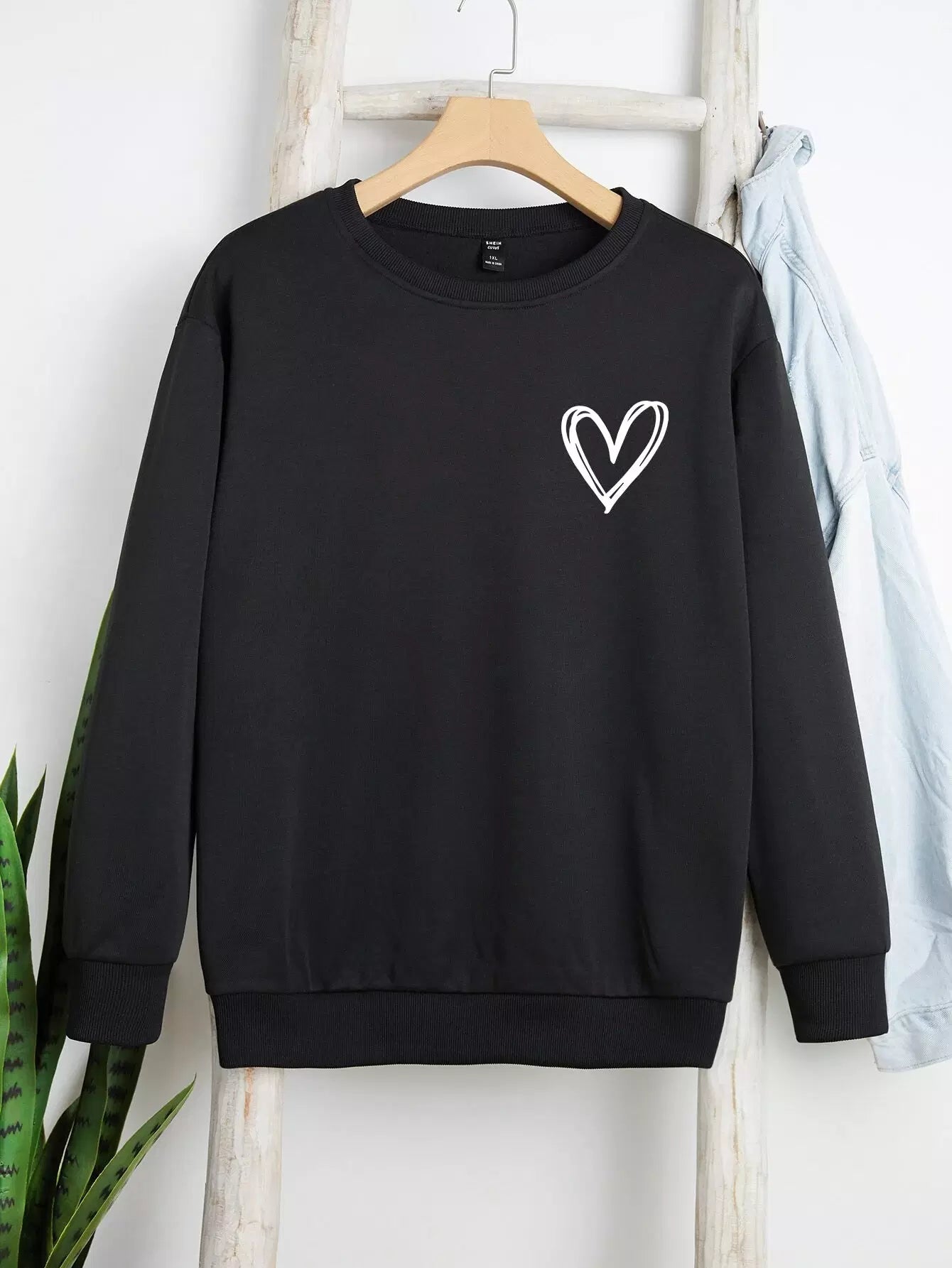 بلس سويت شيرت بطبعة قلب مطبوع حراري مبطن بالقلب