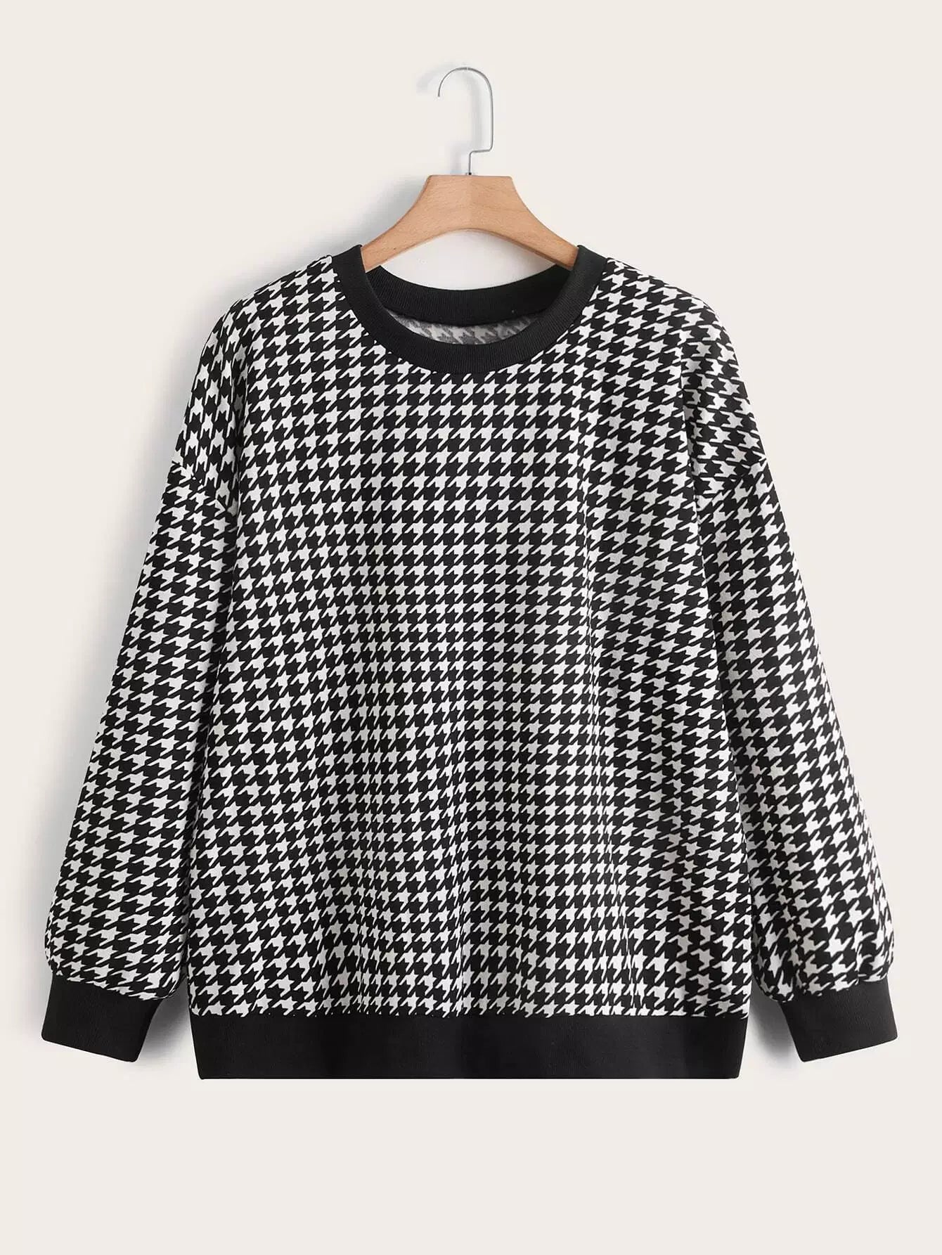 كنزة صوفية منسدلة الكتفين مطبوع عليها طبعة هاوندستوث بلس