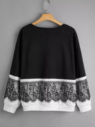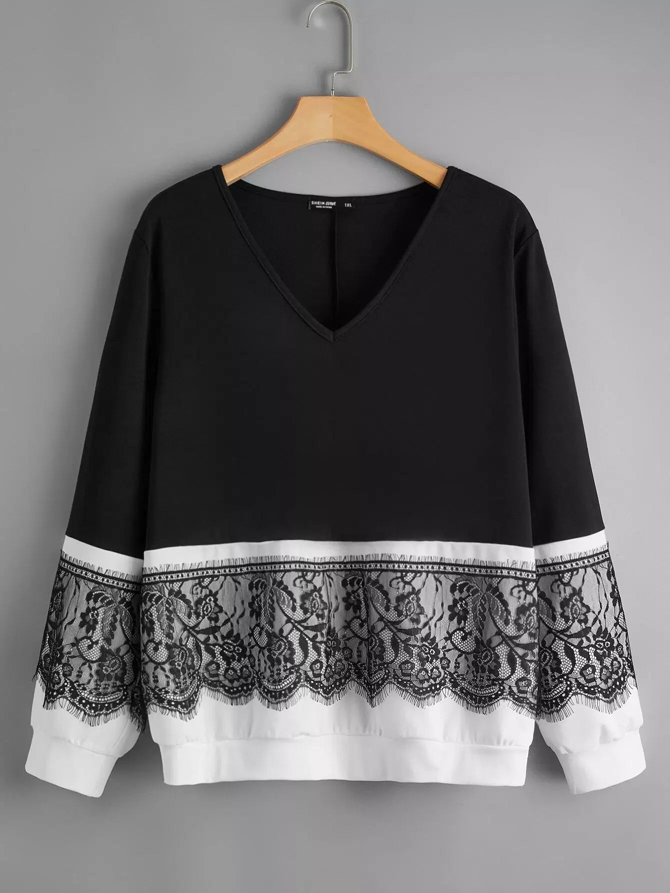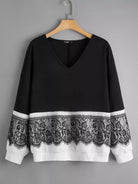 سويت شيرت برقبة على شكل حرف V من الدانتيل بلس