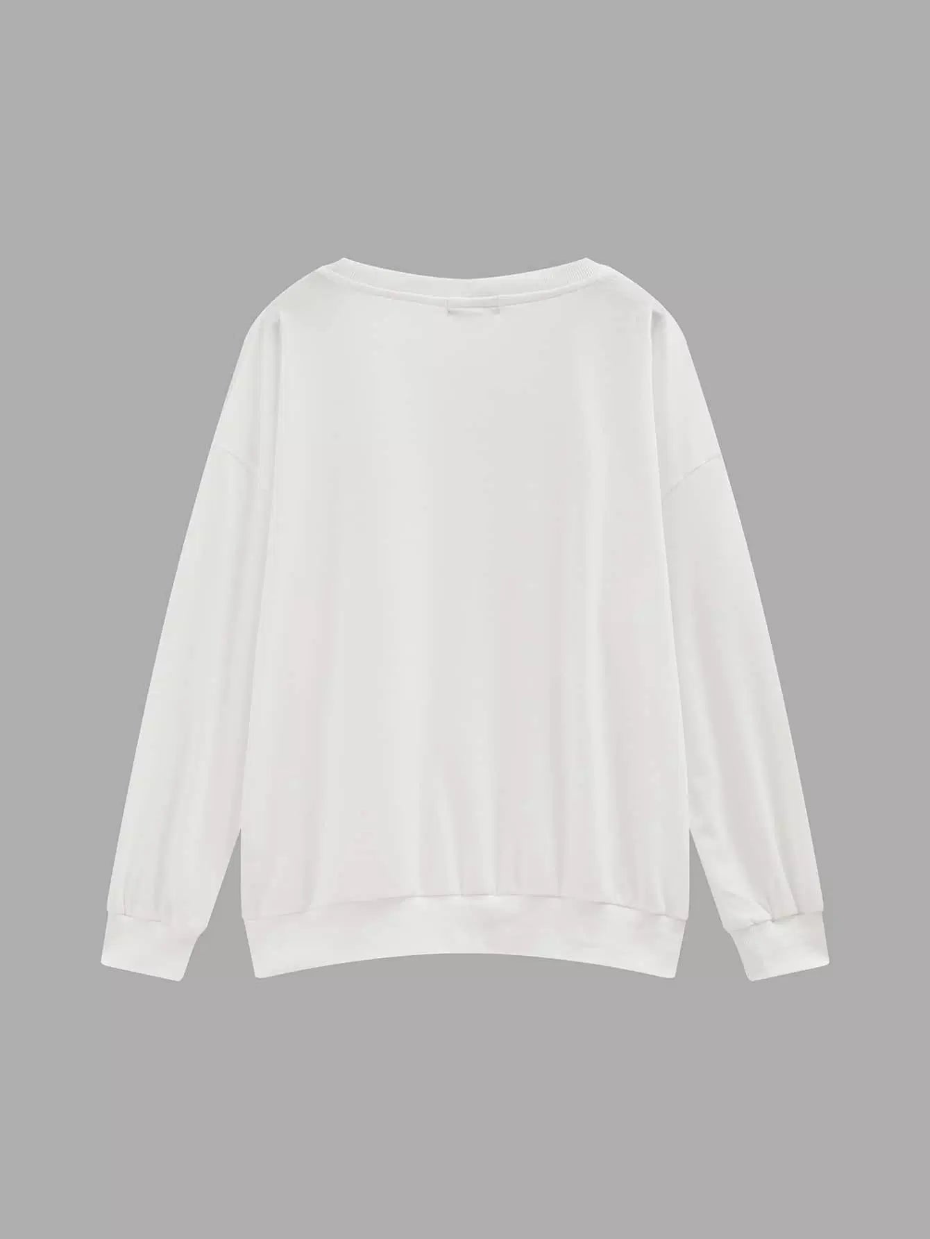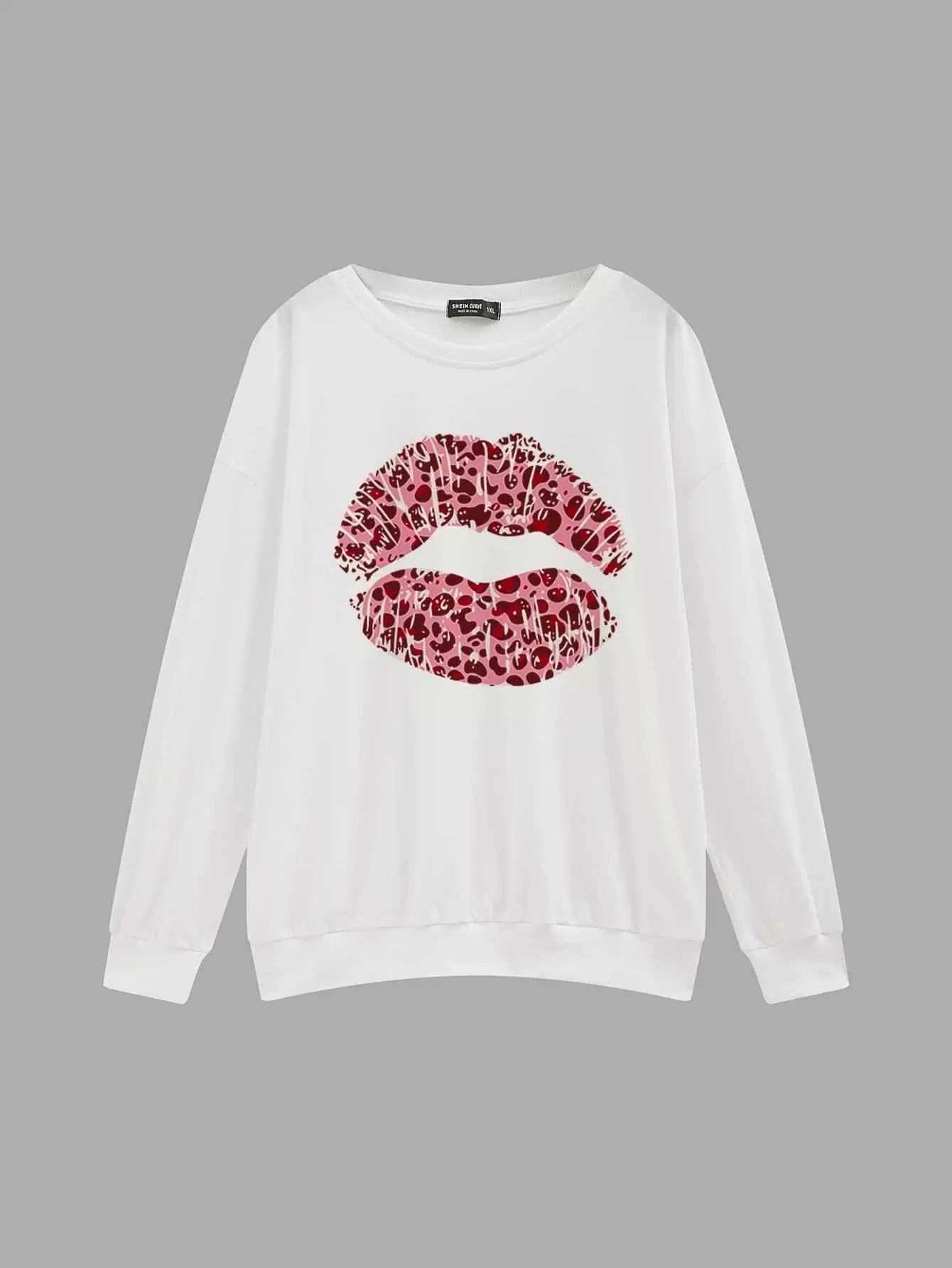 كنزة صوفية منسدلة على الكتف مطبوع عليها جلد النمر والشفاه