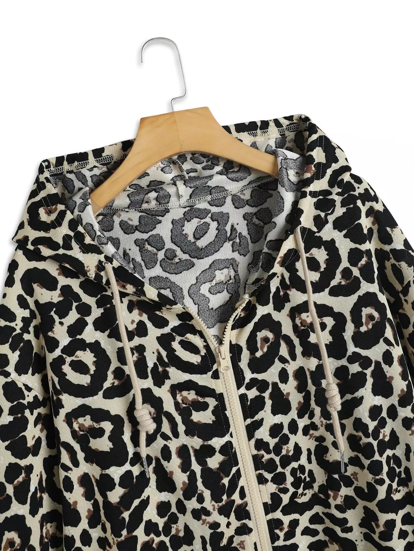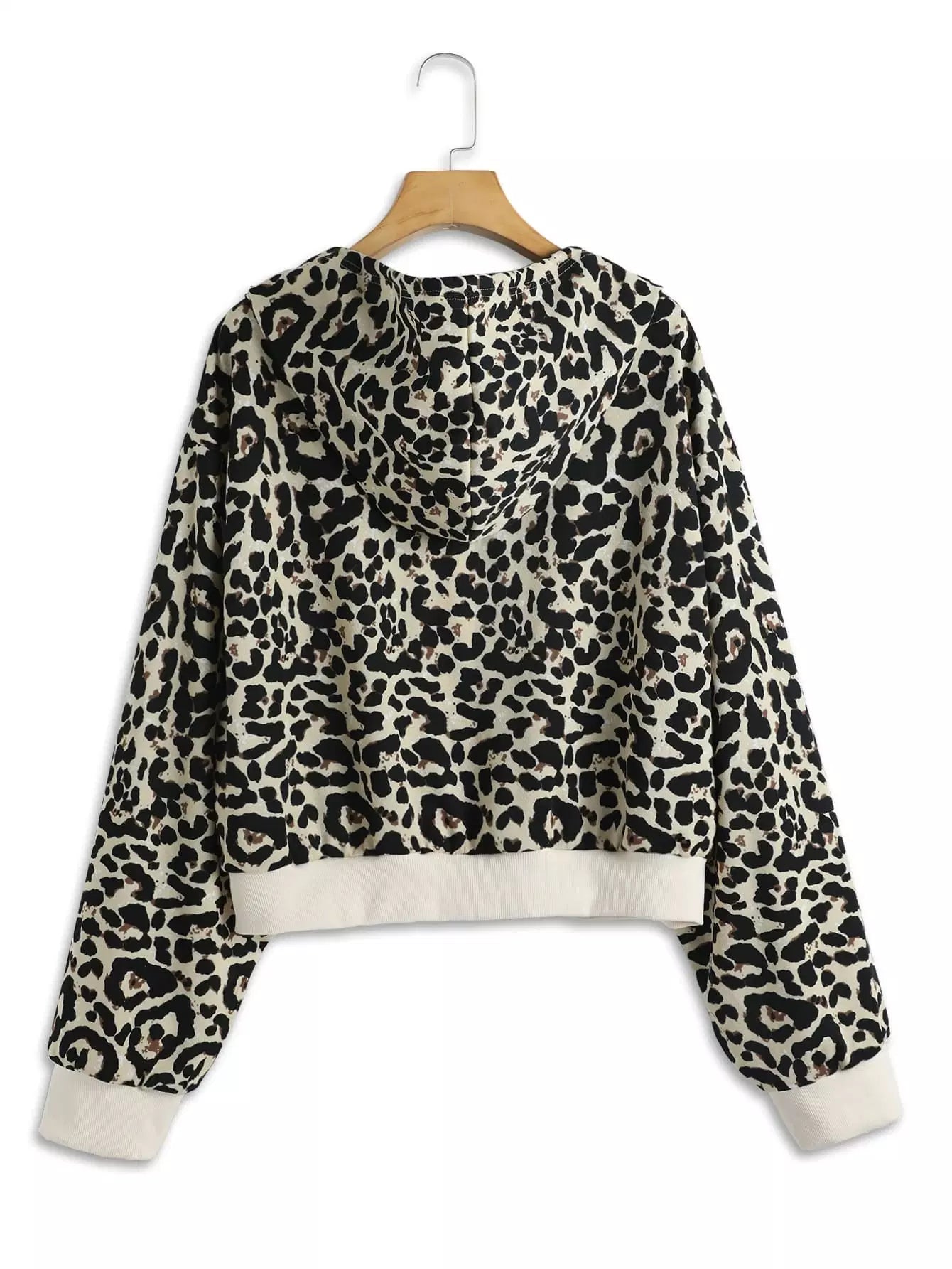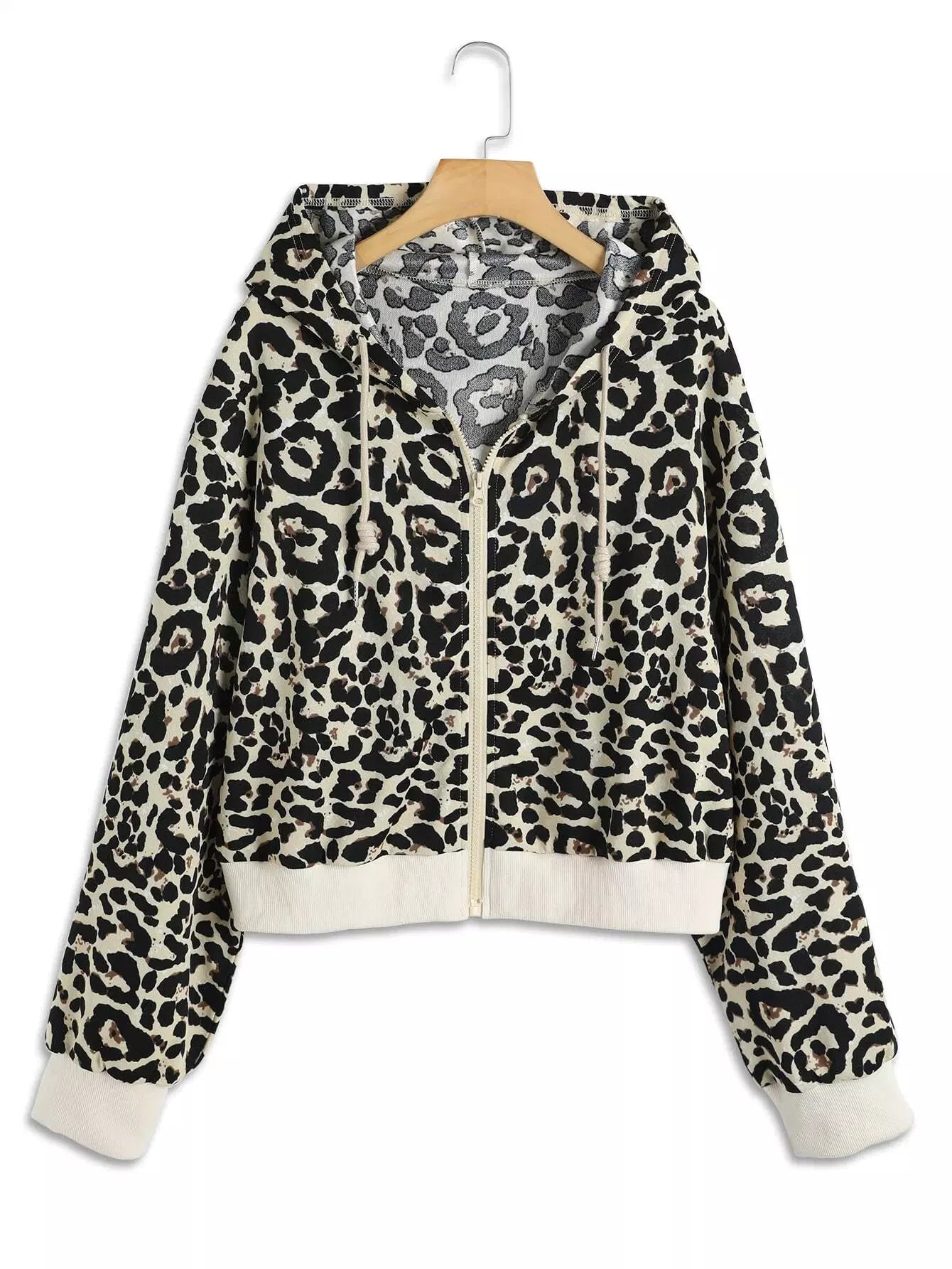 هودي بقبعة بقبعة منسدلة على الكتف بطبعة جلد الفهد