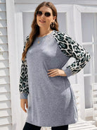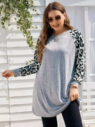 سويت شيرت بأكمام راجلان بنقشة جلد الفهد