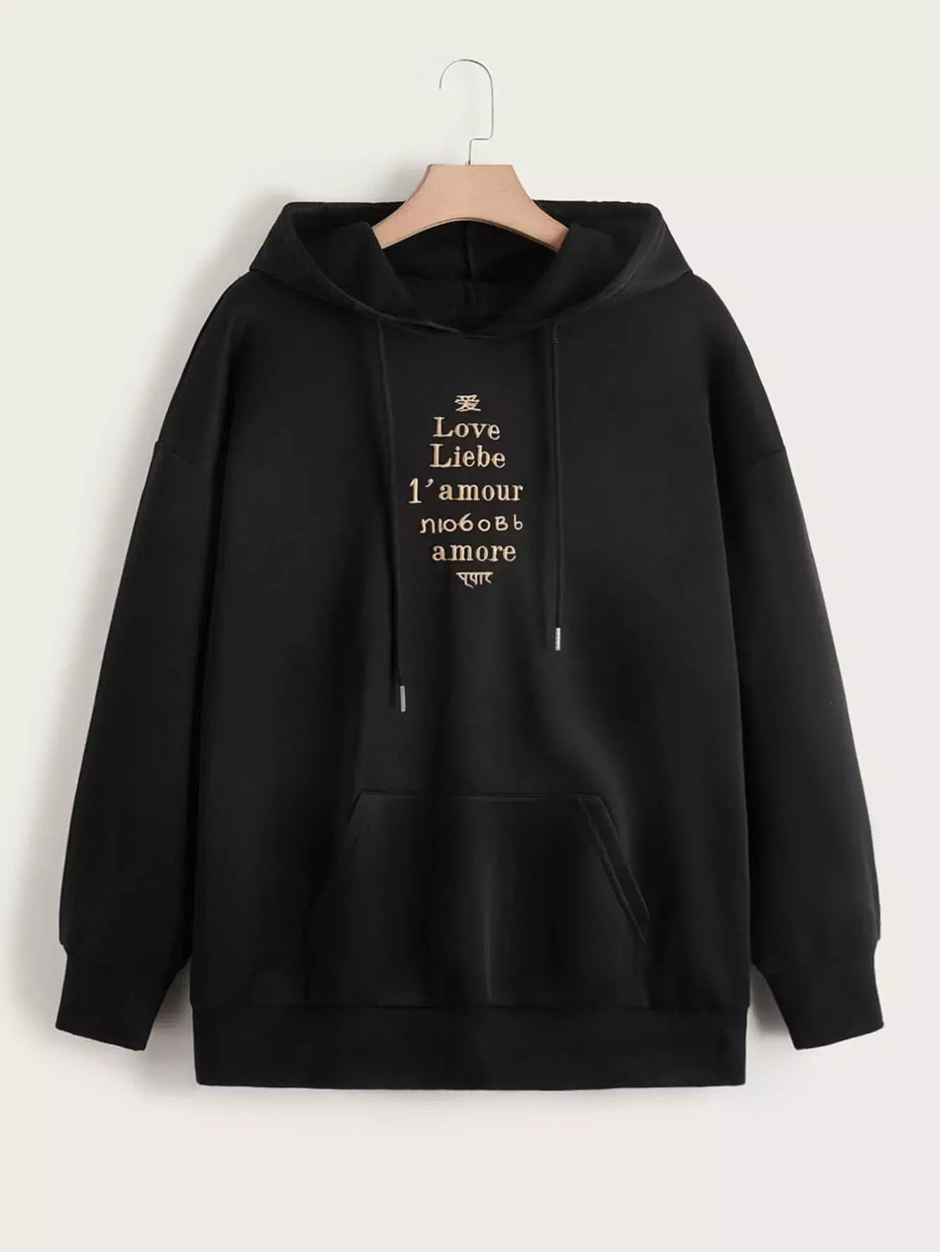 هودي حراري مزين بتطريز حروف كنغر بجيب برباط حراري