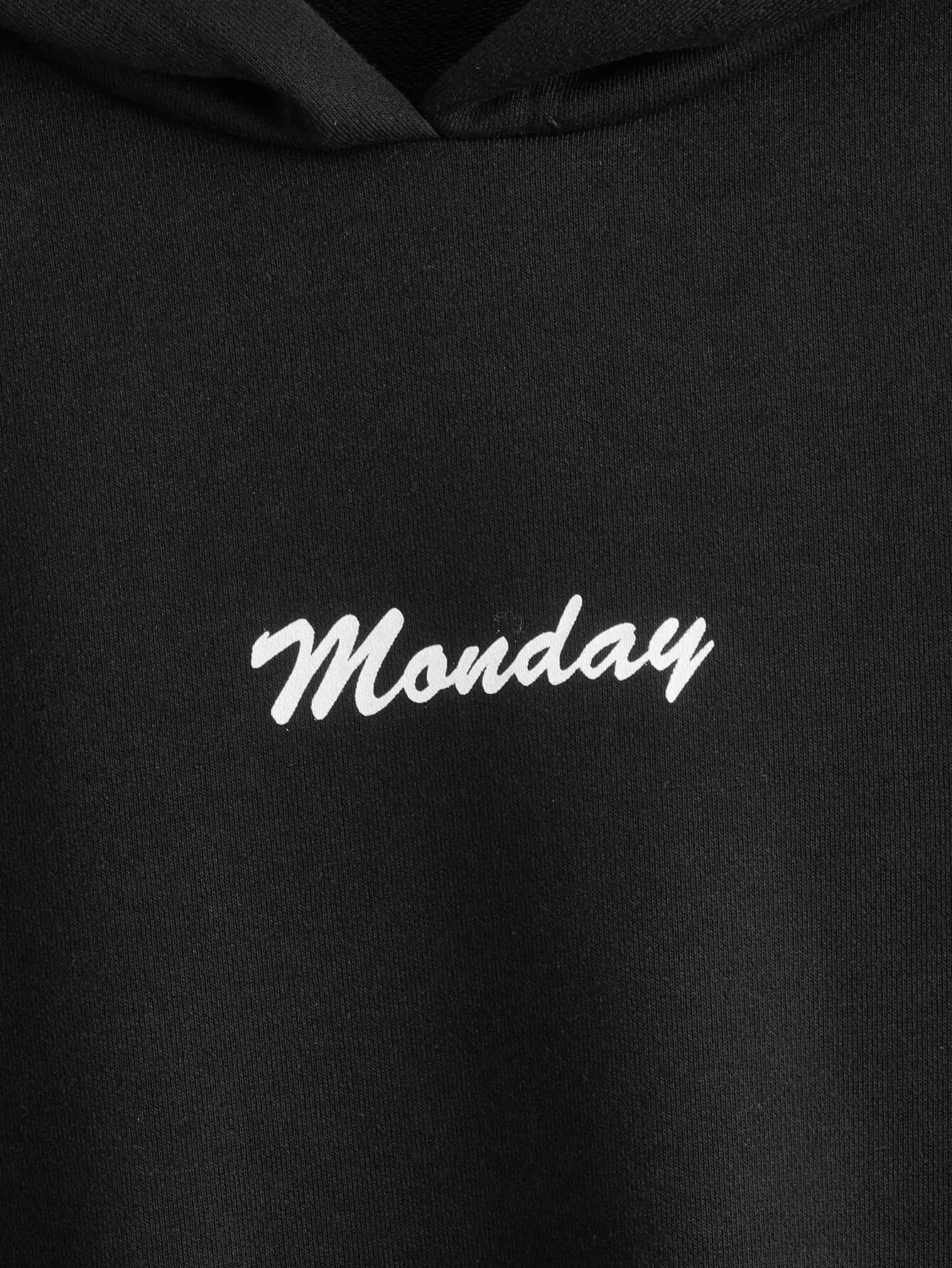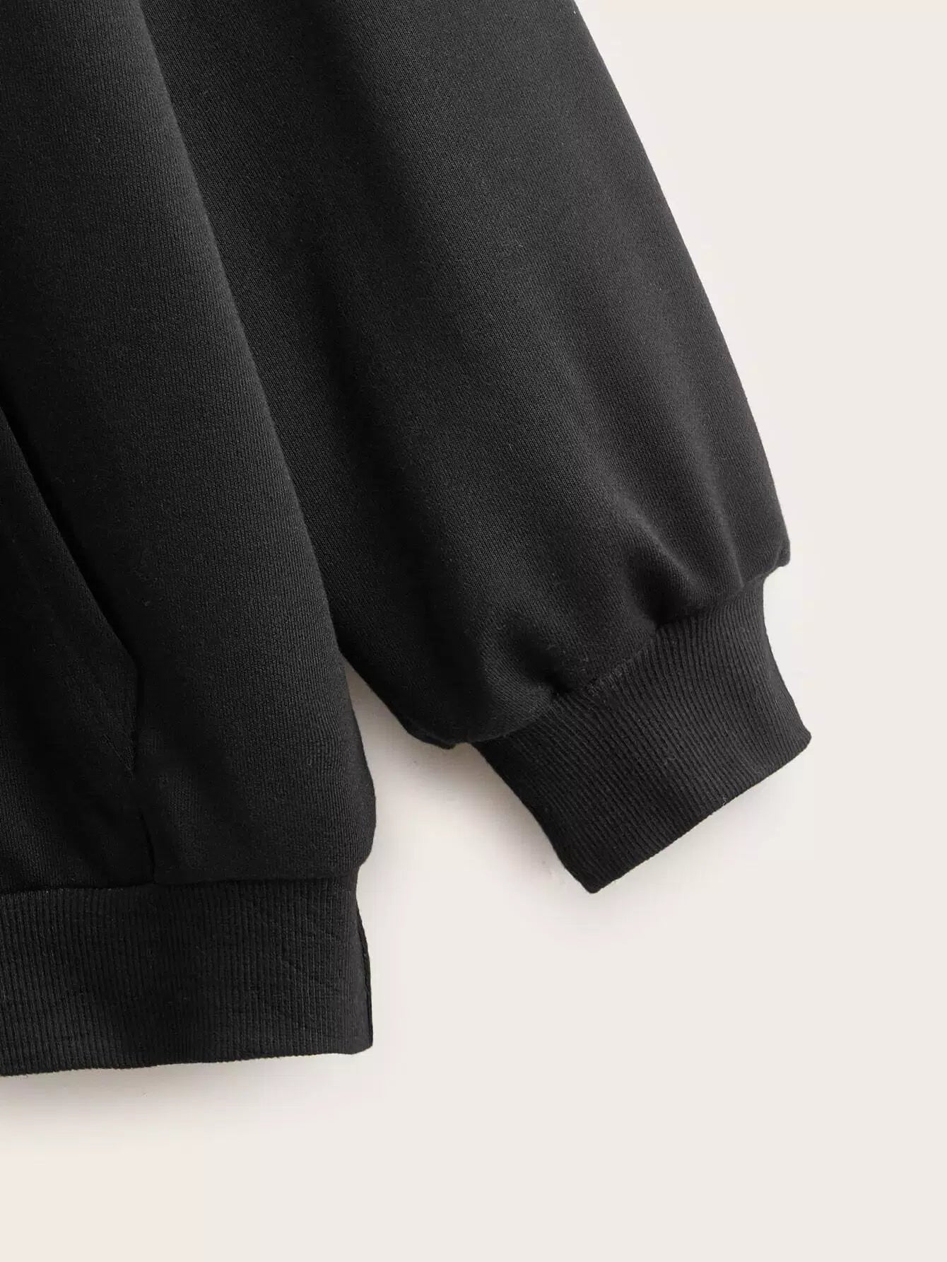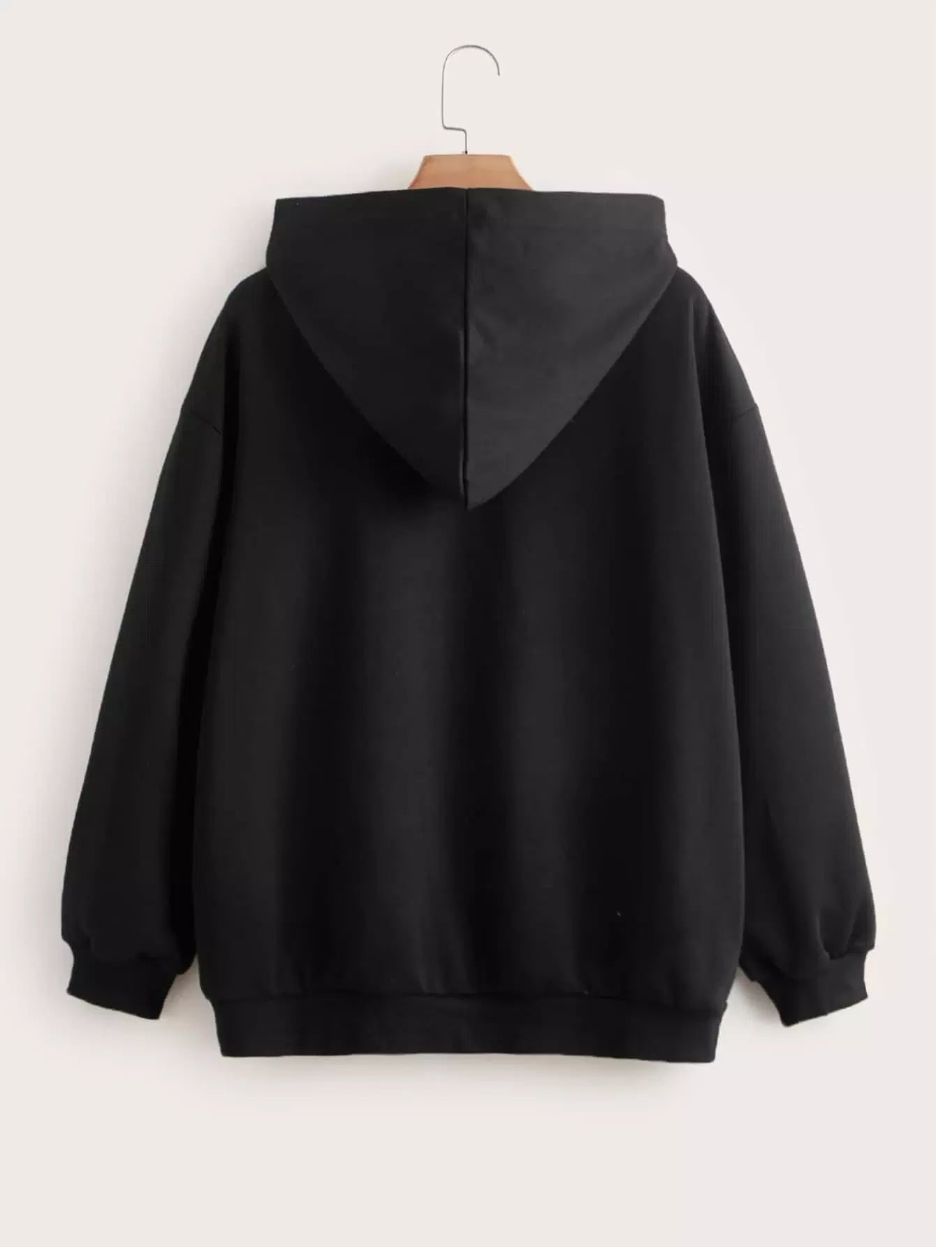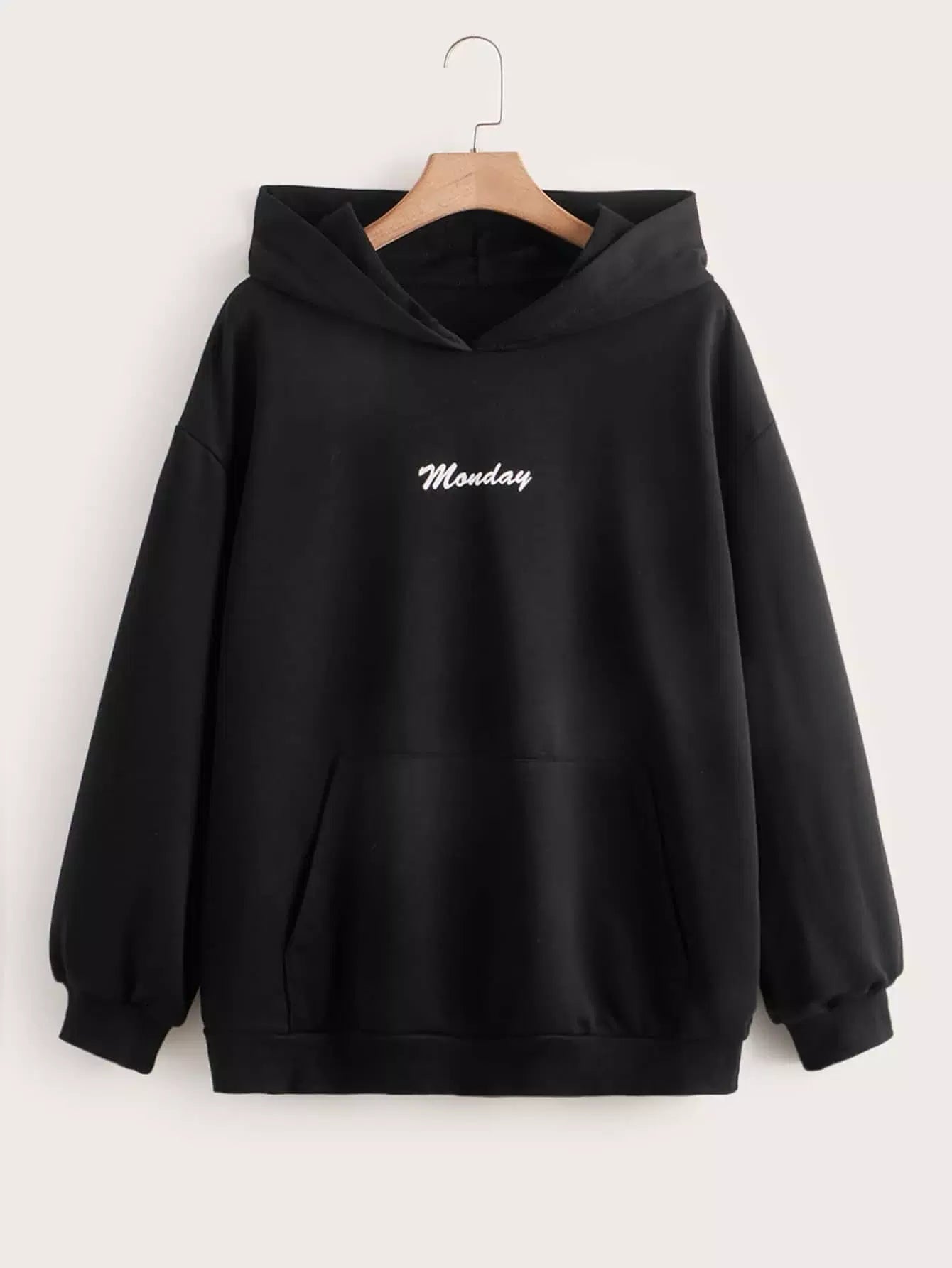 هودي بقبعة بجيب كانجارو برسومات حروف زائد