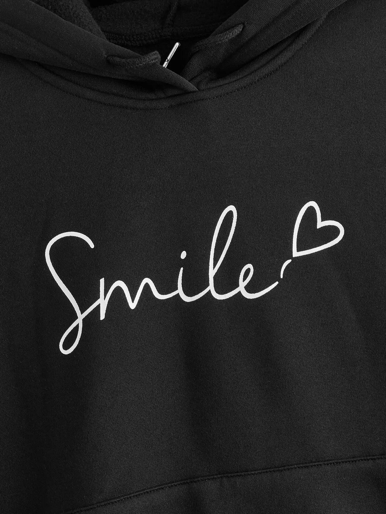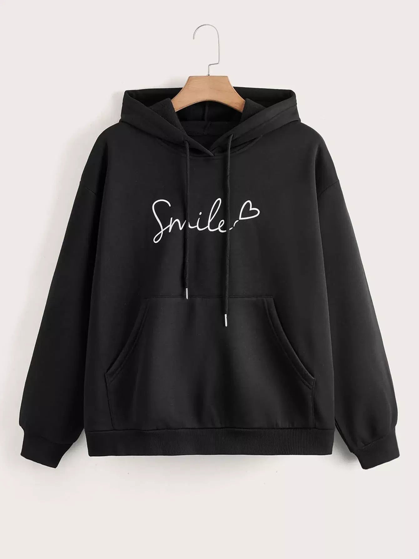 هودي بطبعة حروف وقلب مطبوع عليها حروف وقلب بجيب كنغرو برباط ذي تفاصيل حرارية مبطنة