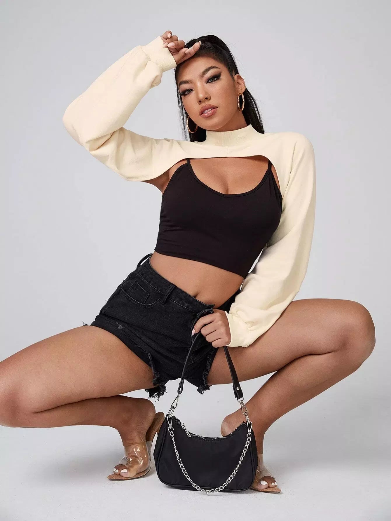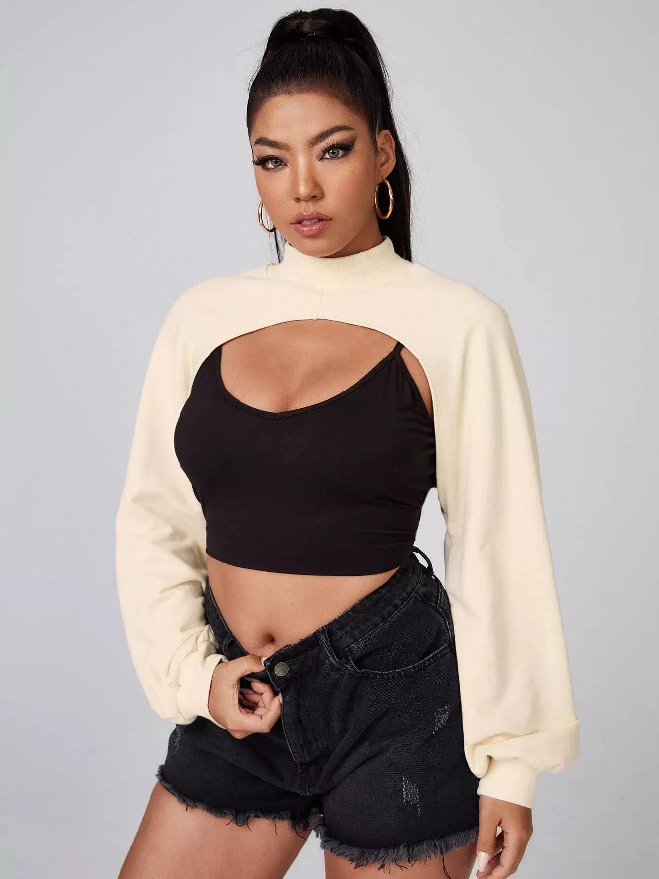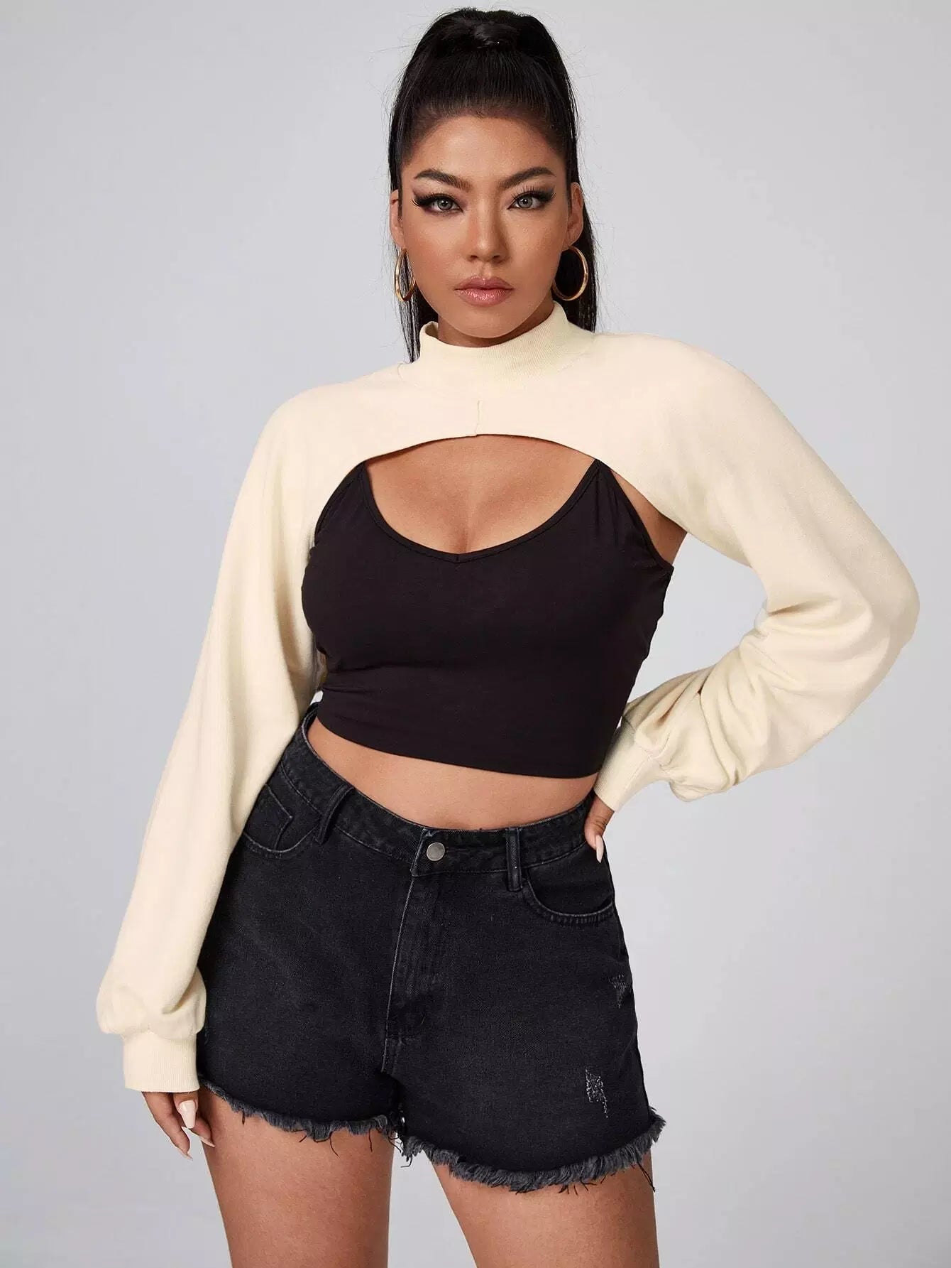 كنزة صوفية برقبة سوبر بياقة زائد بدون قميص قصير