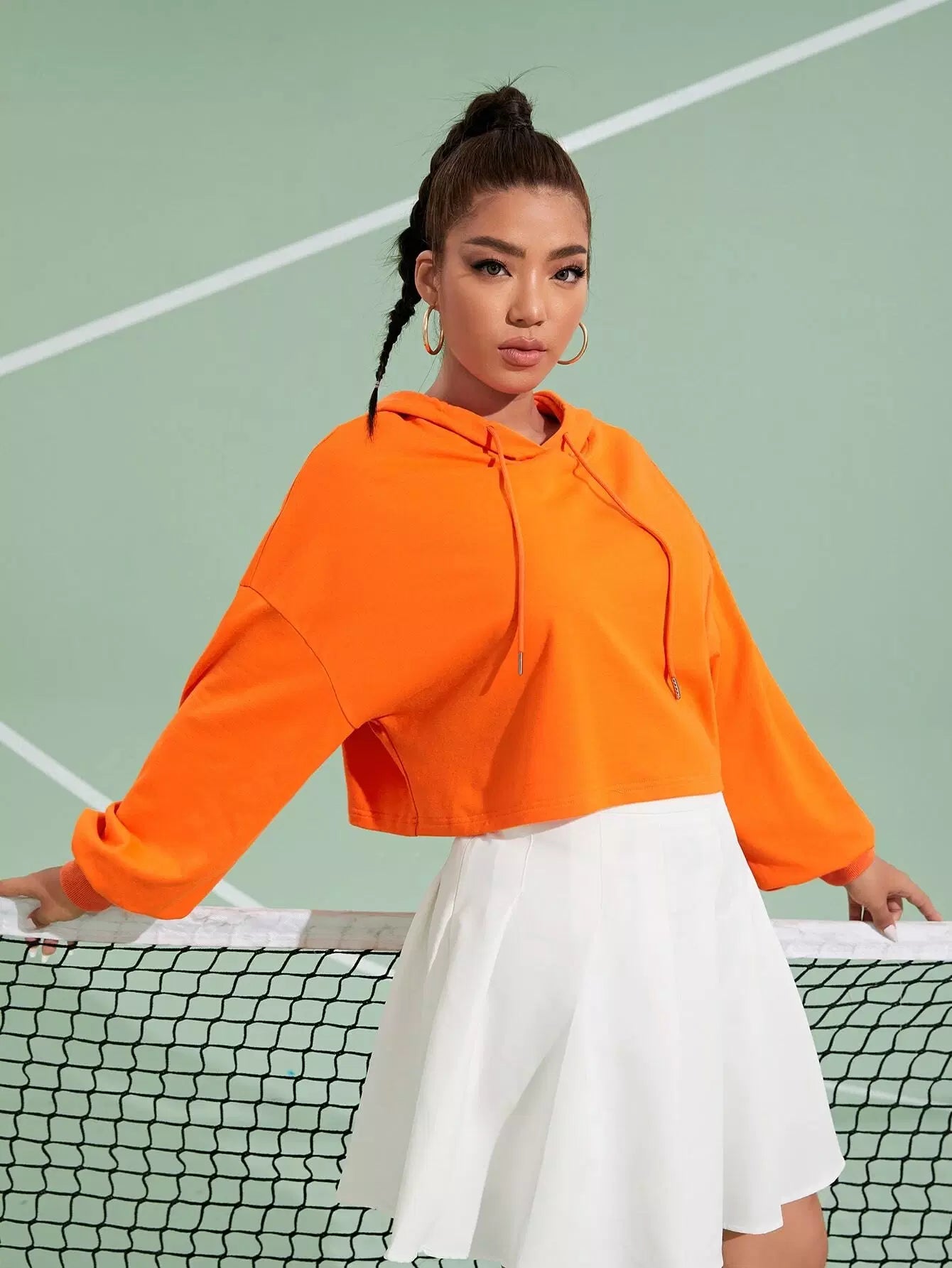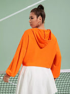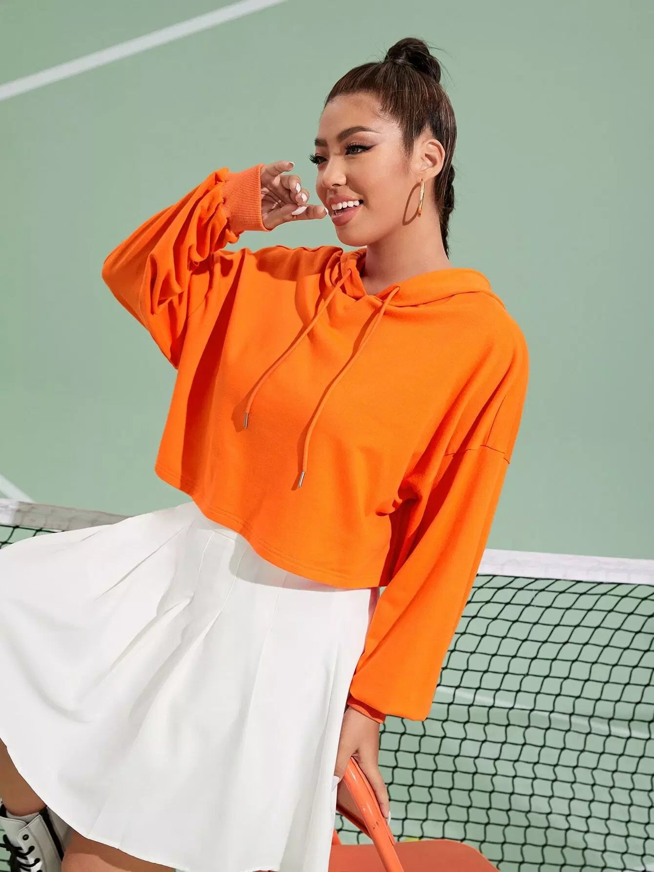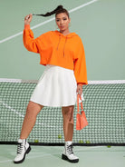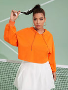هودي برتقالي منسدل الكتف برتقالي بلون نيون زائد