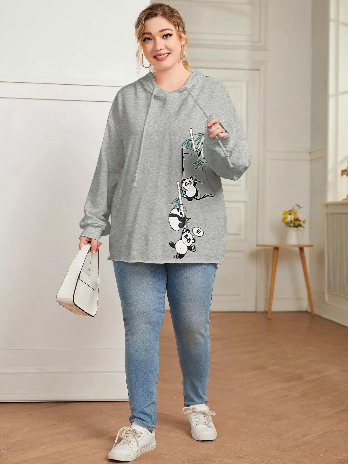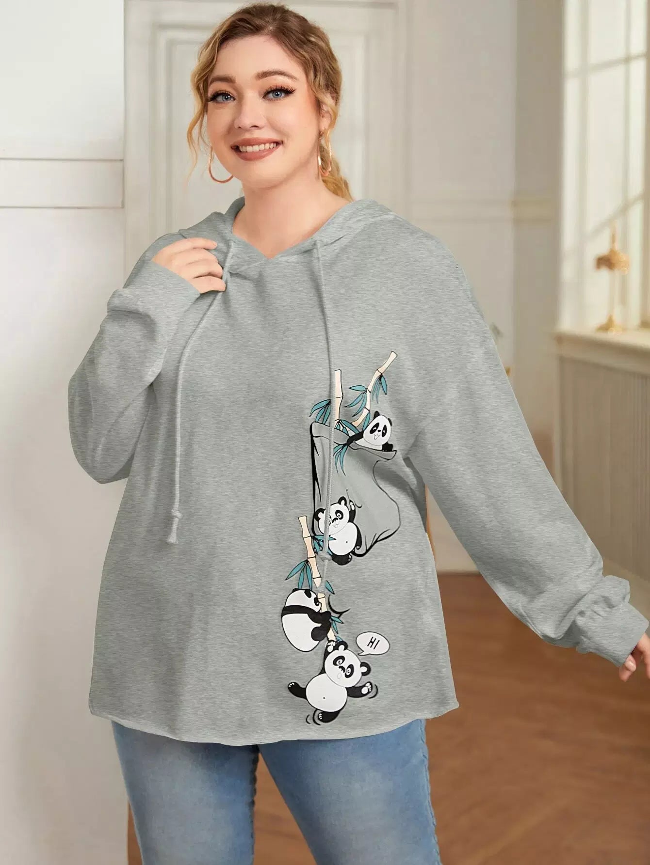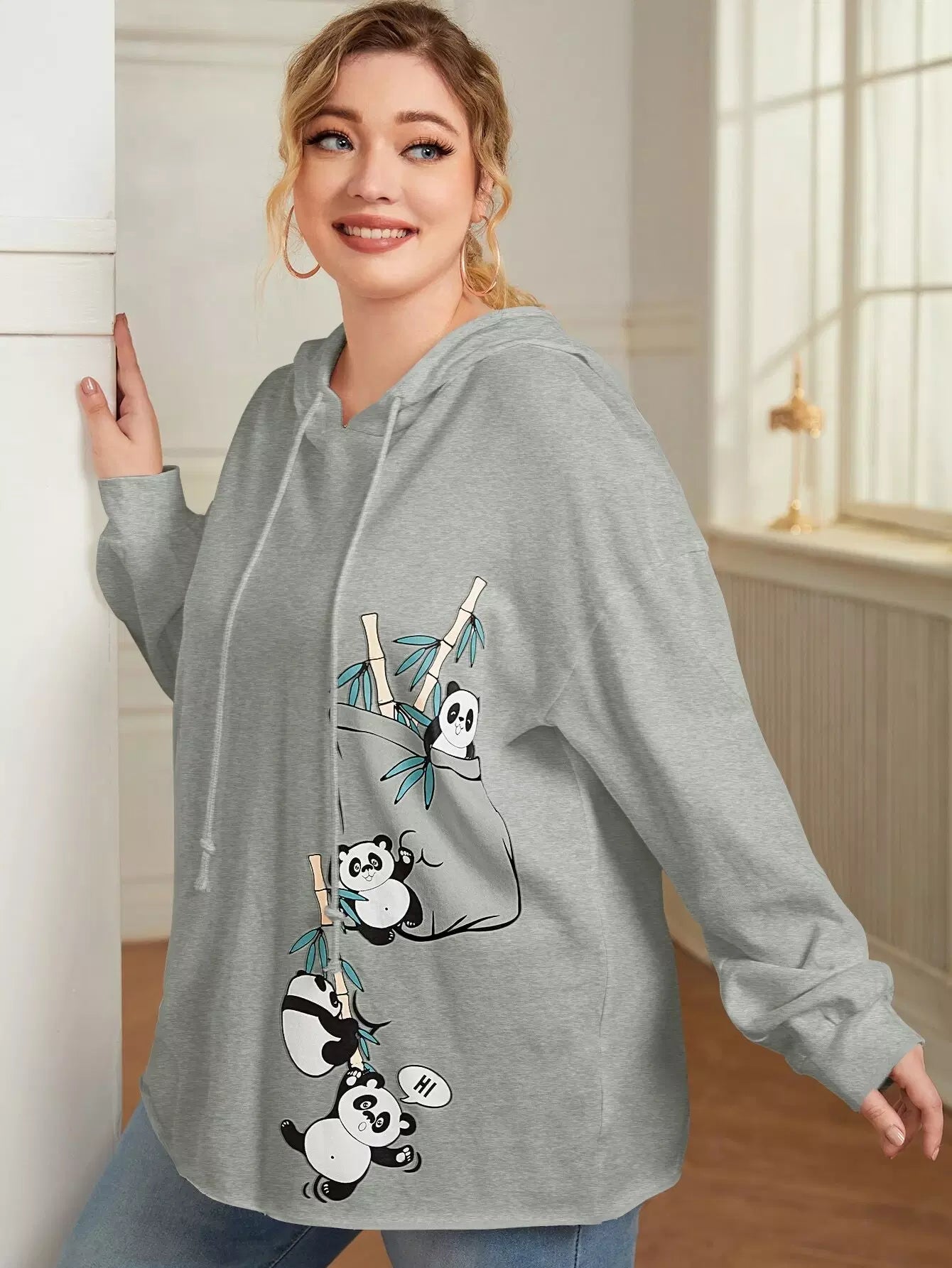 هودي برقبة منسدلة على الأكتاف مطبوع عليها طبعة الباندا والخيزران