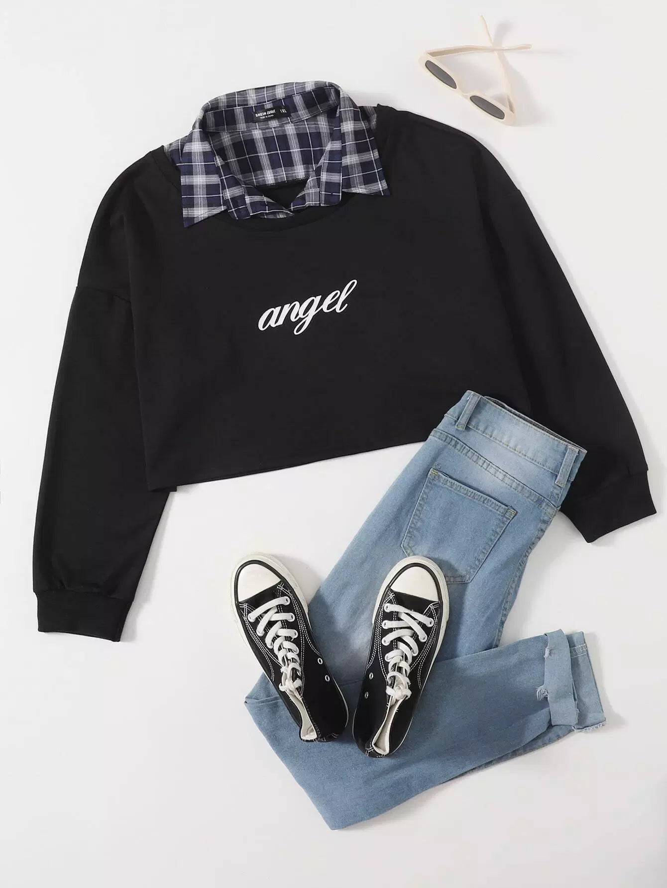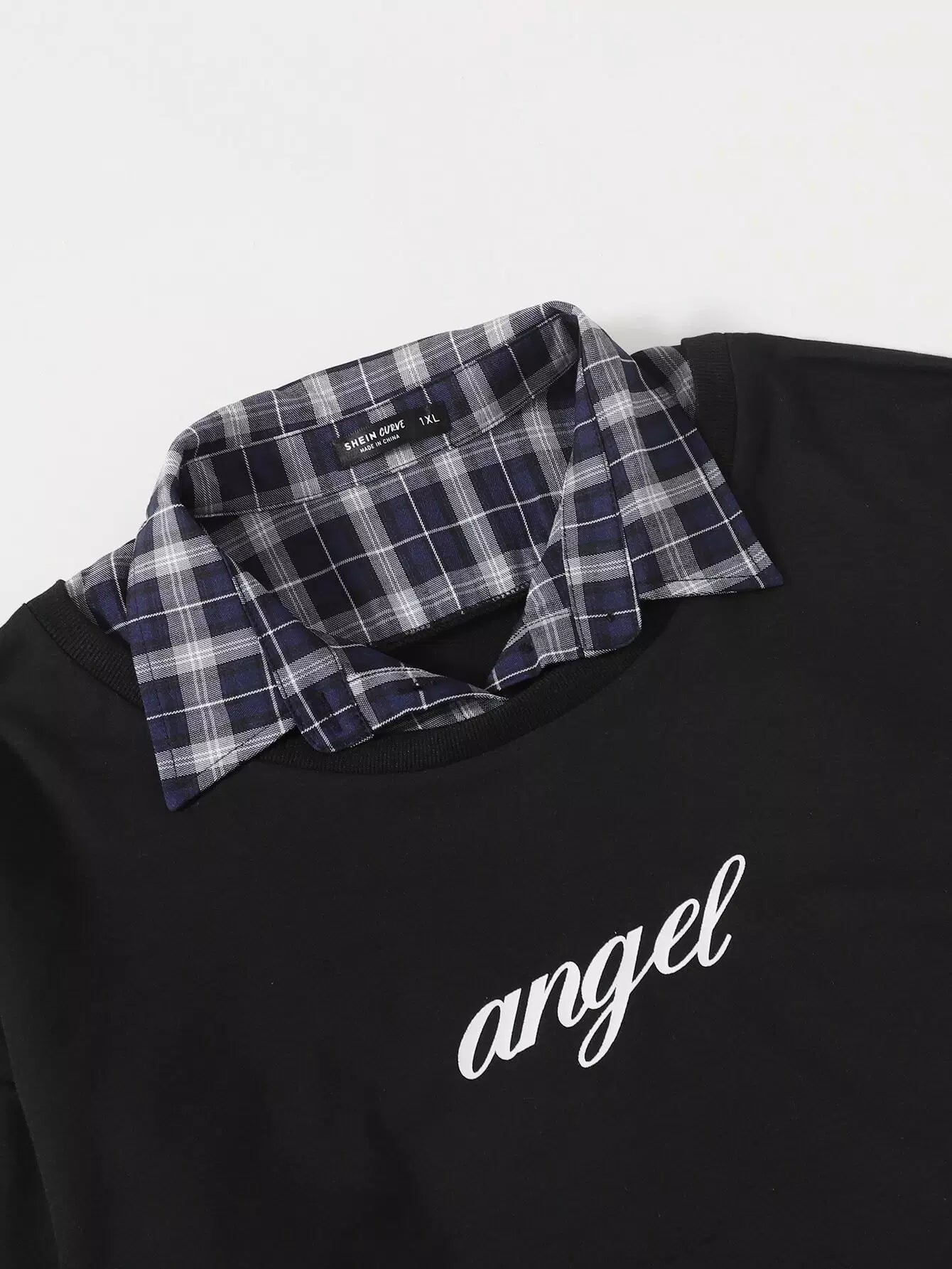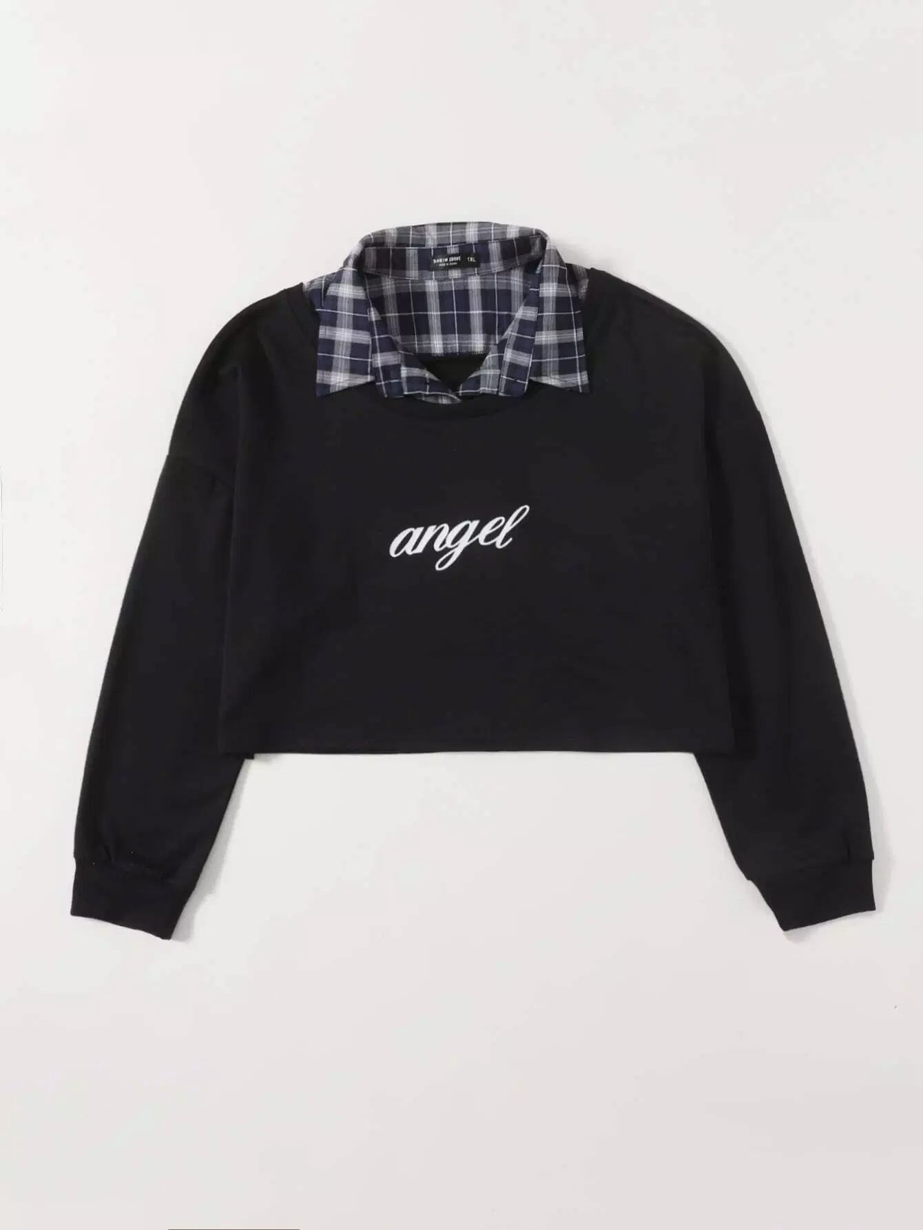 سويت شيرت سويت شيرت 2 في 1 منقوش ورسومات حروف بلس