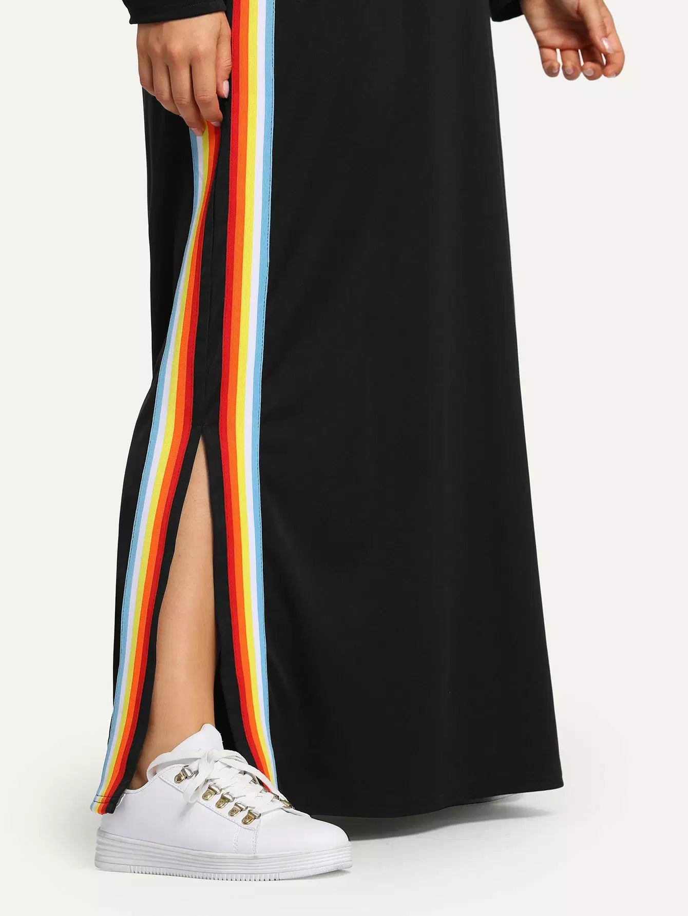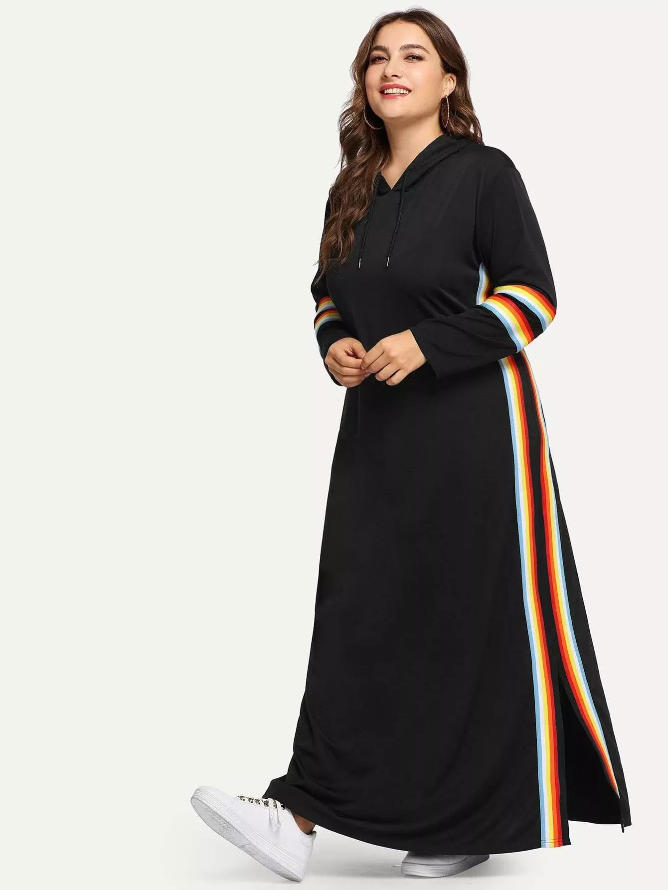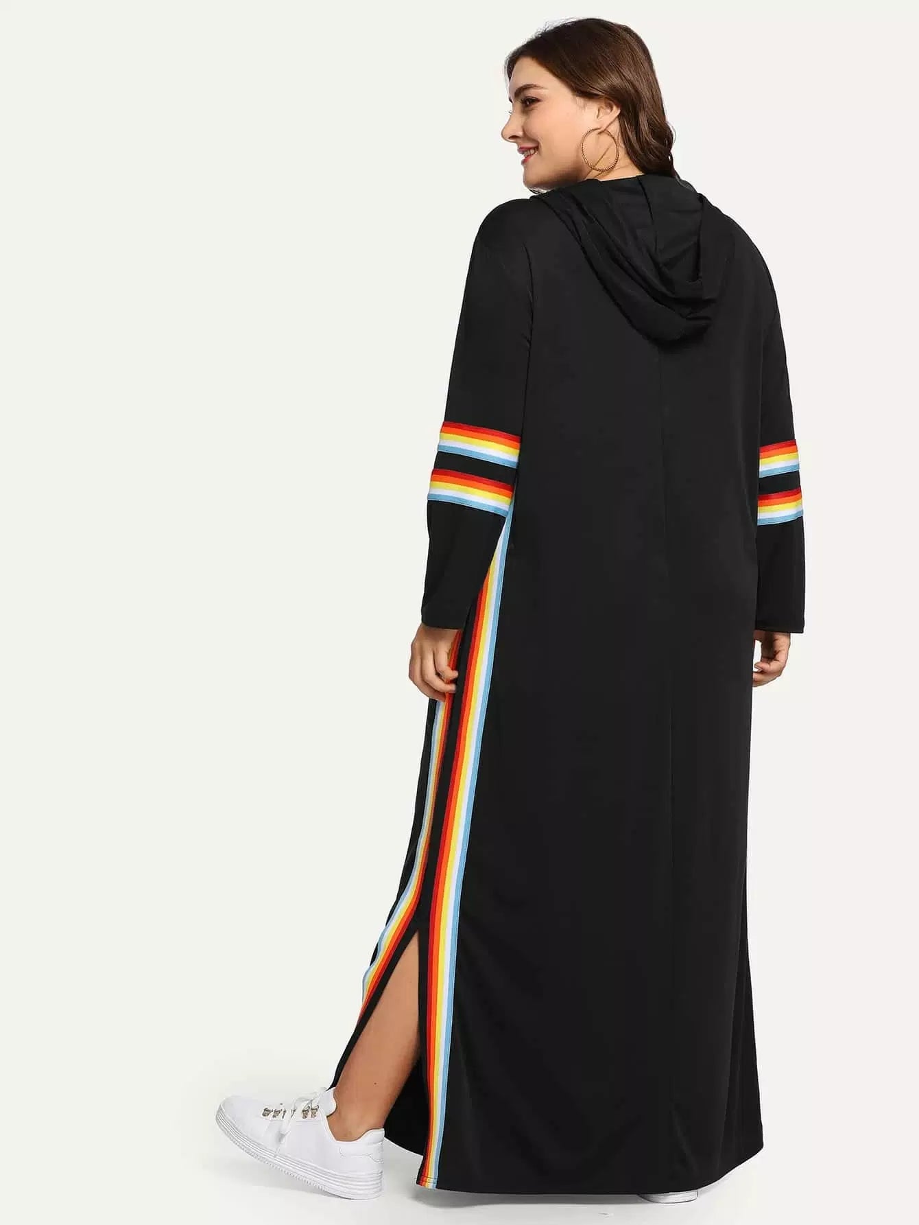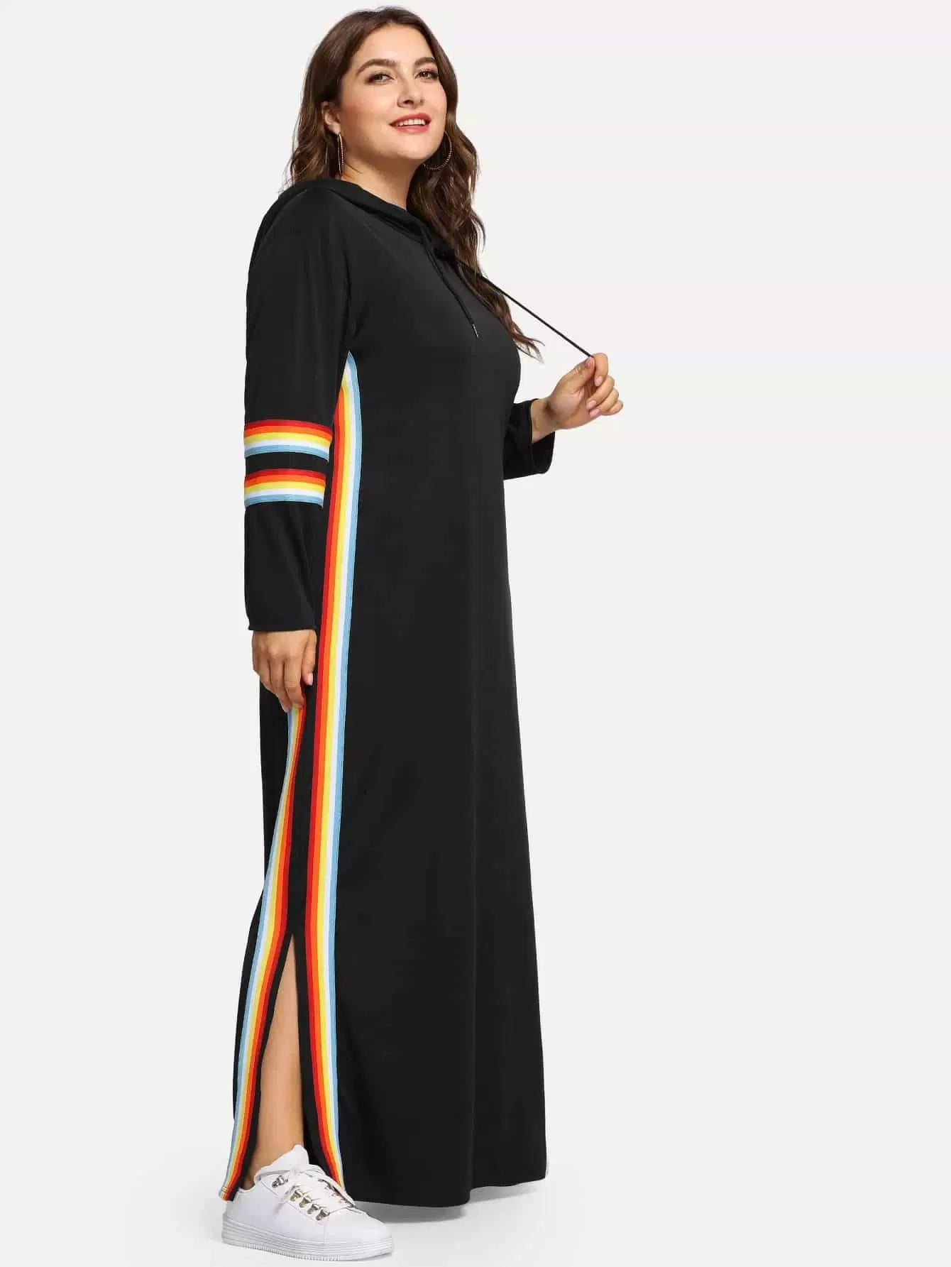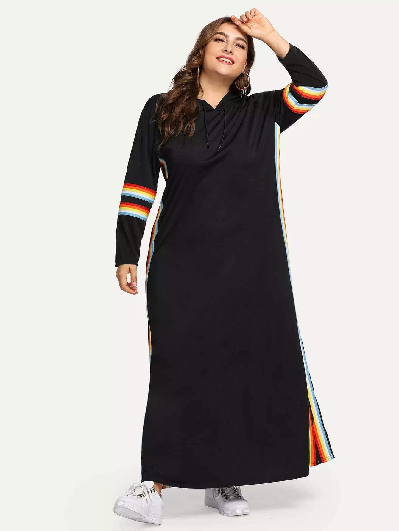فستان سويت شيرت مخطط بألوان قوس قزح زائد